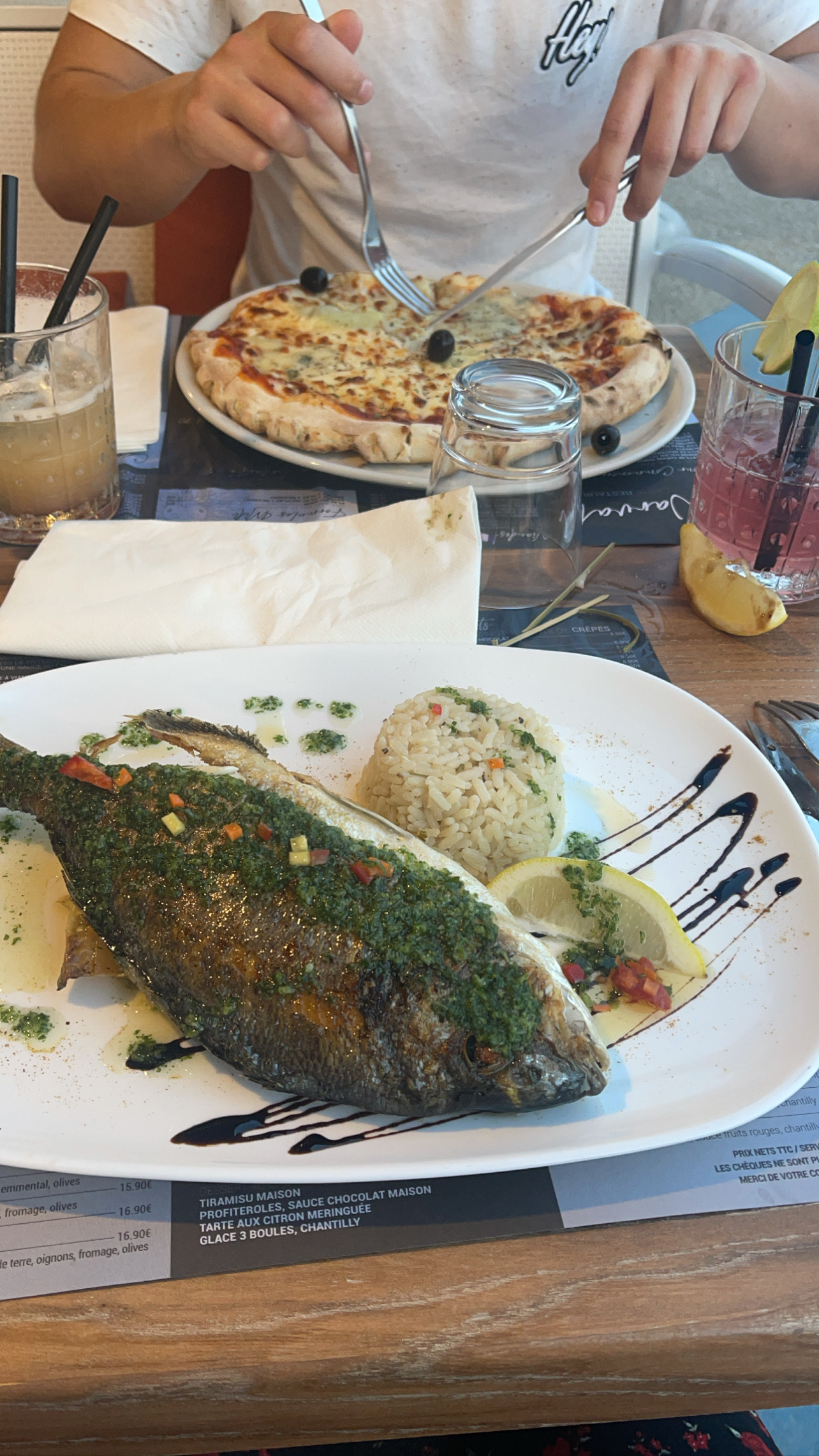 Tout était très bon, en particulier la pizza au saumon que je conseille fortement ! Les moules étaient un peu petites, mais elles étaient tout de même bonnes.