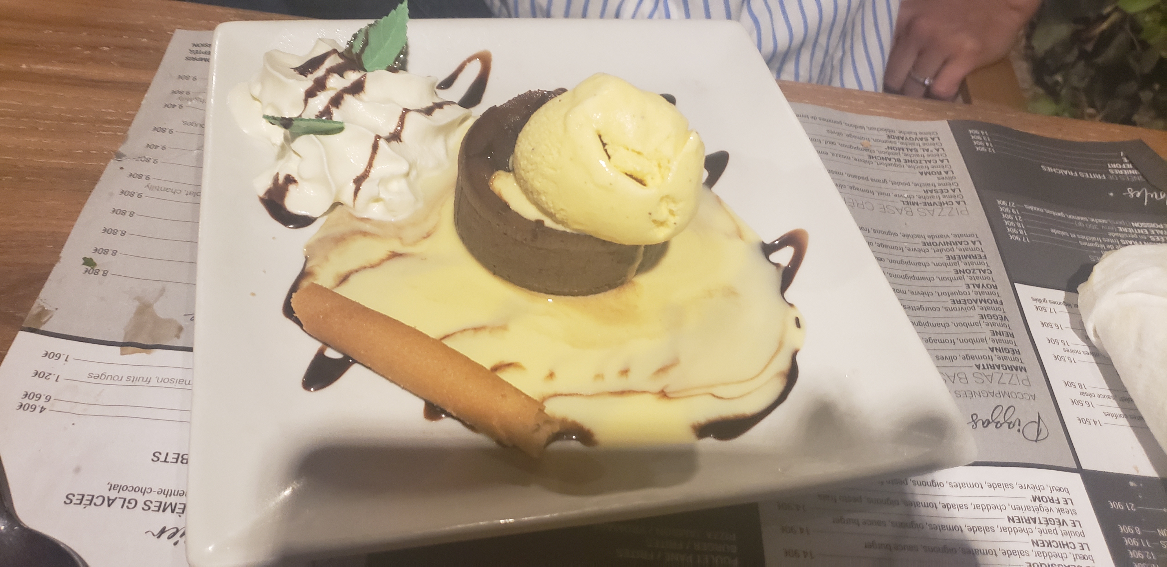 J ai bien aimé le repas. Le désert qui accompagne la formule est simple. Le service est correcte.