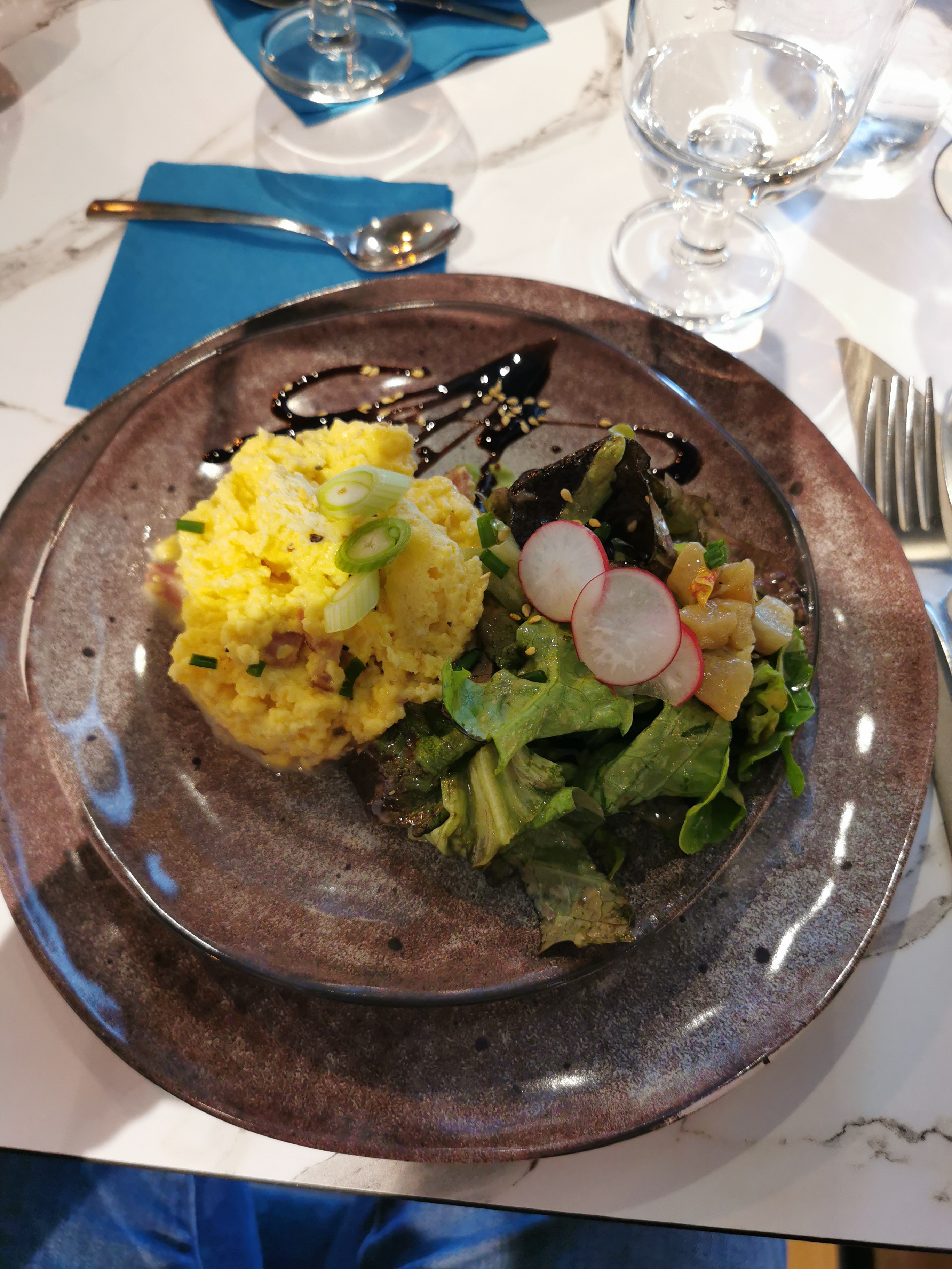 Le lieu est nouveau, les avis sont bons, que fait-on ? Et bien nous y allons ! Dès notre arrivée ce fut l étonnement total... Pas de contrôle du pass sanitaire, pas de carte, et si vous la demandez, on vous répond que c est écrit partout ! C est bien pour ça que je demande puisque nulle part n est écrit le descriptif du brunch, ni la liste des allergènes.. Pire que tout, vlà que vous n avez pas le choix, les crepieres sont éteintes le dimanche donc il n y a que le brunch et si tu veux autre chose y a pas. A ce stade vous comprenez bien que tout ce qui va vous êtes servit est preparé à l avance et réchauffé. Tout posé sur la table en merdier : le masque sous le nez, les doigts sur la bouffe et le pompon : le cheveux dans le gâteau !! Bref chez nat, plus jamais.. On notera cependant un effort sur la déco mais insuffisant est mon dernier mot.