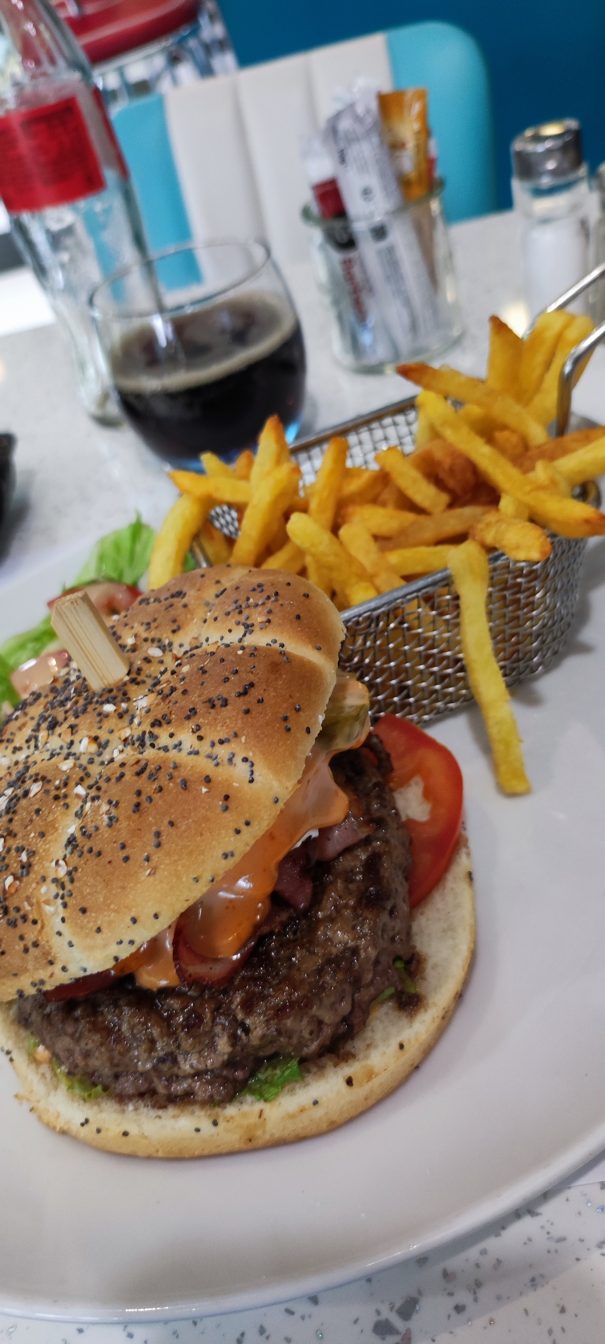 Très bon accueil. Décoration qui nous plonge dans l'univers de des années 60 aux États-Unis. Personnel charmant. Une cuisine simple mais de qualité. Bon choix de burgers .Et le jeudi midi, une spécialité de Tête de veau à tomber. Mais pensez bien à réserver ! Très bon rapport qualité prix.