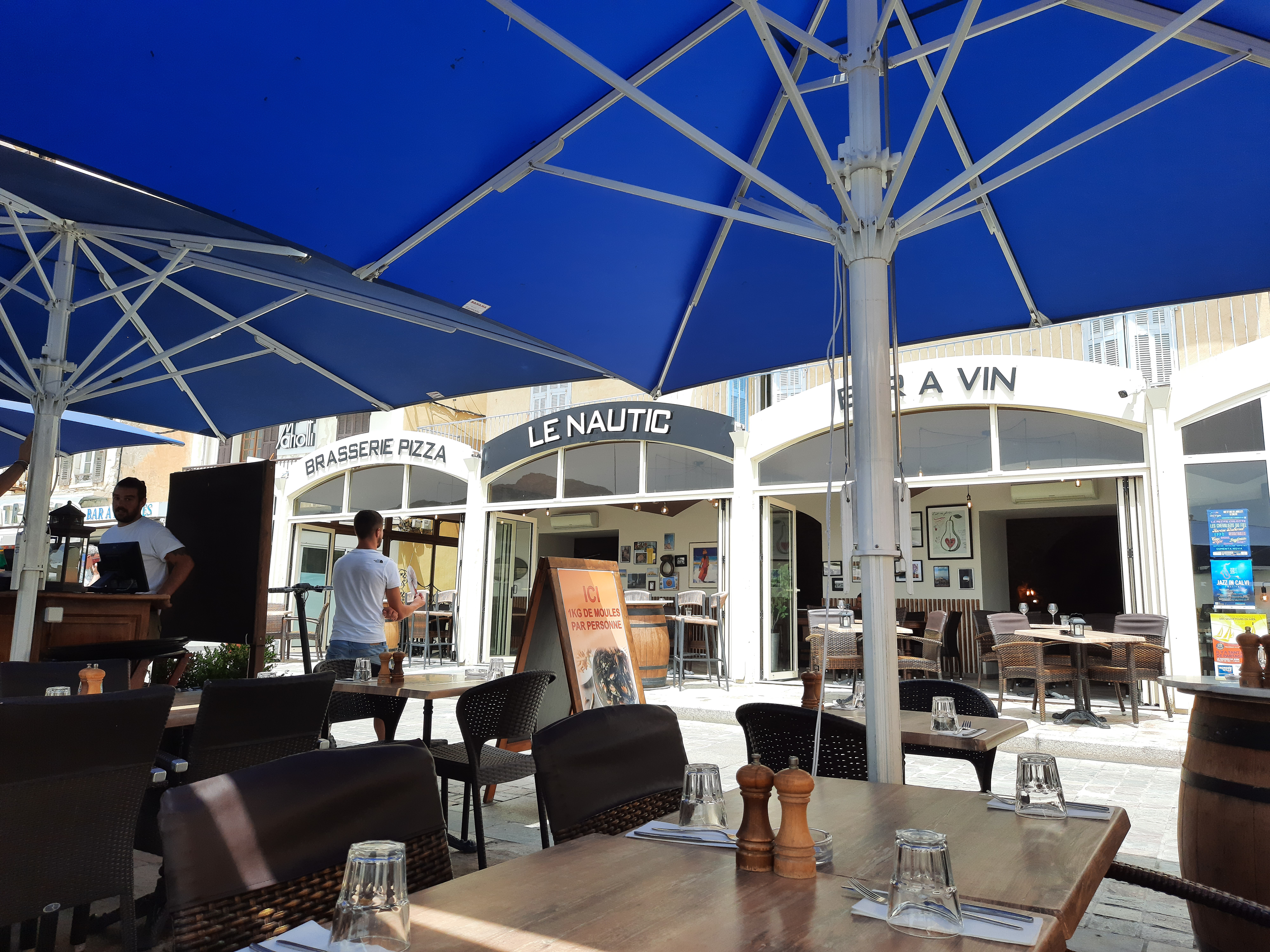 Le Nautic est un très bon restaurant avec des prix attractifs. Nous avons mangé un plat de moules marinières à tomber par terre accompagnées de frites excellentes et en grand nombre. La vue sur le port de Calvi est idéale, surtout les jours de beaux temps, et une belle terrasse au soleil est à la disposition des clients. Le service est très rapide et agréable, les serveurs sont au petits soins. La décoration intérieure est sobre mais très jolie. La salle du fond a une ambiance très chaleureuse avec des voutes. Je recommande fortement ce restaurant et aurais aimé pouvoir également goûter à leurs poissons qui paraissaient excellents!