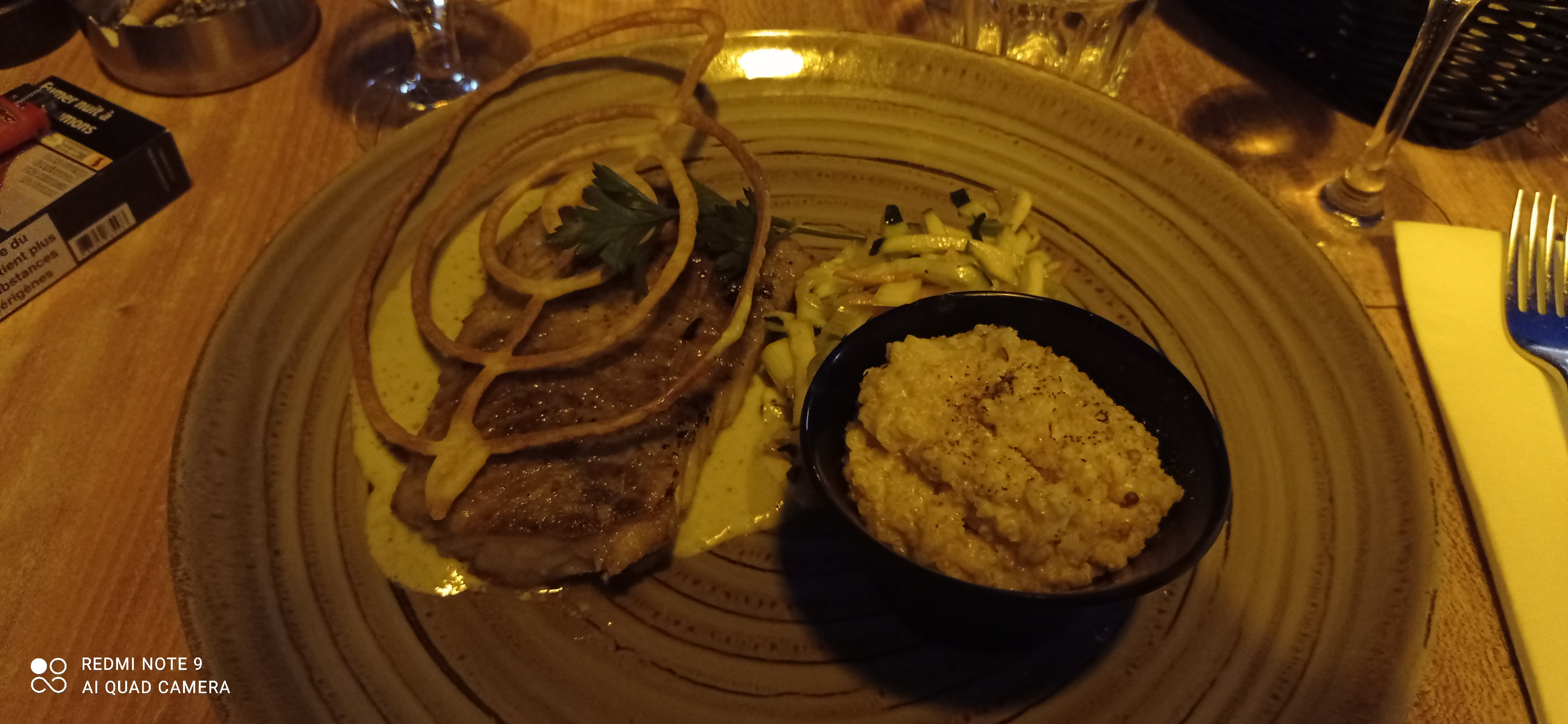 Une planche de charcuterie très bonne et une salade bien gourmande ! Mon compagnon s’est régalé de son magret de canard cuit exactement comme demandé ! L’accueil est au surplus plus que sympathique avec un serveur aux petits soins ! Nous avons adoré notre soirée !