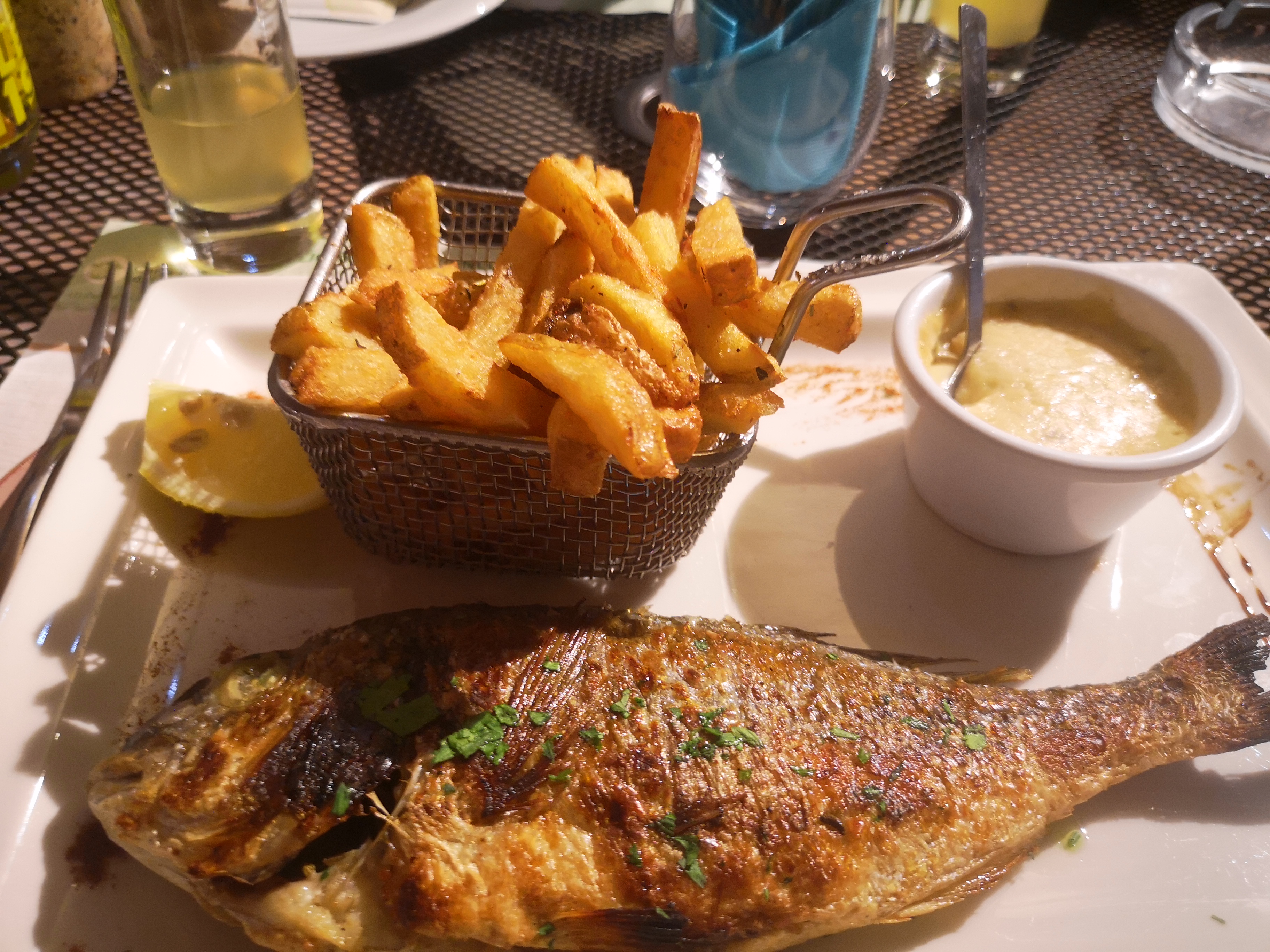 Je conseil le poisson daurade Un délice accompagné d'haricots vert et riz même le pain et bon.