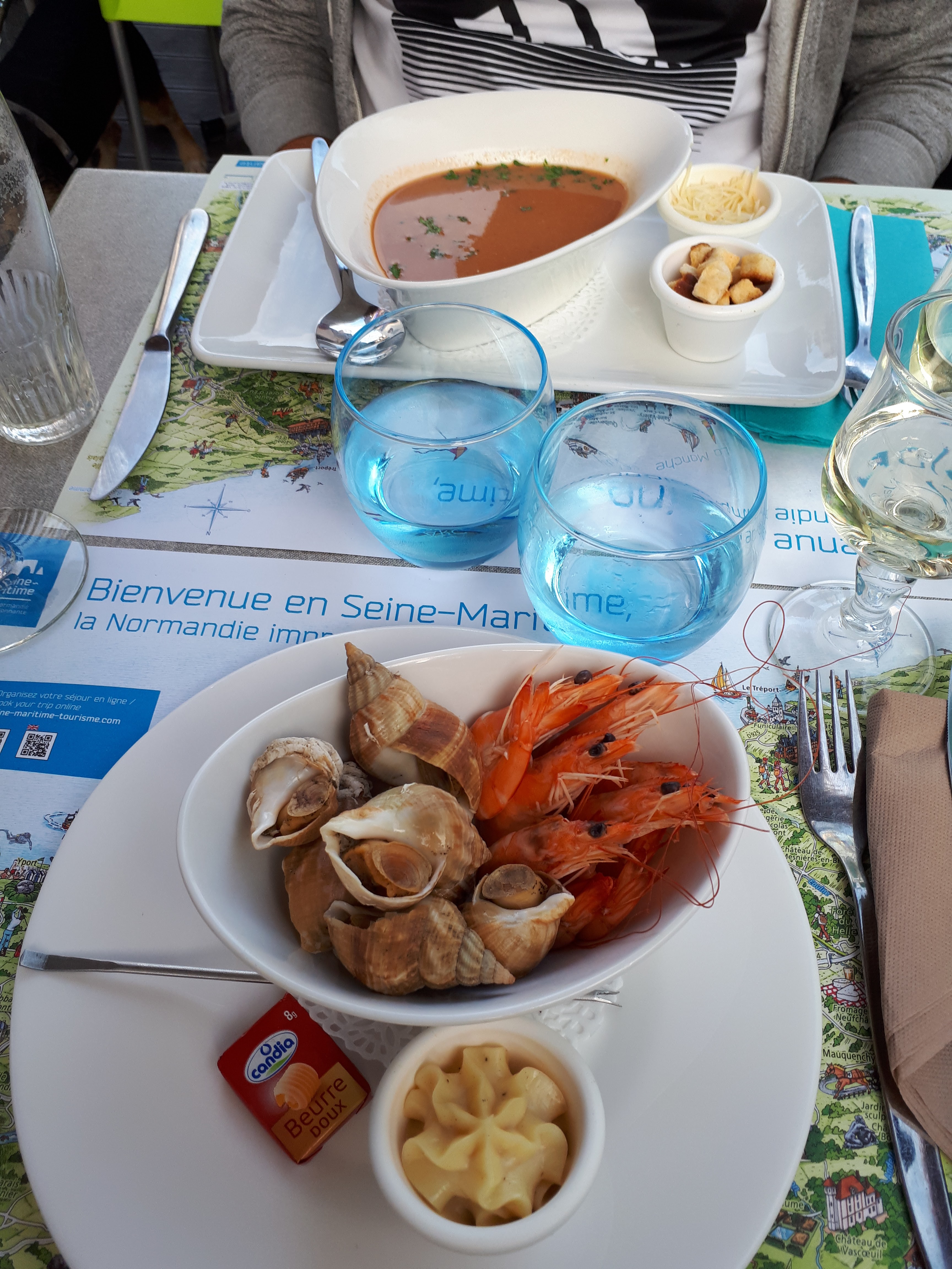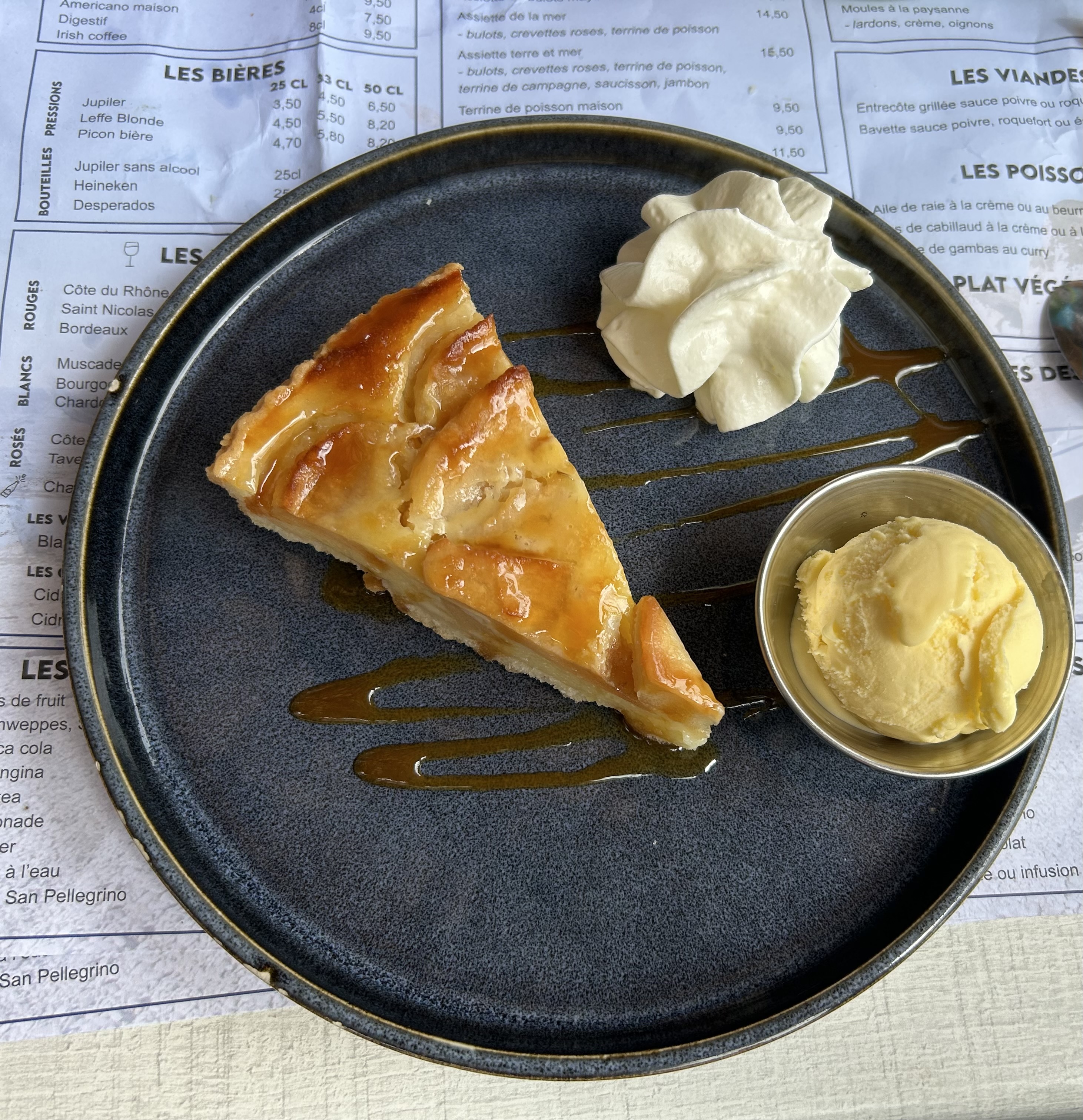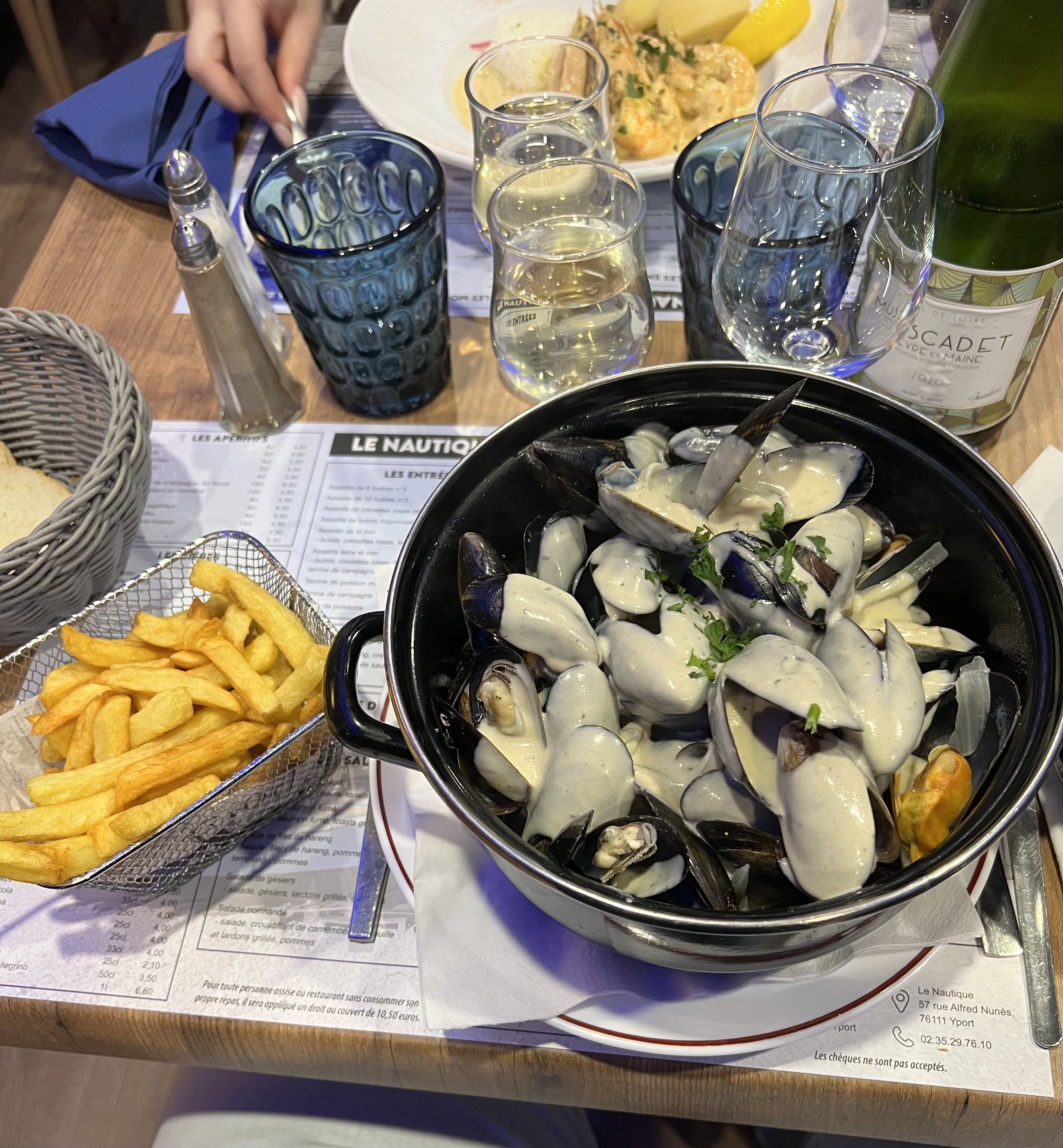 Cetait complet! Une table sur la terrasse en avril au glagla et ben non.. petite couverture impeccable.. les moules cidre pomme top et tarifs correctes et on a parler du pays.... vraiment détendu...