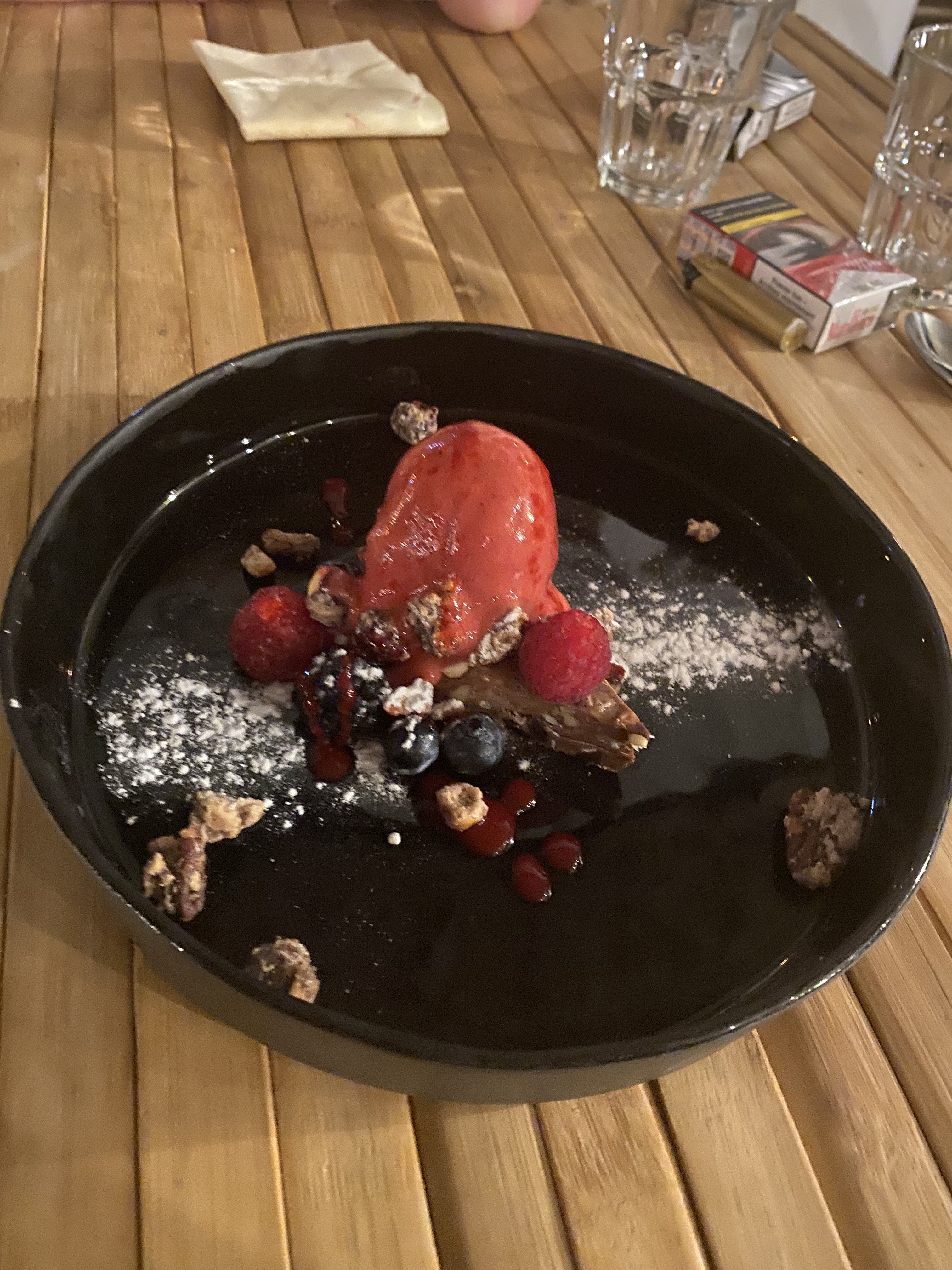Super soirée, le personnel est super sympa et accueillant. L’entrée très bonne, le plat bon mais sans plus et le dessert décevant. On a bien mangé mais il est vrai que les prix sont exorbitants. Mon amie a pris la côte de bœuf (j’ai pas pris de photo) qui était un peu trop nerveuse. L’ambiance et l’endroit est génial mais prévoir un bon budget (190€ pour 3 couverts en ce qui nous concerne). Voilà, vous avez l’info, faites en ce que vous voulez 😁