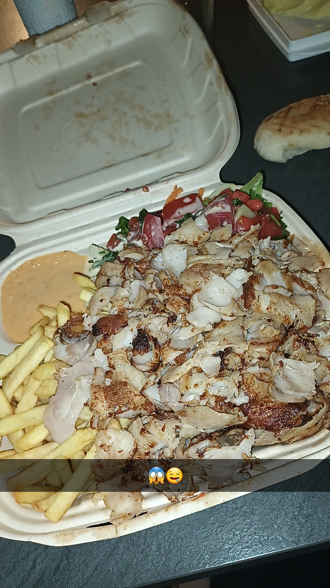 Bon mais dommage cela fait un bout temps que je voulais le testé Mais pas accès garni j'ai encore faim et trompé de sauce. Je ne sais pas qu'elle sauce ils sont mis mais j'avais trop faim alors j'ai manger mais j'ai la bouche en feu 🔥