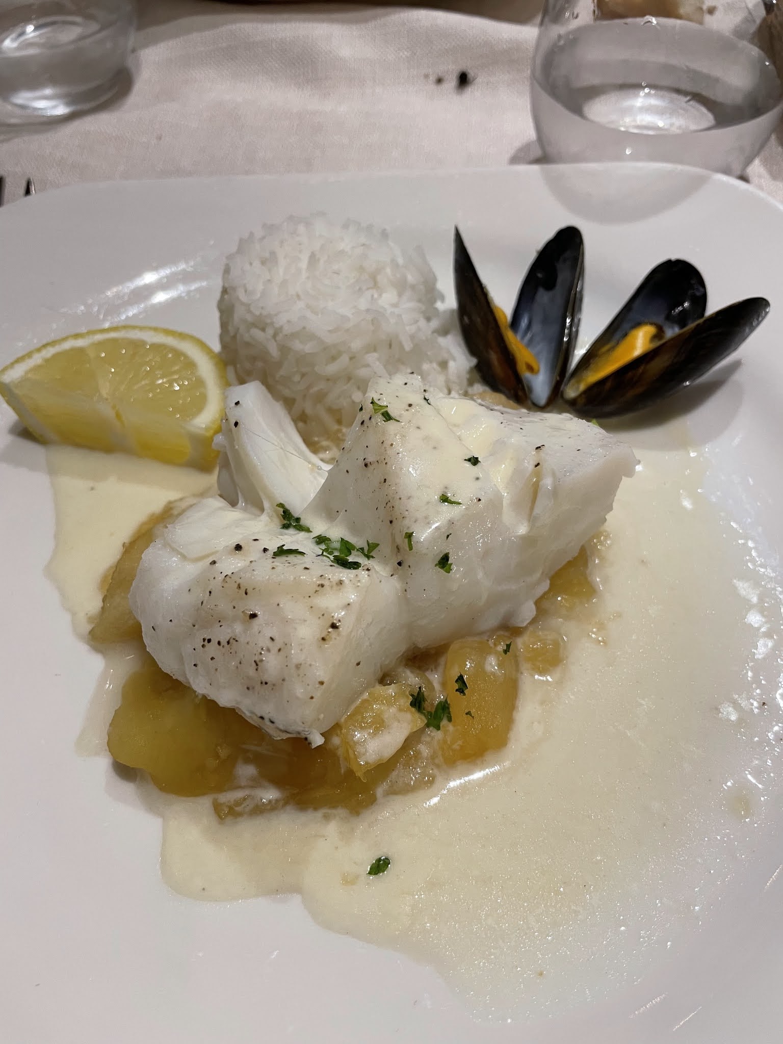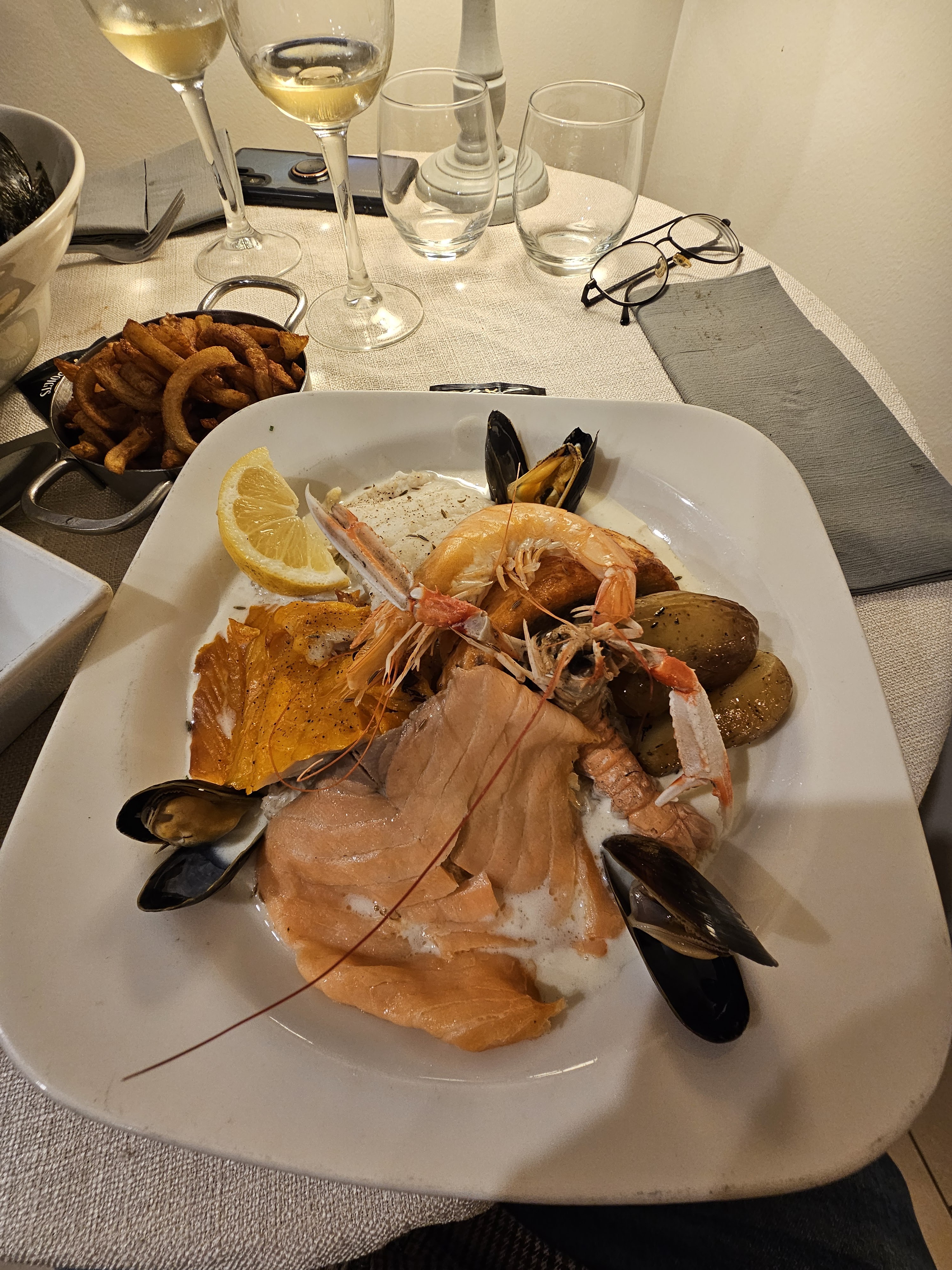 Excellents fruits de mer de toutes sortes. Les huîtres étaient parmi les meilleures que j’ai jamais mangées. Les crevettes et les escargots étaient un peu petits et difficiles à peler/sortir des coquilles. Excellent rapport qualité-prix pour les menus à trois plats. Les desserts étaient tous délicieux.