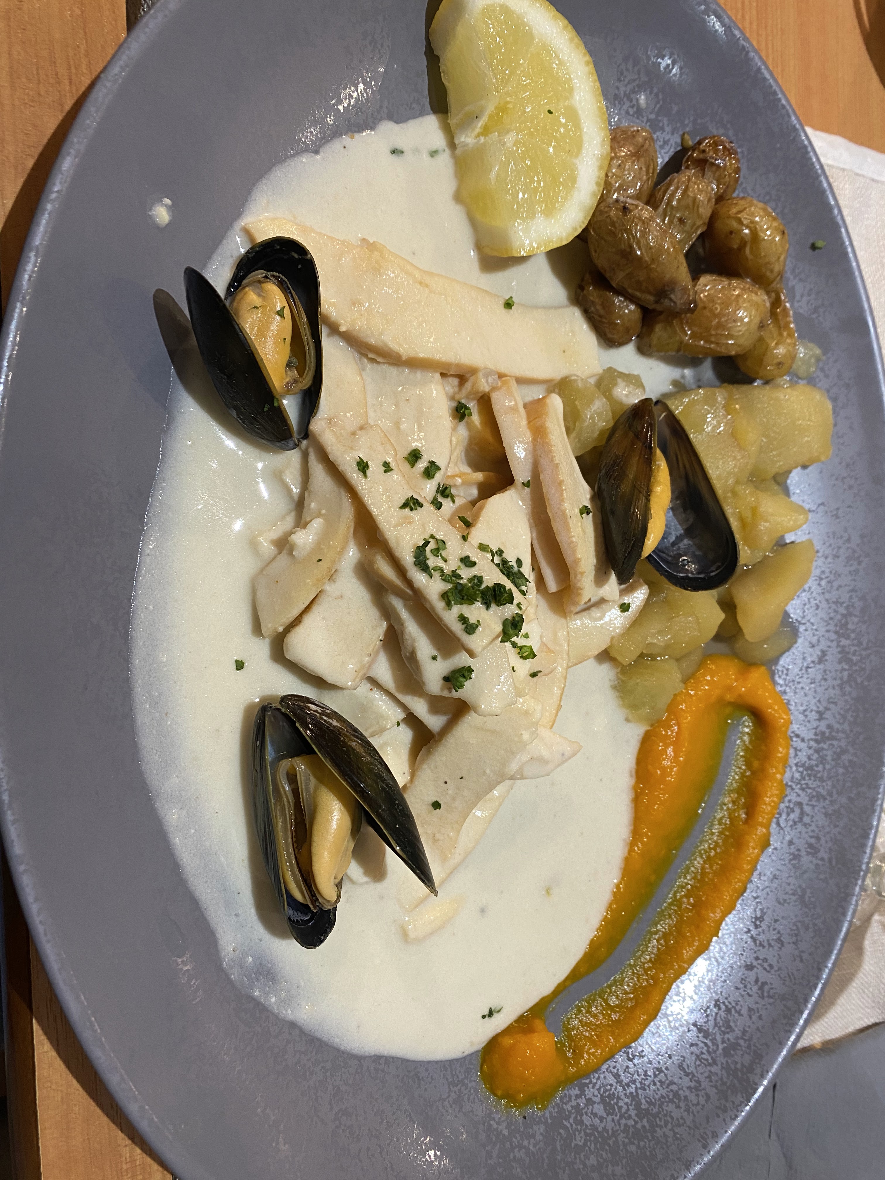 Une adresse à faire à tout prix,si l'on aime les fruits de mer et les moules. C'était divin,ayant essayé les moules dans un autre établissement 2 jours avant,ils ont réussi à me réconcilier avec les crustacés. Par contre il vaut mieux réserver nous sommes arrivés à 19h,et il restait une table pour 2, ensuite l'équipe absolument adorable a enchaîné 2 services sans interruption. Si on retourne dans cette région, je retournerais les yeux fermés.