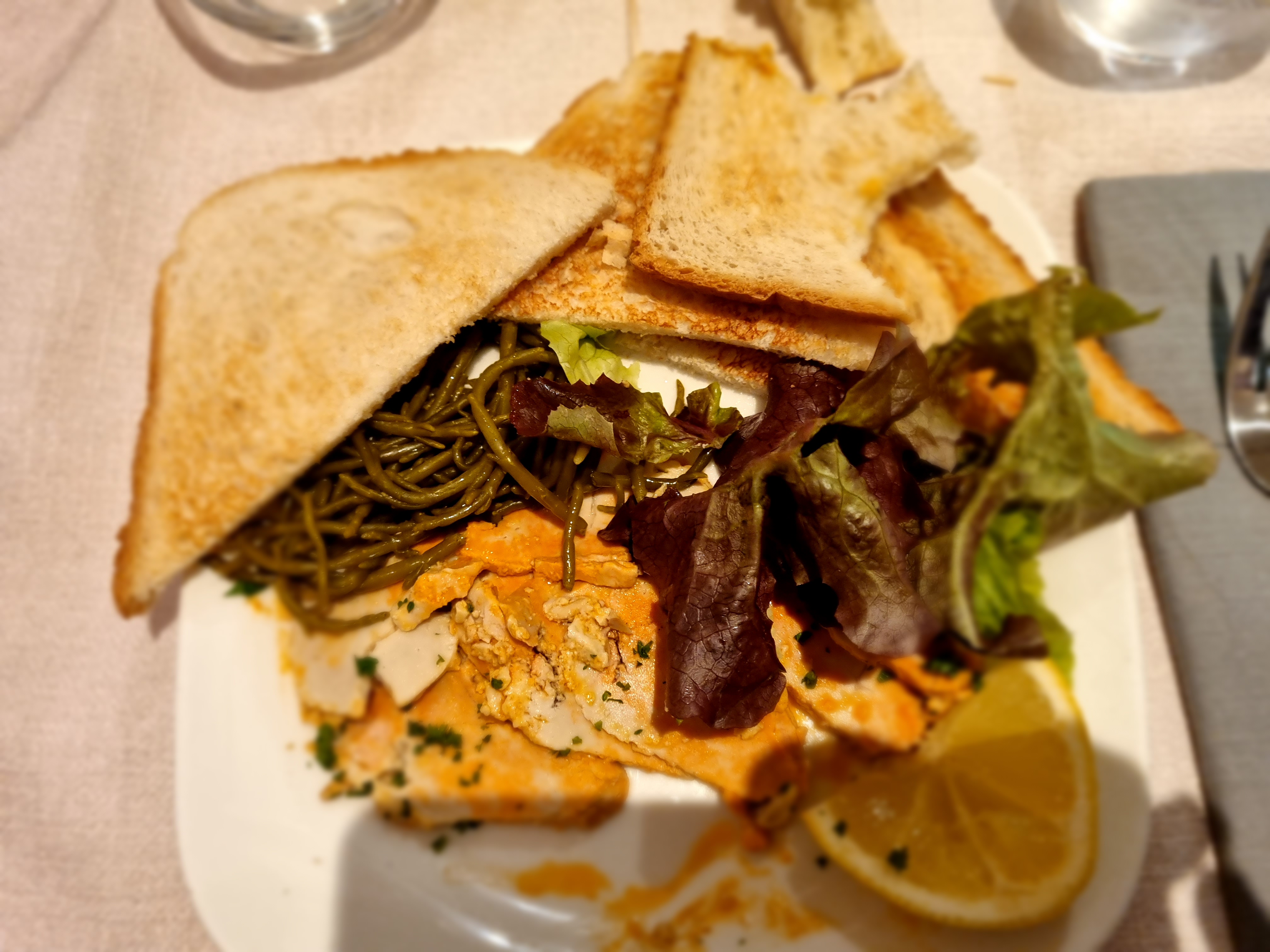 Nous sommes rentré par hasard dans ce restaurant car nous venions d arriver à Dieppe Agréablement surpris très bon Foie de lotte salade Cabillaud sur lit de pomme Un super moment