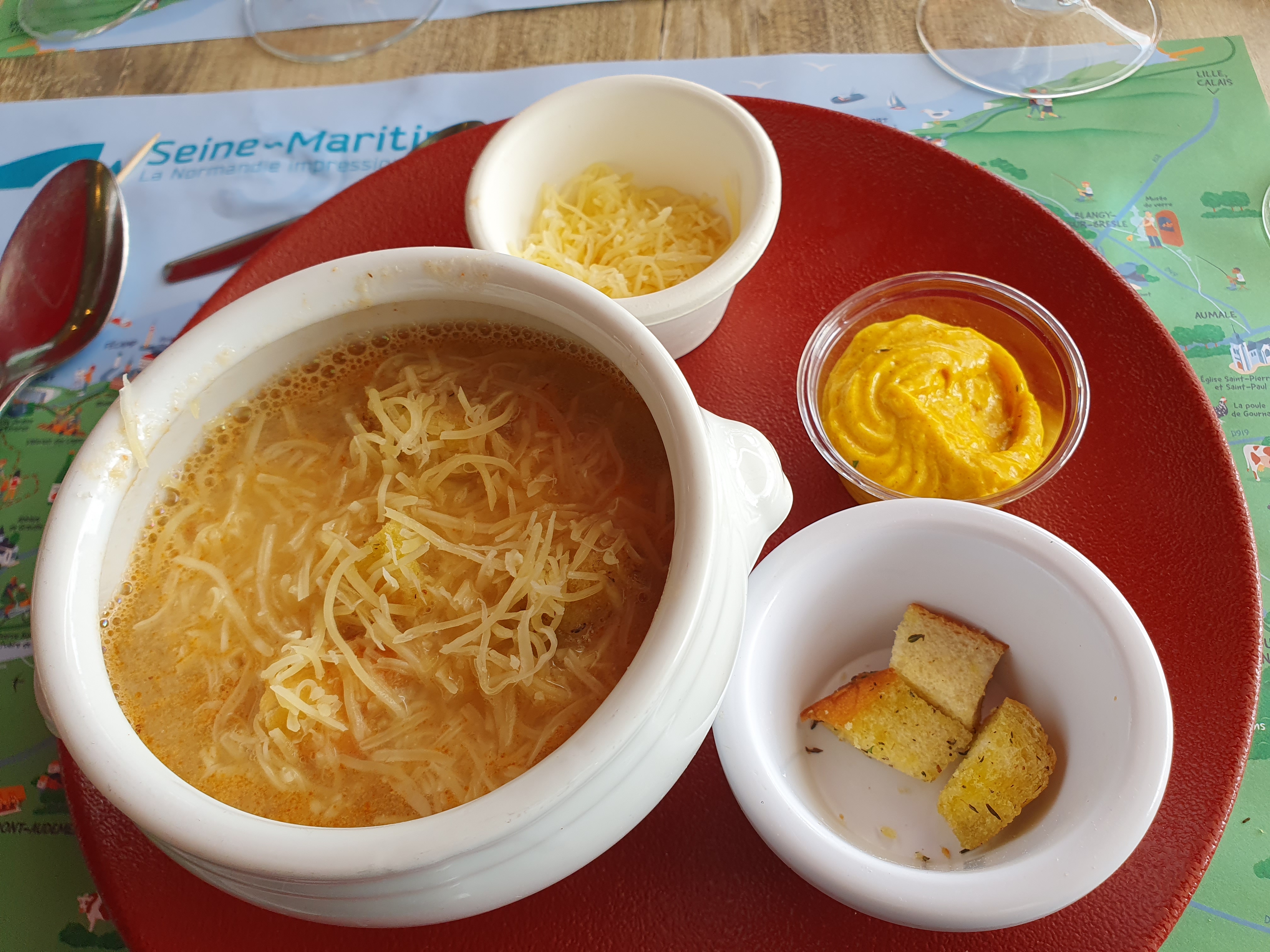 Une expérience exceptionnelle en terrasse à côté des quais. Des produits frais et de qualité, au goût marqué et vraiment présent, qui permettent de vraiment apprécié plzinement le repas. Pour moi ça aura été : - Le Cocktail maison pour patienter en admirant la vue - Salade de Neuchâtel chaud [sur Pain de mie toasté parfaitement] avec son oeuf dur [cuisson parfaite et on voit que l'oeuf aussi est frais] mayonnaise maison - Maules à la Normande [Cuisson nickel, vraie portion de crème, pas juste une petite cuillère, prevoyez de garder du pain pour saucer le fond de l'assiette pour les amateurs] avec sa portion raisonnable de frites - Assiette de Fromages Normands (Camembert, Pont-l'Évêque, Neuchâtel) Les à côté : - Service génial, la serveuse qui s'est occupait de nous était adorable. Et si vous hésitez sur le vin, il vous suffit de demander en fonction de votre plat. - Lieu très agréable, surtout quand il fait chaud, la terrasse permet de profiter du vent modéré