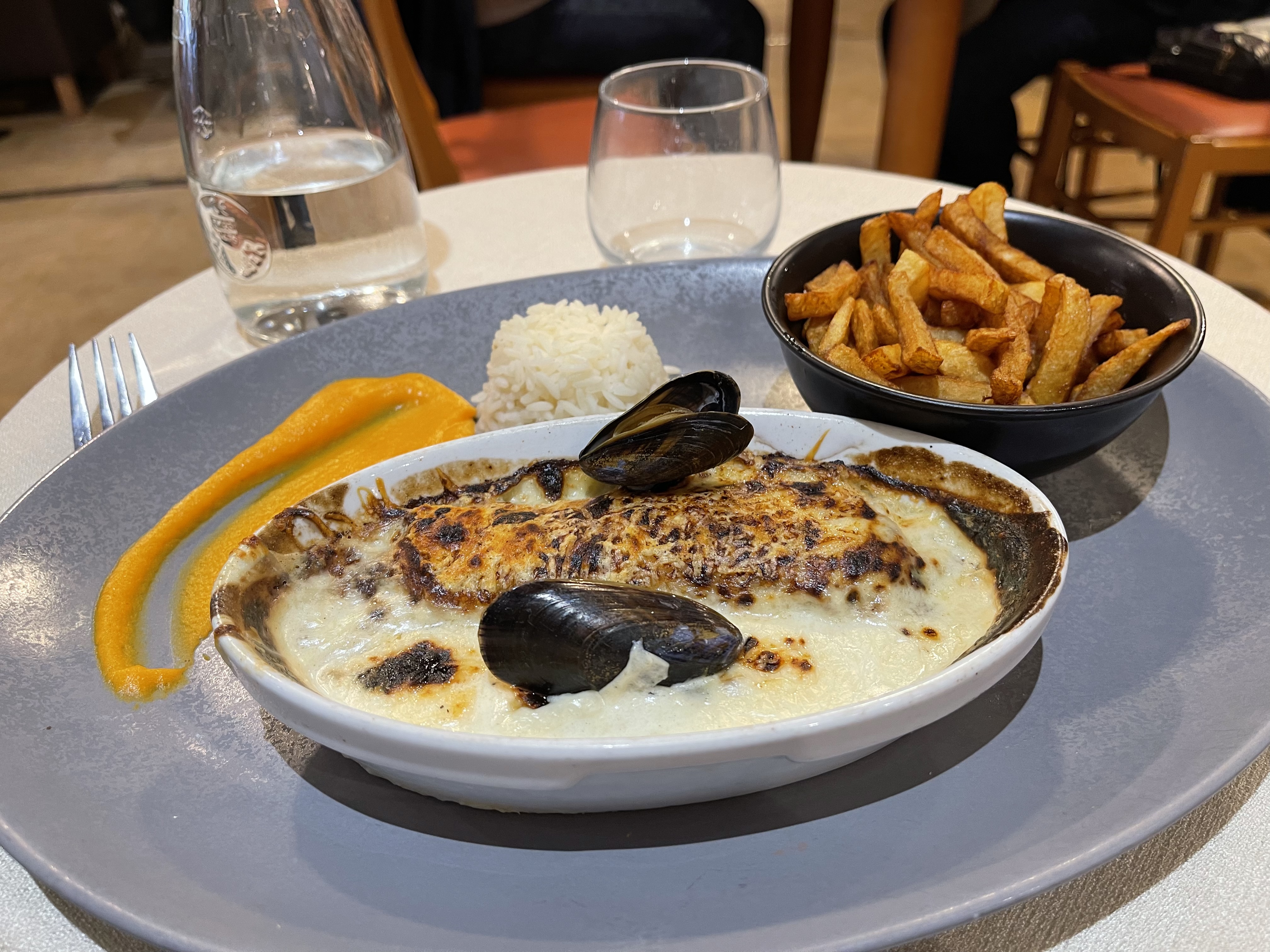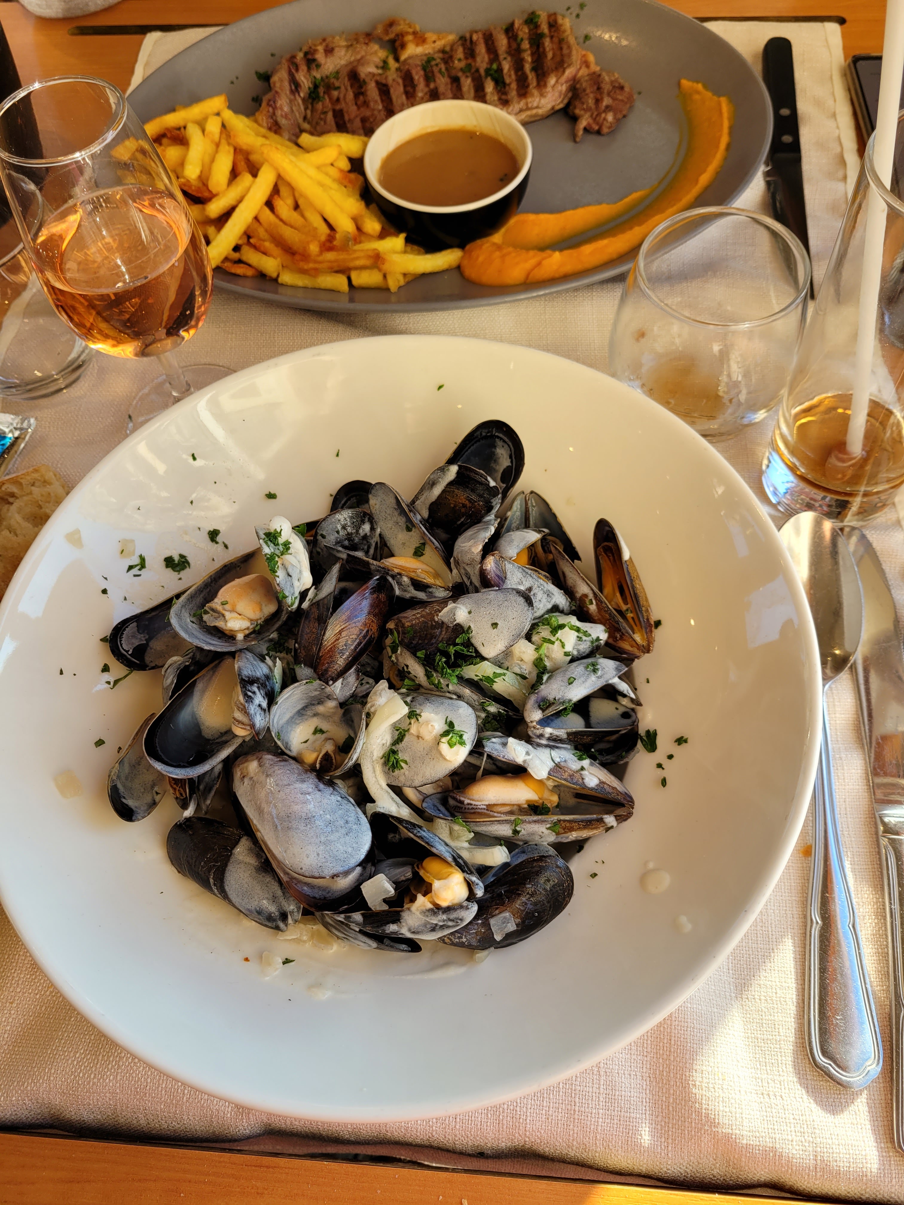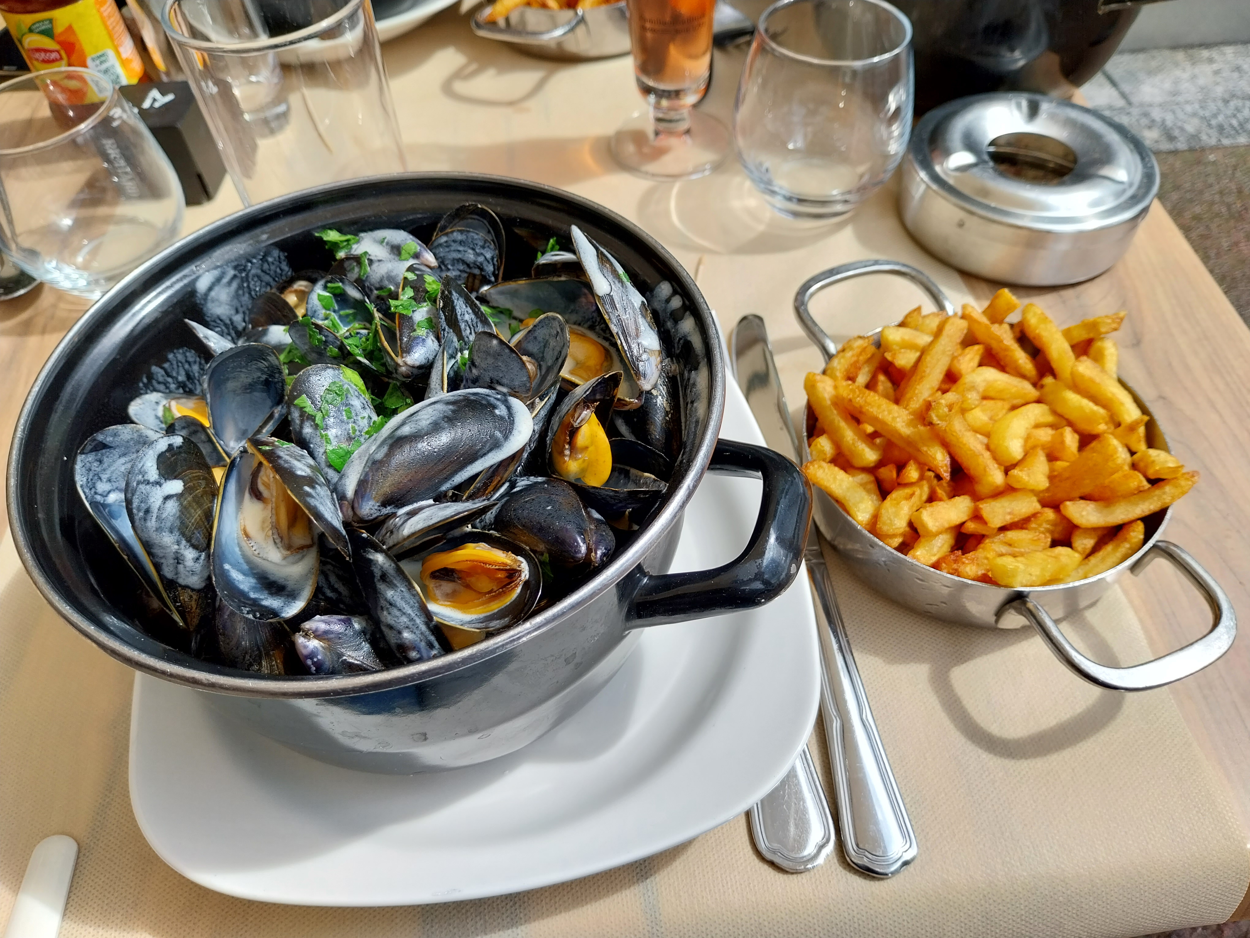 Un très beau cadre un très beau restaurant qui m'a été conseillé, des moules frites extra et suivie d'un bon petit dessert de la régions et prix correct