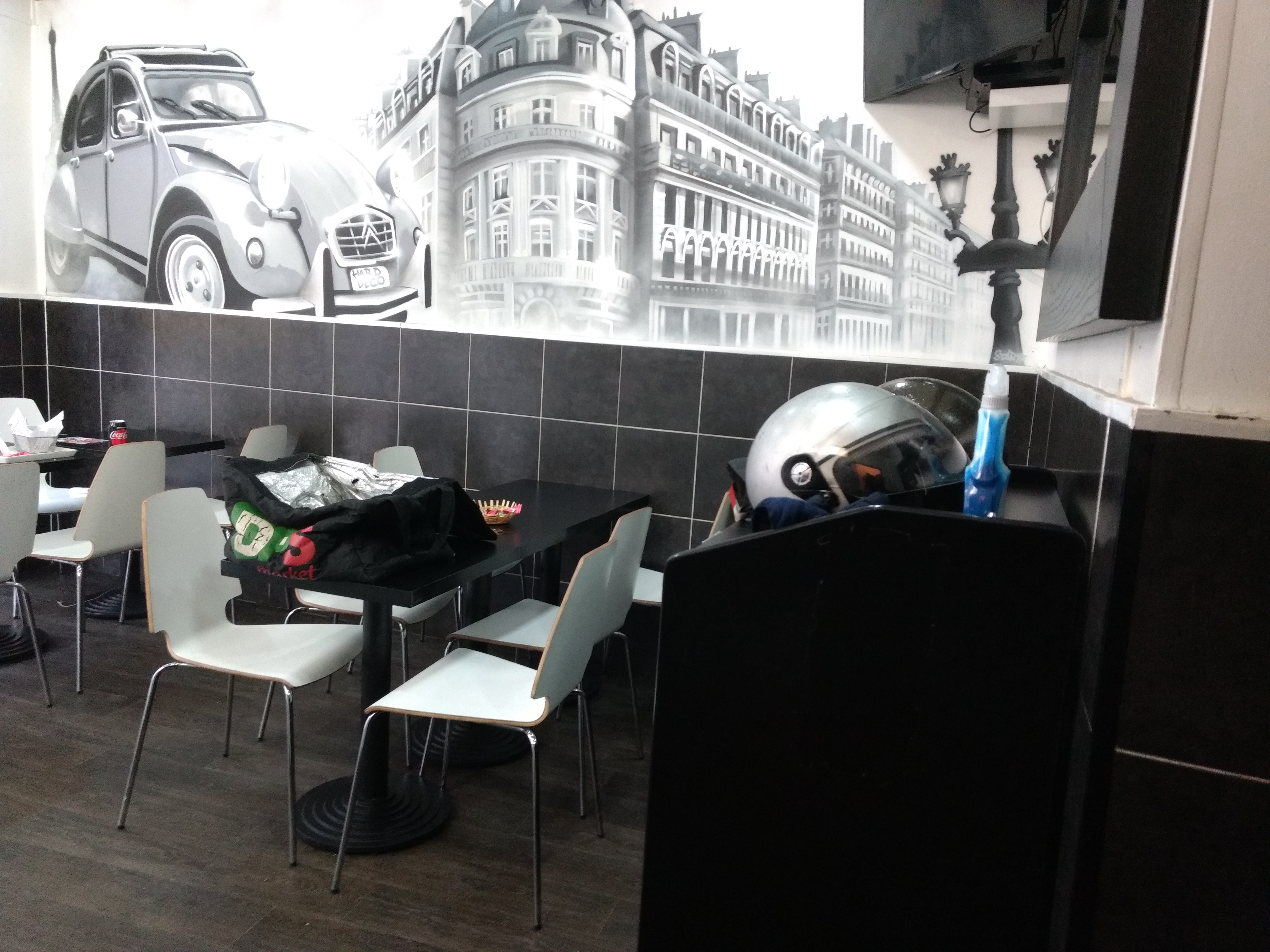 J'avais pris pour habitude de commander chez LE PARI'S sur alloresto et je peux affirmer que leurs burgers sont vraiment bons ! Du coup j'ai décidé d'aller sur place pour en savourer 1 et voir de quoi il s'agit, ma déception fut très grande... Le restaurant est très petit (14 couverts collés serrés) et très sobre, il est très sale dans son ensemble (tables, cuisine, WC) on a l'impression de sortir plus sale quand on va se laver les mains, il y a des casques de livreurs partout, le caissier qui parle tranquillement pendant 5mn alors que je l'attends pour commander, les WC et la cuisine donnent envie de vomir, la poignée de la porte est cassée... Bref, on ne se sent pas à l'aise quand on mange sur place et on a vite envie de partir ! Je vais suivre les avis des autres internautes pour voir s'il y aura des évolutions, mais d'ici là je mettrai une seule étoile car on ne joue pas avec la santé des consommateurs et je ne commanderai plus à manger ici