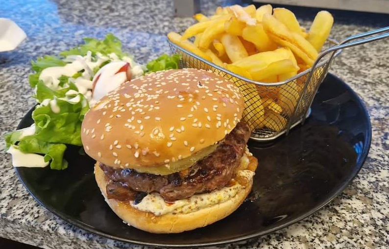 Hamburger excellent, assiettes de salades très copieuses et service de qualité et sympathique