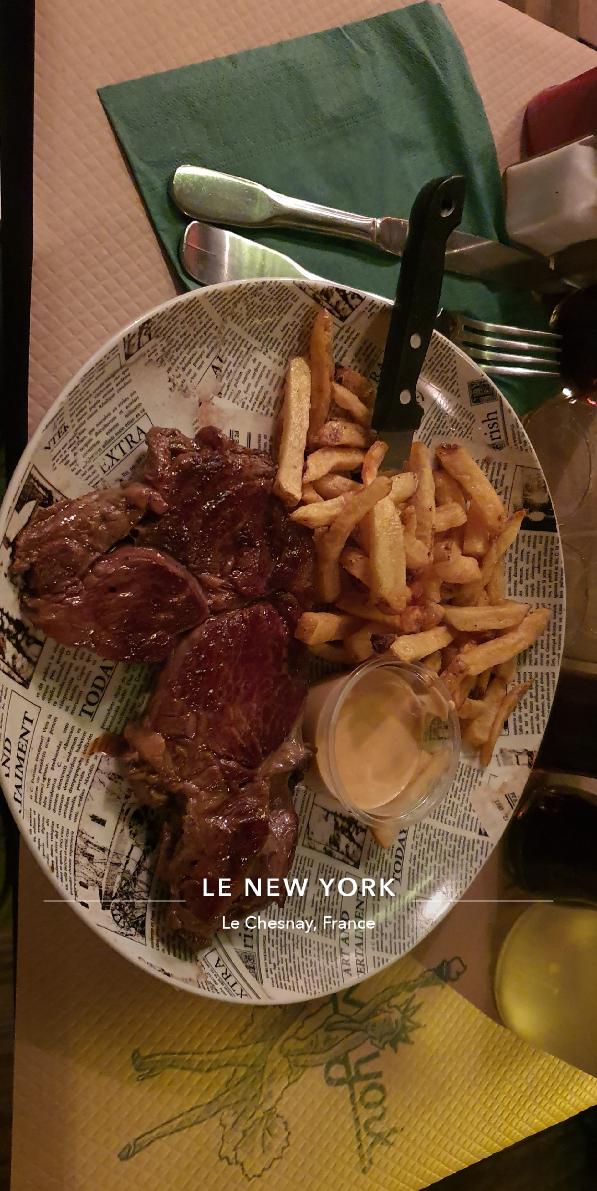 Le restaurant le New York, au Chesnay, c'est une adresse connue, une référence, avec son fameux taxi jaune, yellow cab de New York, stationné à côté... Très bon accueil, burgers délicieux, Bière excellente, et surtout, les salles sont vastes ! On est au large, et l'espace, c'est important ! L'ambiance est vraiment agréable, avec vue sur l'église Saint Antoine de Padoue, magnifiquement éclairée le soir. Une valeur sûre, une clientèle chic, bourgeoise, calme, même si quelques Happy Birthday resonnent parfois, mais pour le bonheur de tous !