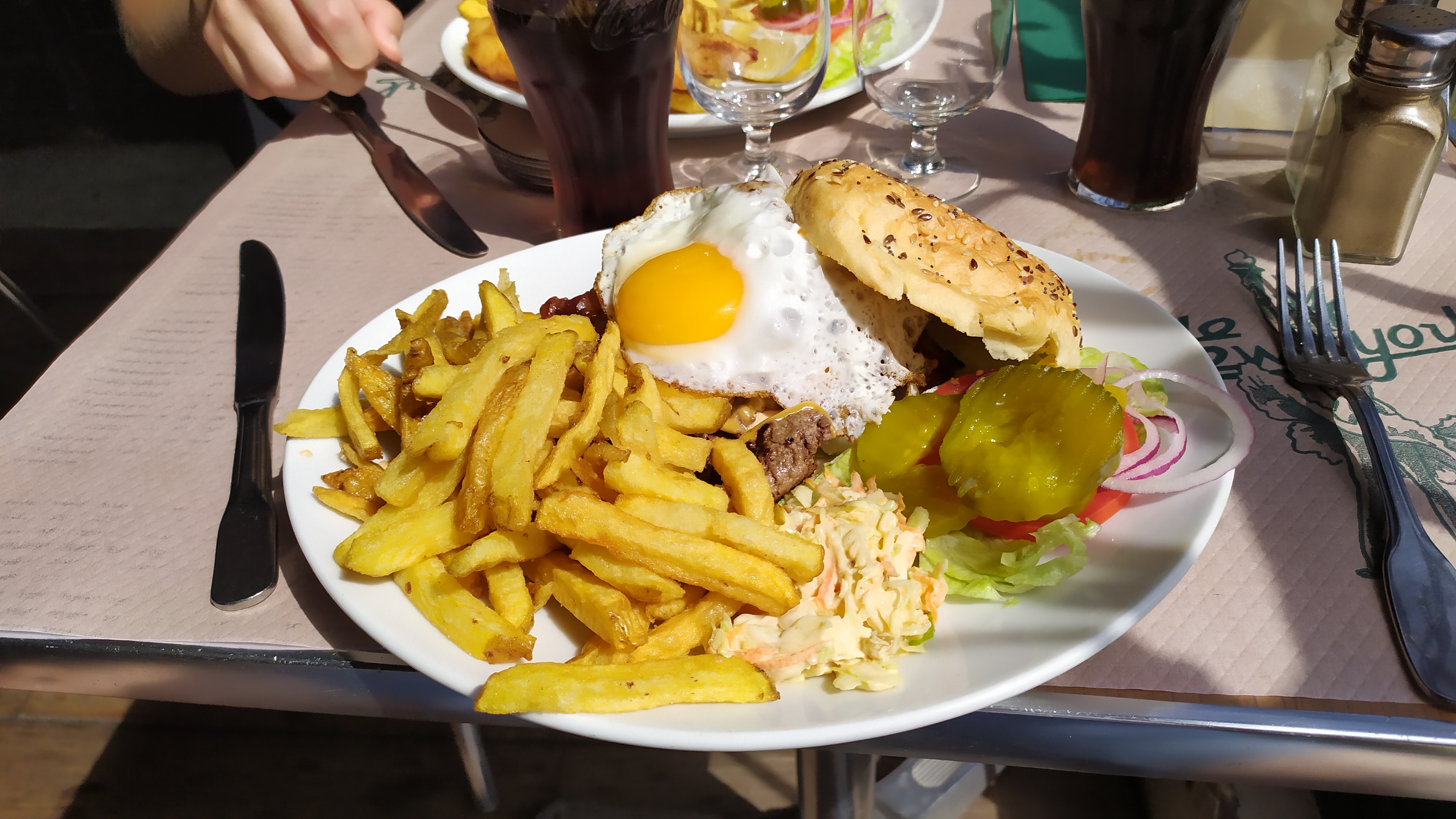 J'adore ce resto bien placé juste en face de l'église St Antoine de Padoue nous avons commandé le burger spécial New York mais le hic les frites sentaient le poisson une vieille huile sûrement pas renouvelée pour une fois déception dans l'assiette dommage !
