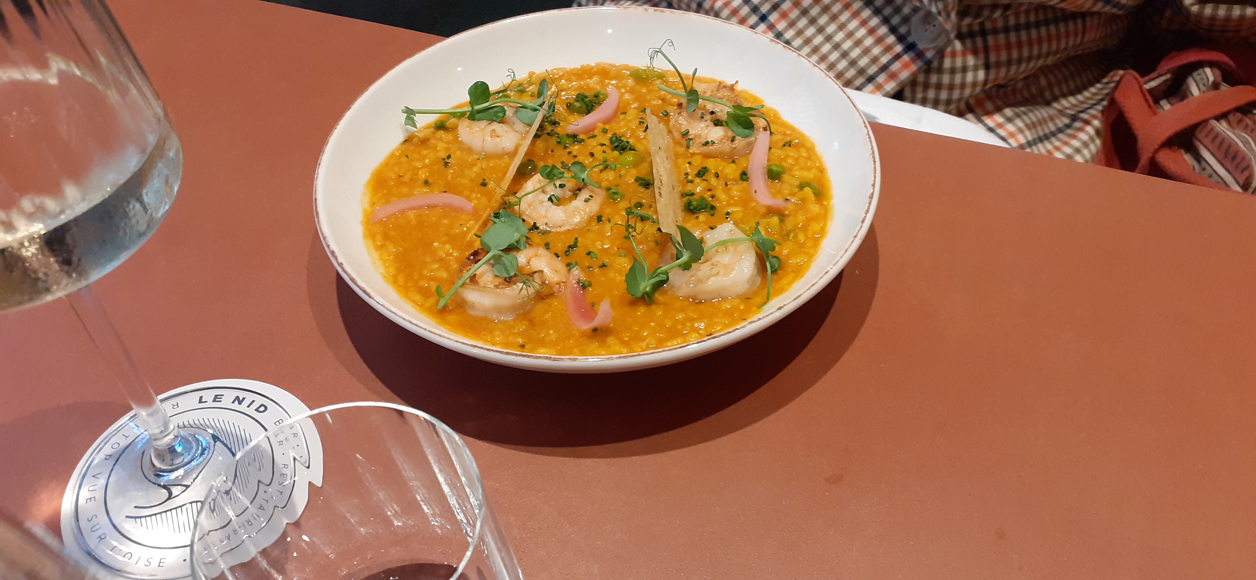 Encore une belle soirée nichée sur la terrasse du Nid hier soir. Installées sur le coté de la terrasse nous avions une vue dégagée sur l'Oise et bénéficions d'une légère brise. Les cocktails étaient très généreux et bien réalisés. Je recommande le Gin To framboise. Notre serveur Morgan que j'ai eu la chance de retrouver a été aux petits soins pour nous tout au long de notre soirée. Il faisait chaud très chaud et il est resté vigilant a ce que tous les clients aient toujours de l'eau fraiche à disposition. Merci pour son professionnalisme et sa bienveillance. La burrata etait toujours aussi bonne. Le rizotto cremeux à souhait.J'ai testé le dessert la Pavlova aux fraises... Un délice ! la chantilly est juste incroyable. Merci pour ce moment A très bientôt