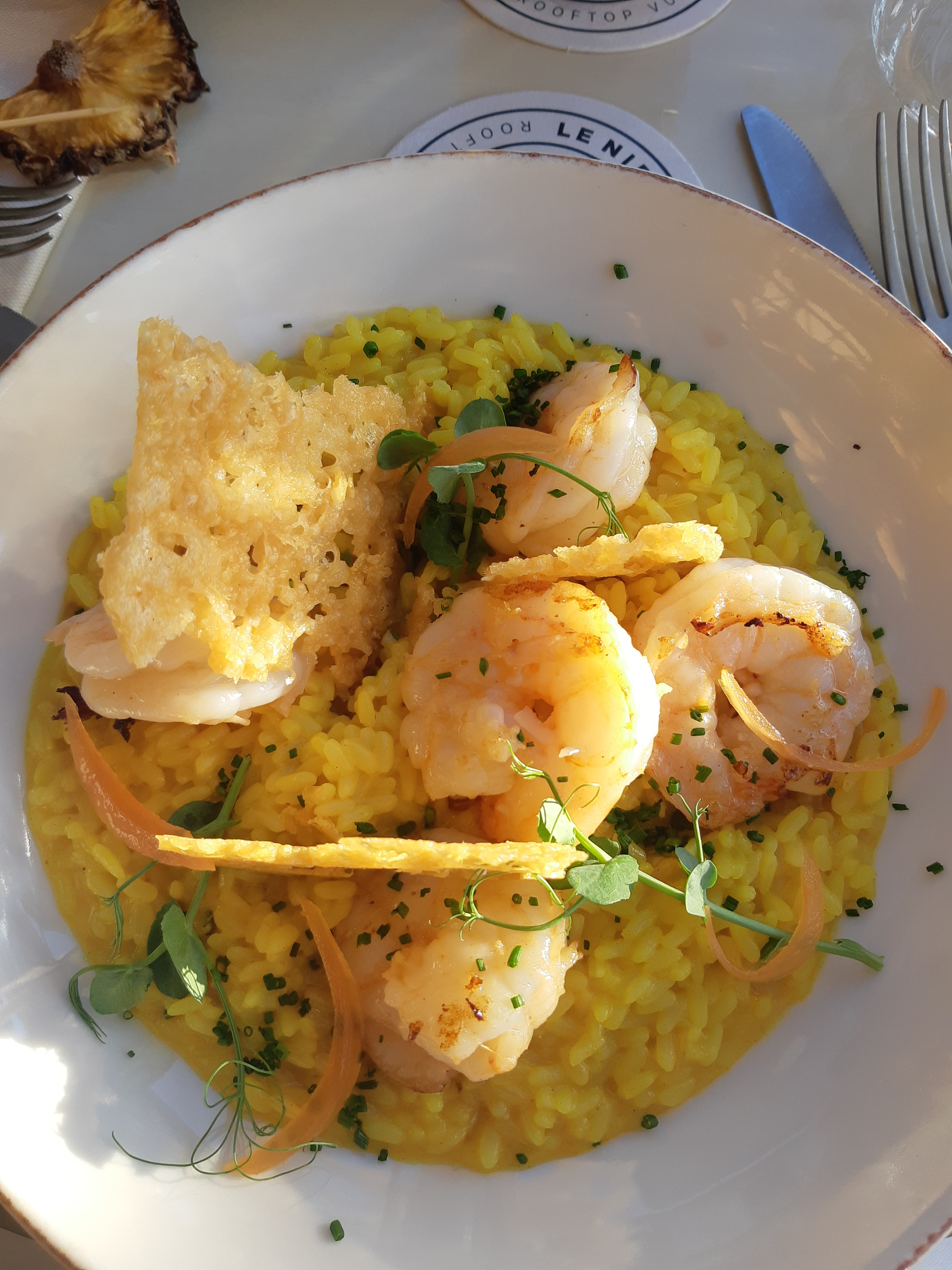 Le plat excellent. Risotto aux gambas... Par contre le dessert... une catastrophe. Pavlova aux fruits rouges. Une fraise coupée en 8 et 2 pauvres framboises pourries. Bon le café nous a été offert. Nous n'y retourneront pas.