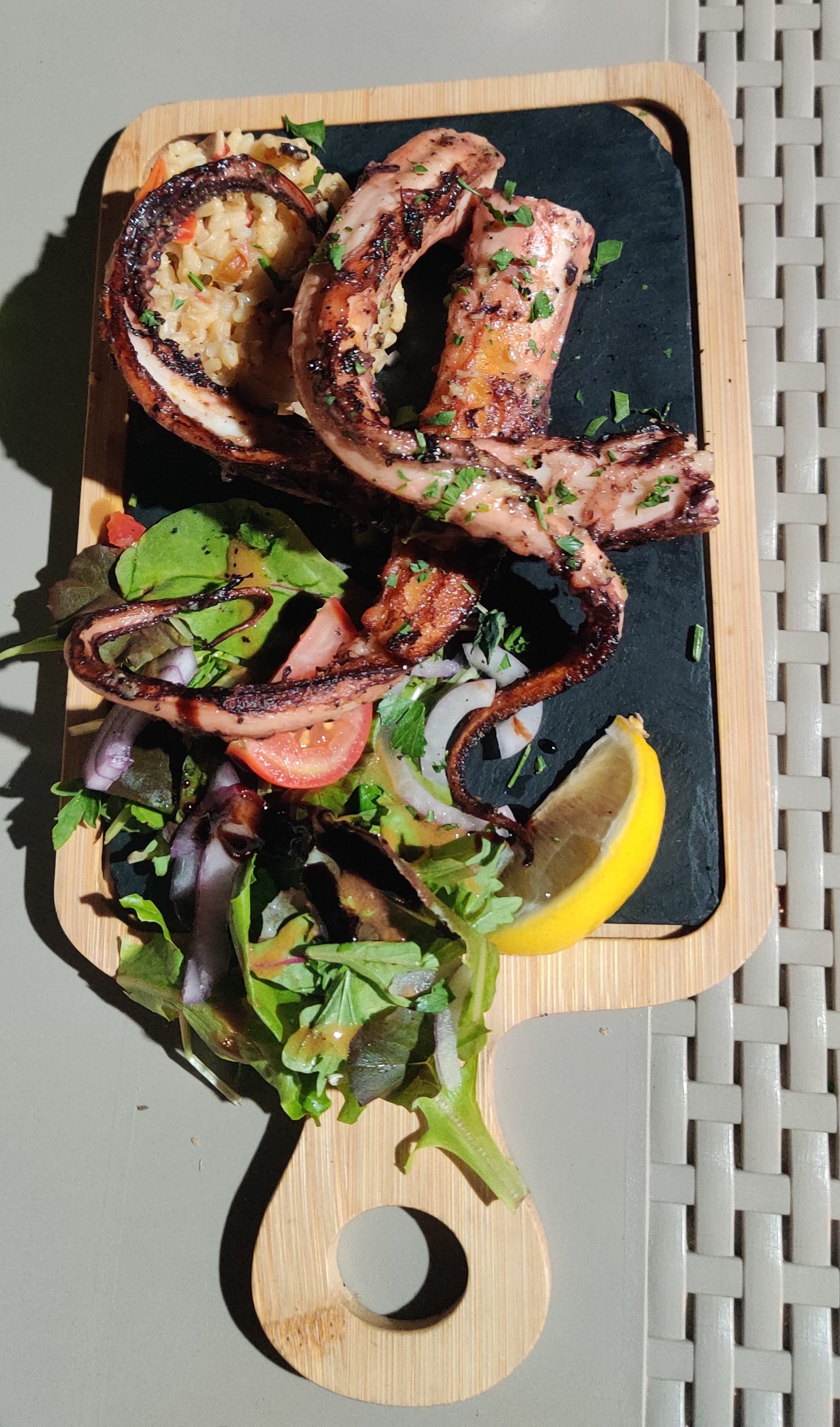 Cadre sympa vue mer,accueil chaleureux, tout est frais car le cuisto est passionné