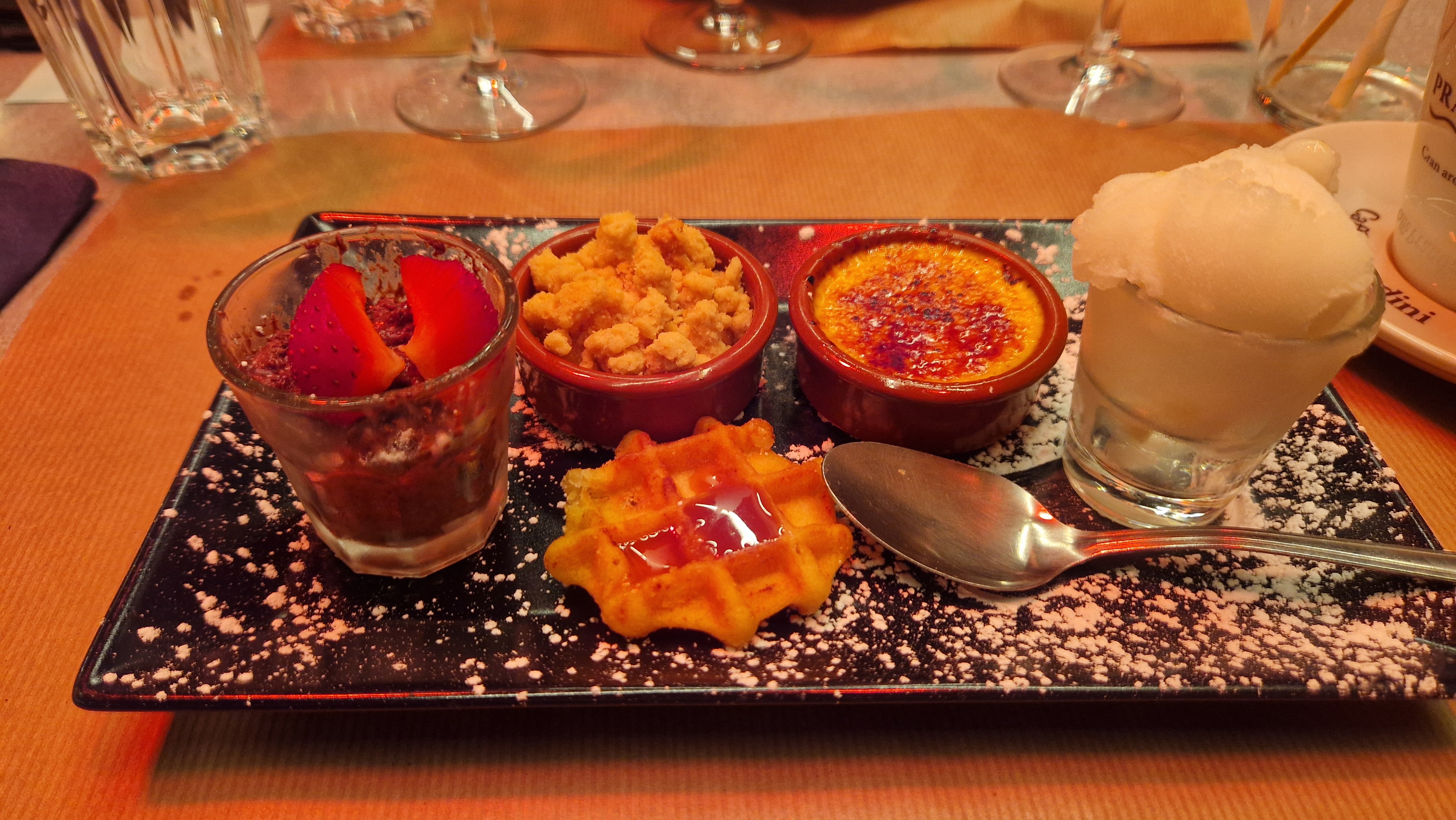 Une terrasse agréable, personnel sympathique, on a goûté pratiquement toute la carte, vraiment copieux et bon. On reviendra l' année prochaine.