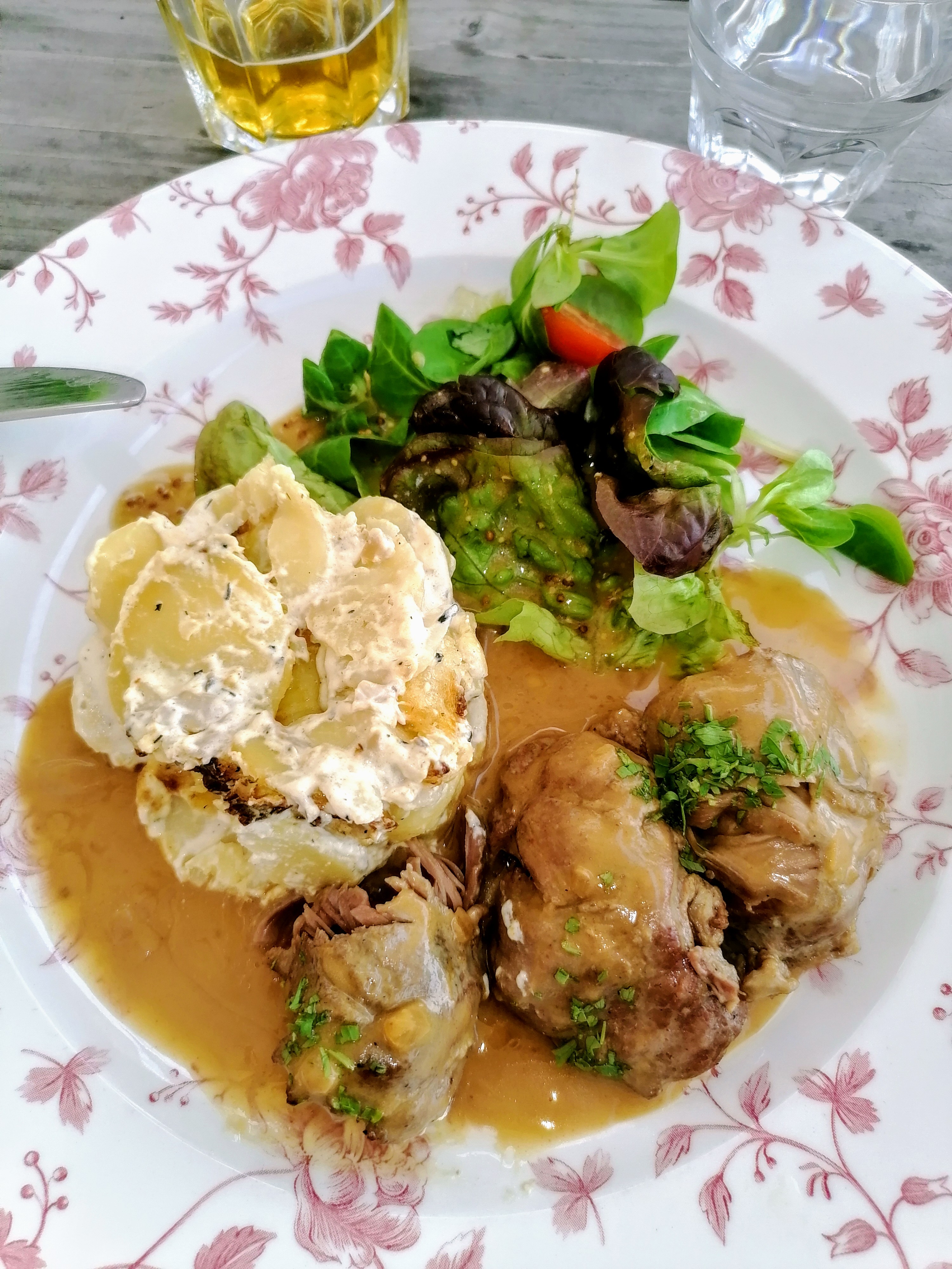 Le cadre est très sympa, mais le service est long, trèèèès long... C'est dommage, car la carte propose des plats qui mettent l'eau à la bouche. Enfin, ne parlons pas trop vite : lorsque l'on commande et qu'on nous annonce que deux plats sont indisponibles sur cinq, ça réduit le champ des possibles et fait bien vite retomber la bonne humeur... Sachant que c'est un restaurant qui ne prend que sur réservation, donc qu'il devrait normalement avoir toutes les cartes en mains pour prévoir les justes quantités et ne pas manquer, c'est un peu abusé... Pareil, niveau quantité : la team saumon gravlax n'a tellement rien dans son assiette qu'elle en vient à envier les assiettes de rillauds de ses voisins. Je le redis, mais dommage, ce restaurant avait tout pour plaire (du moins de l'extérieur) :/