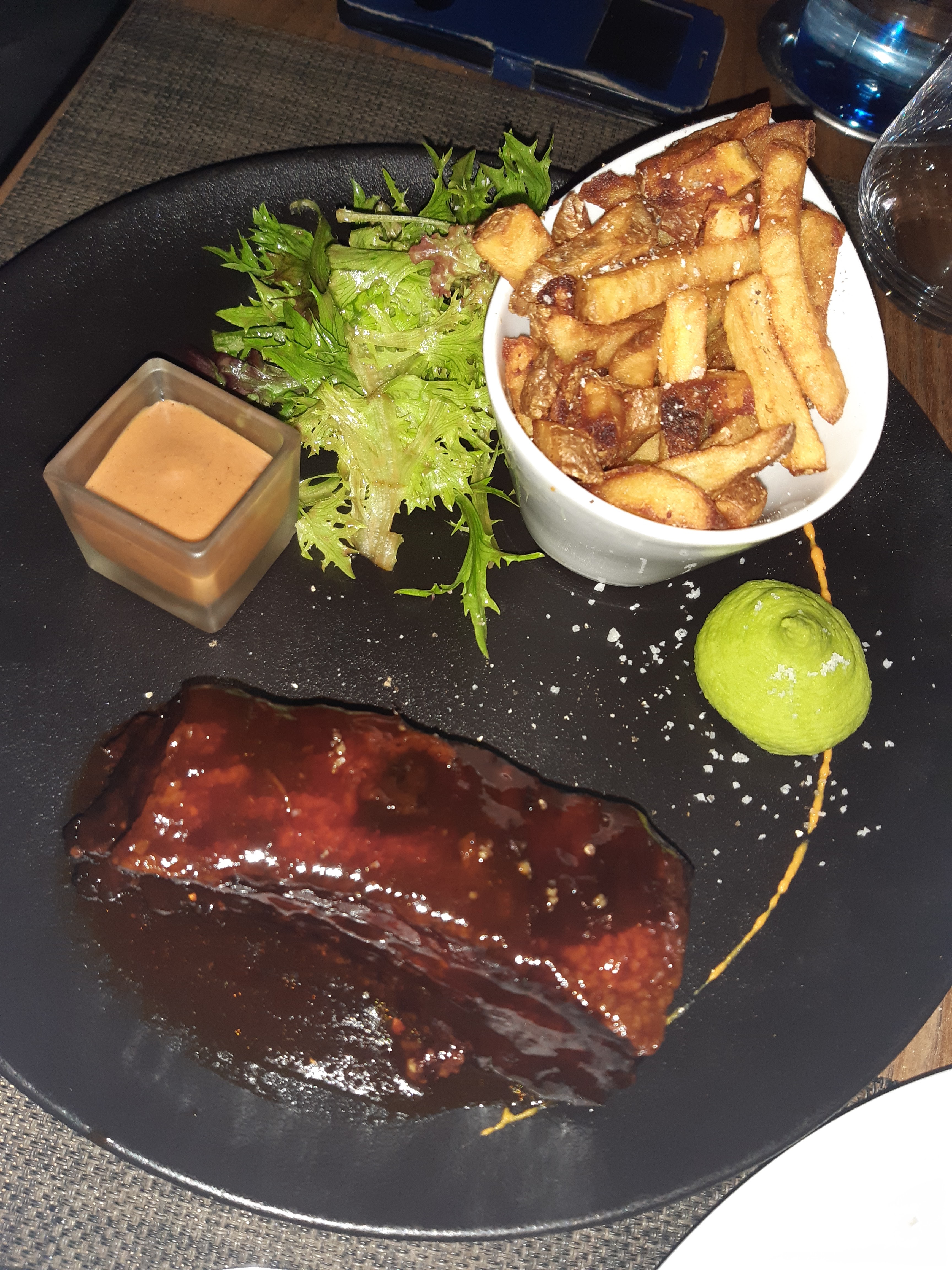 Très bon restaurant toujours, accueil , services, plats. Mais des améliorations peuvent être apportées notamment aux ribs que j'ai pris comme plat, la cuisson est vraiment a revoir trop sèche trop cuite, cependant la sauce est très bonne. Pour les autres plats très bien ' peut être un petit peu plus copieux pour certains serait meilleur voire parfait.