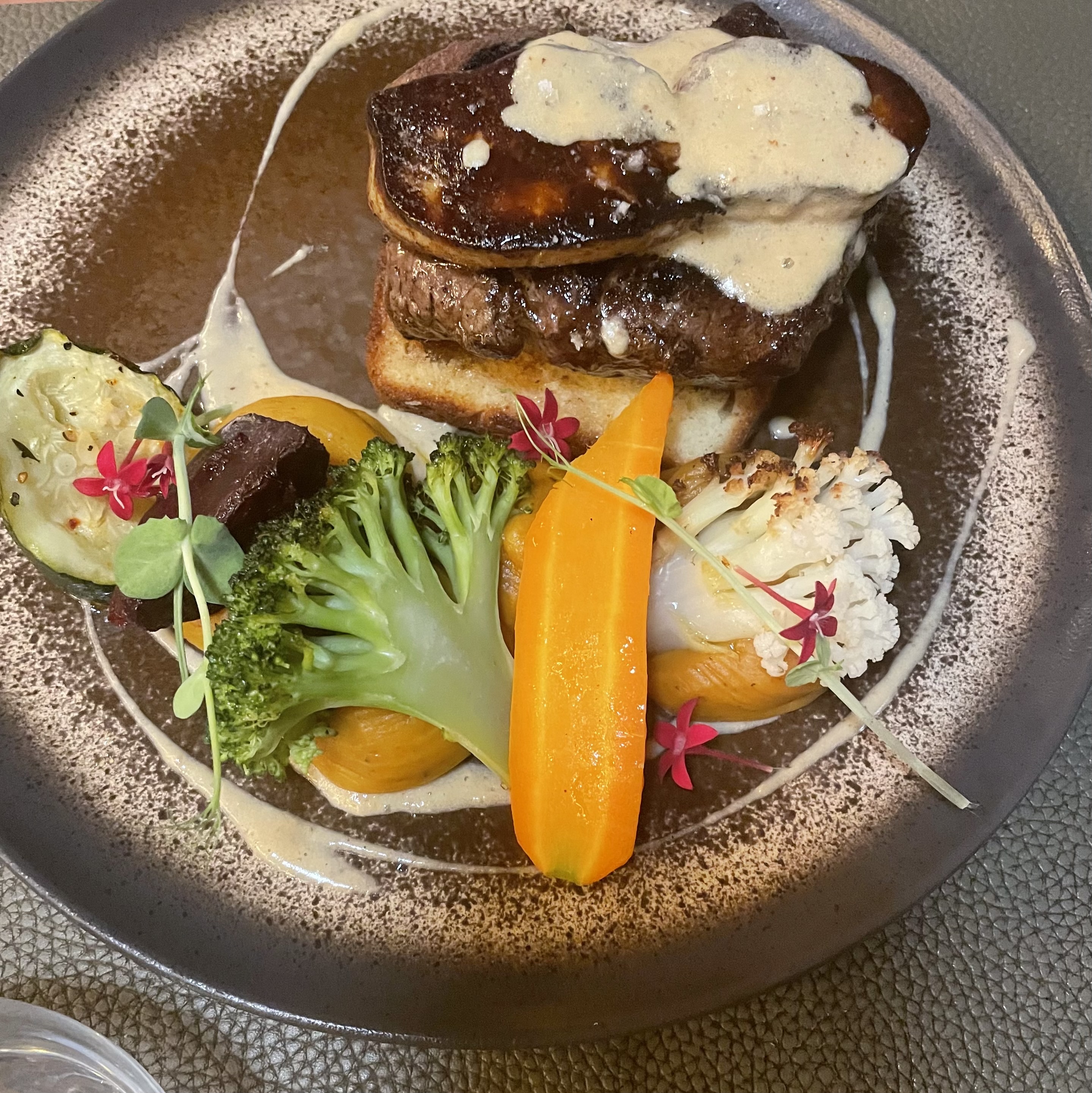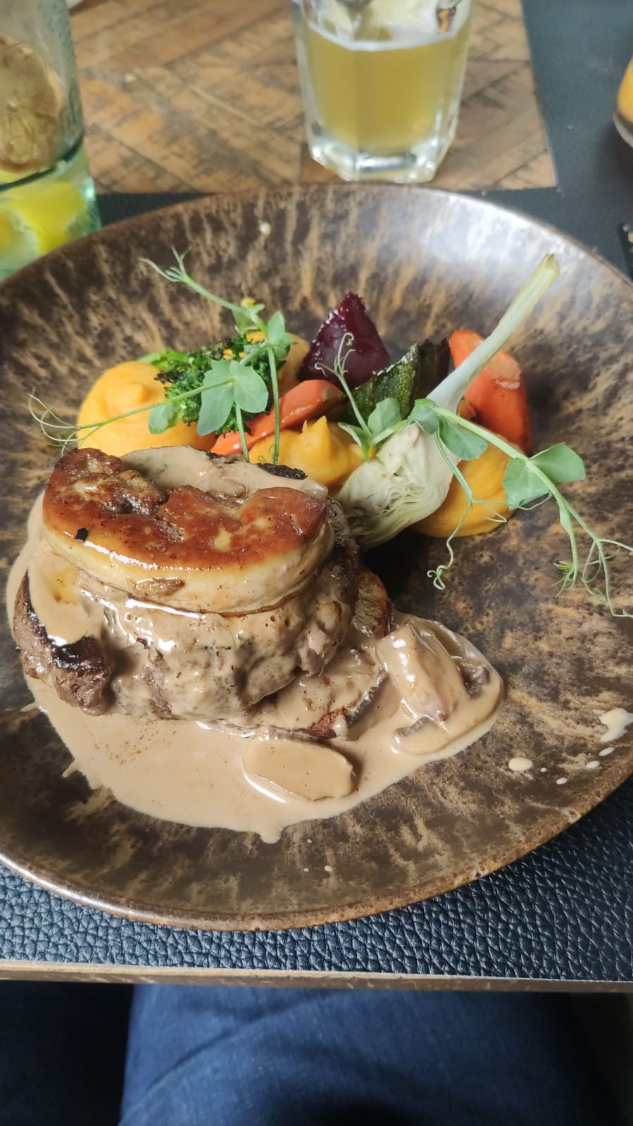 Très agréable table, desserts fait par le pâtissier 👨🍳 maison qui ne pourront pas vous laisser indifférent, ce lieu est extrêmement bien décoré par le bois et le végétal , j’ai pris un filet de bœuf avec foie gras mi cuit…un pur bonheur 😊