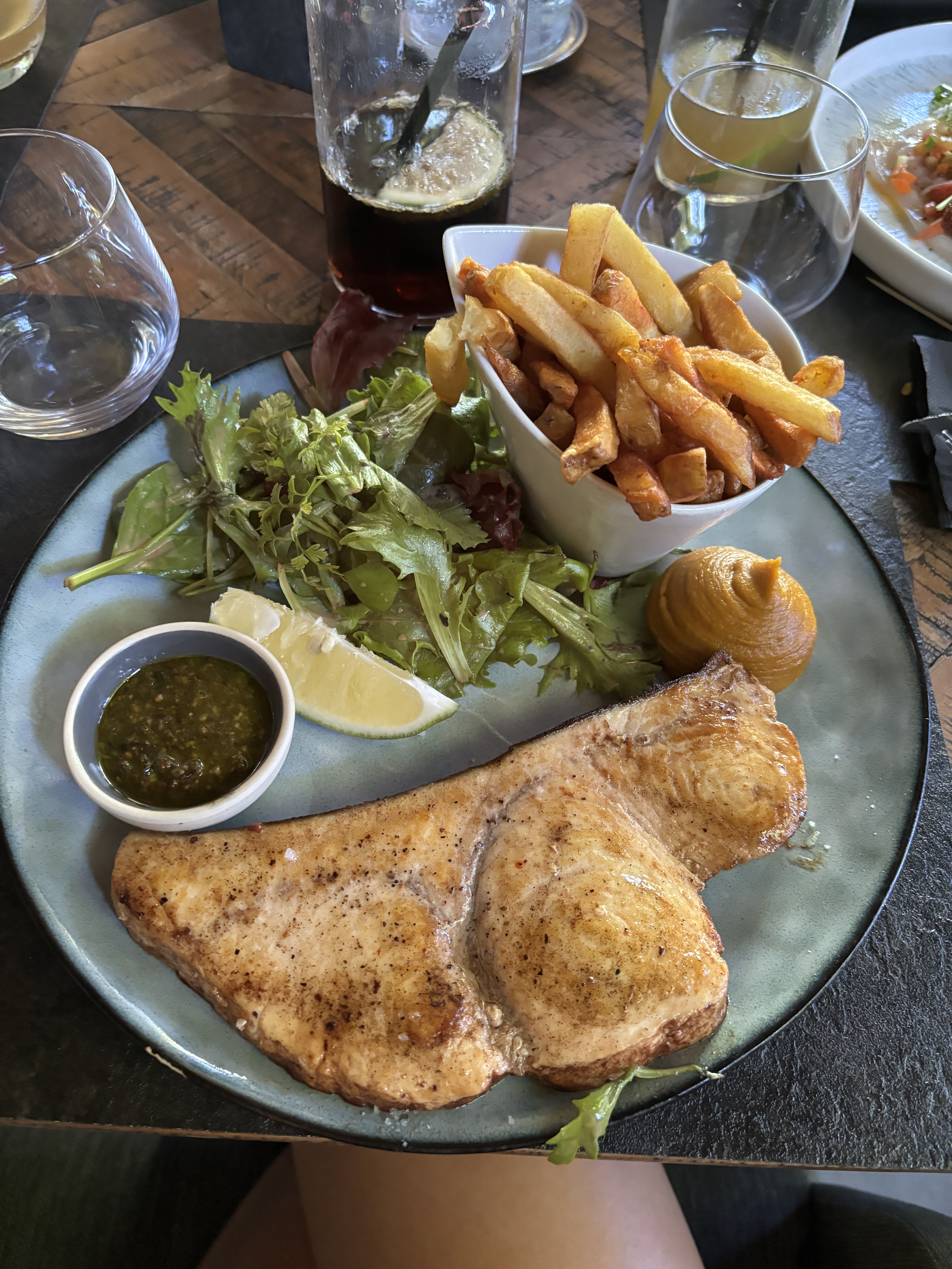 Belle découverte ! Dîner entre copains, je conseille le cocktail de fruits qui est excellent . Concernant les plats tant poisson ( le maigre/ l espadon) que la viande ( pièce de bœufs) sont trop gouteux avec un accompagnement frites maison et légumes. Les plats sont très copieux. En dessert le fondant au chocolat Valrhona est extra 😍. Sans en oublier le service pro et rapide à souligner sur dans les temps qui courent 😉 Bravo Étape culinaire incontournable !!