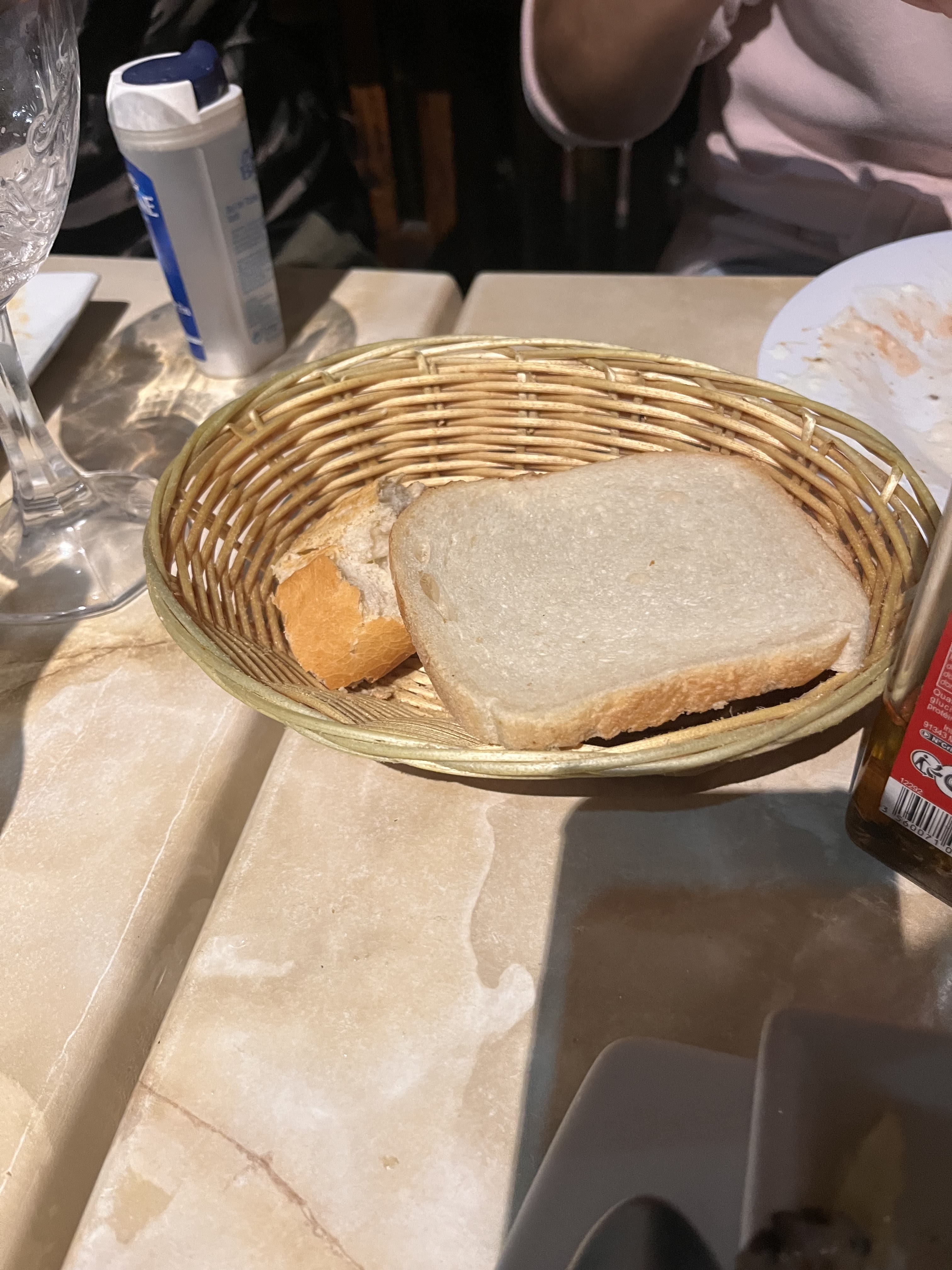 Pain de mie servi à la place de la baguette. Salade pas fraîche et temps de service interminable au moins 40 minutes. Et sans oublié la télé qui gueule pour le bon plaisir des élèves officiers….