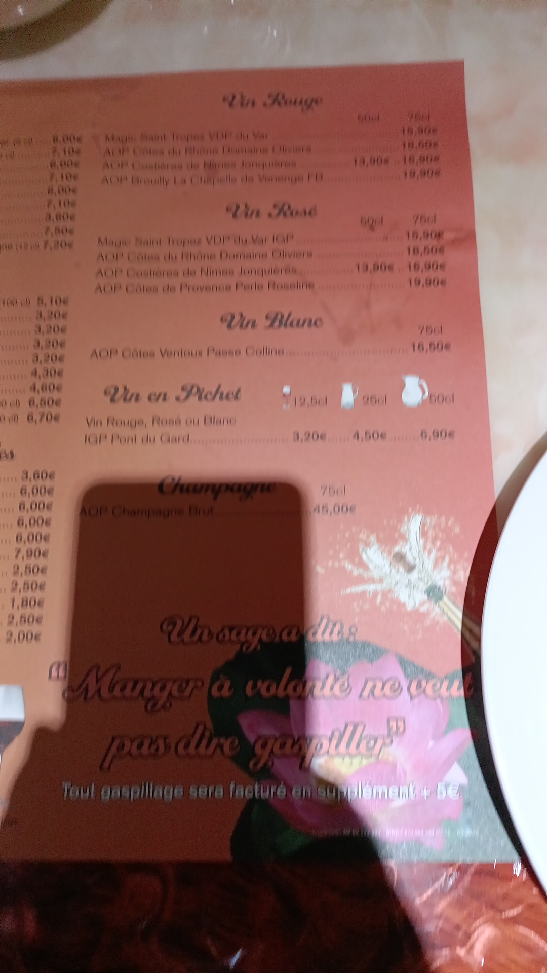 Le seul truc que j'ai trouvé bizarre c'est le lustres qui fait que clignoter sinon super restaurant rien a dire 16,90 le repas a midi et 22,90 le repas du soir sa va c'est résonable