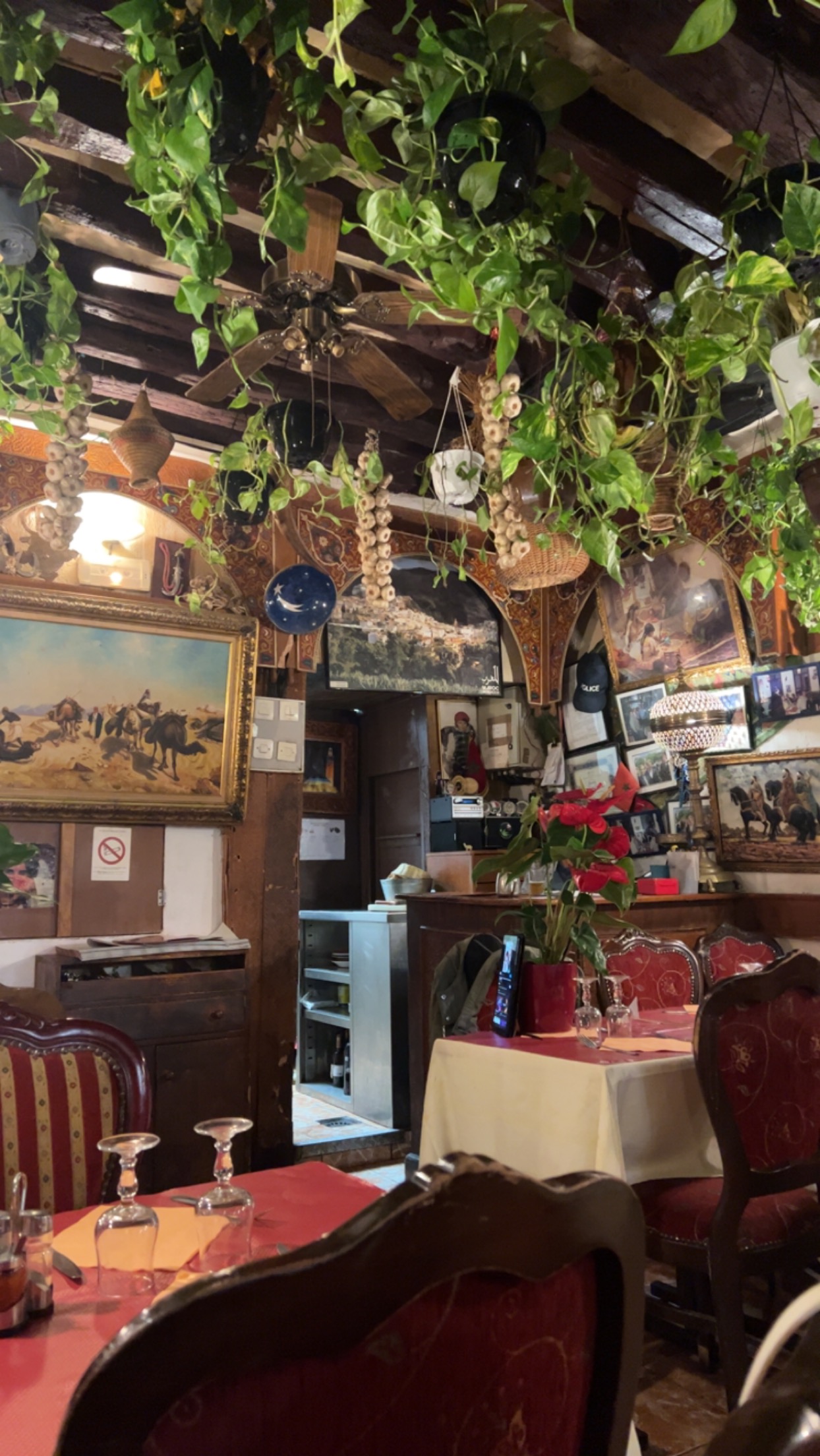 Non partis pour manger un couscous dans le Quartier Latin, nous nous sommes fait alpaguer par une charmante dame et laissés séduire par son couscous royal. Pas déçu du tout. Il était très bon et copieux Le serveur était très gentil, ce qui ne gâche rien. Le cadre est charmant avec toutes ses plantes au plafond. Et la note, très confortable pour 3 personnes avec apéro, vin et thé à la menthe pour terminer ! Je recommande !
