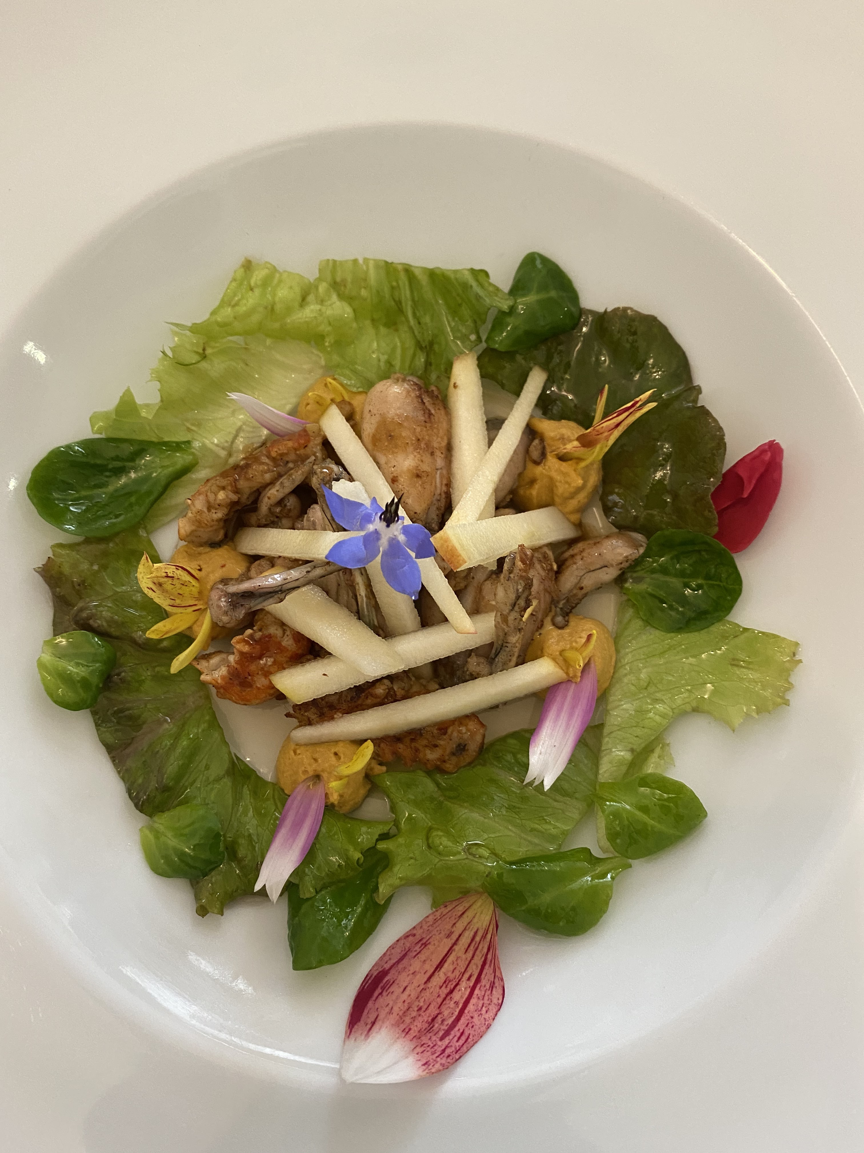 Au menu, carpaccio de Saint-Jacques, ris de veau au ratafia, tarte au chocolat et pour le vin, la cuvée Olympe de chez Olivier Morin. Je vous invite à passer un très bon moment là bas, la cuisine est fine, parfaitement maîtrisée et le service de qualité 👍