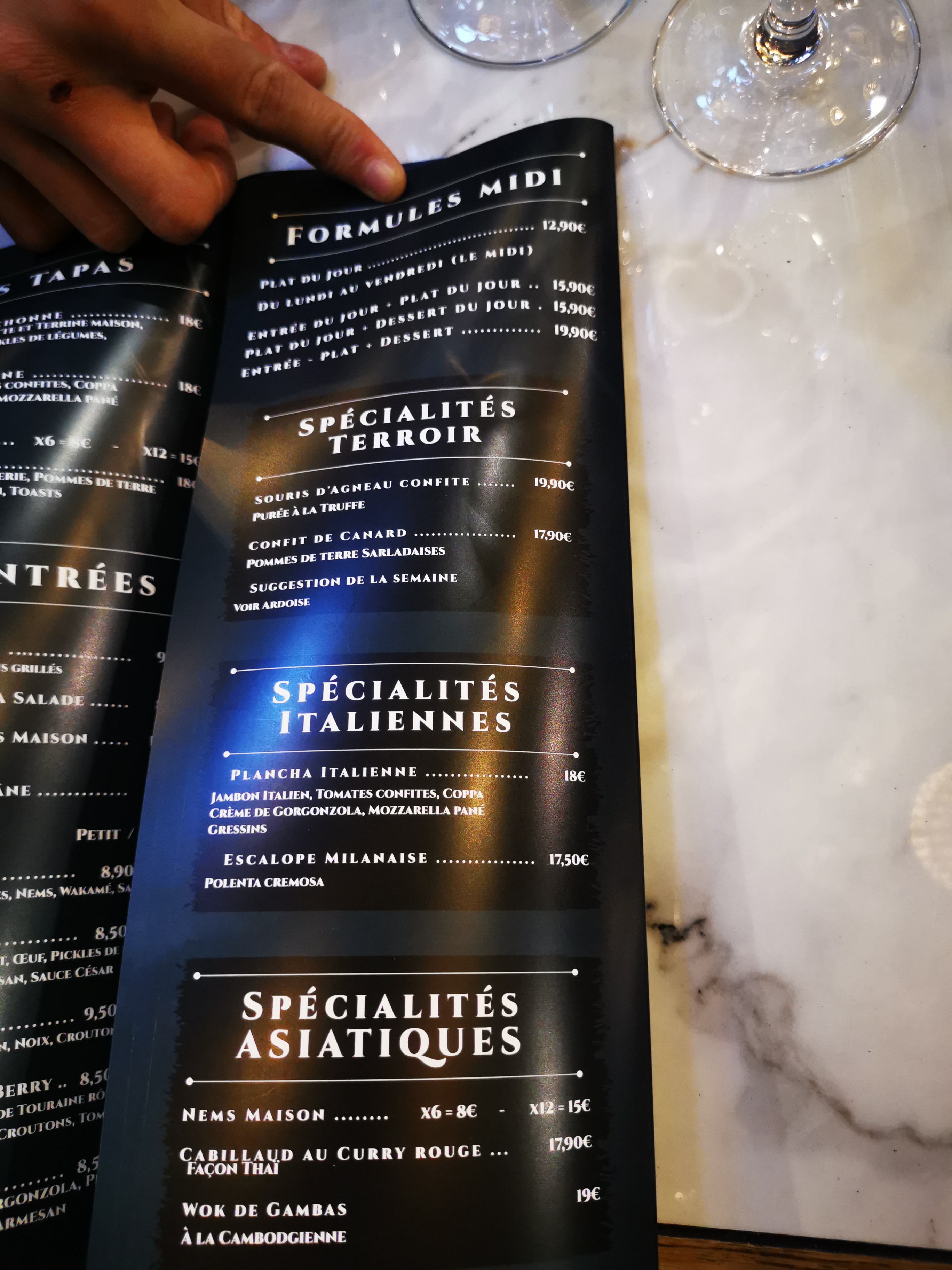 Très bon carte avec du choix sans en avoir de trop les produits sont frais et le personnels sympa