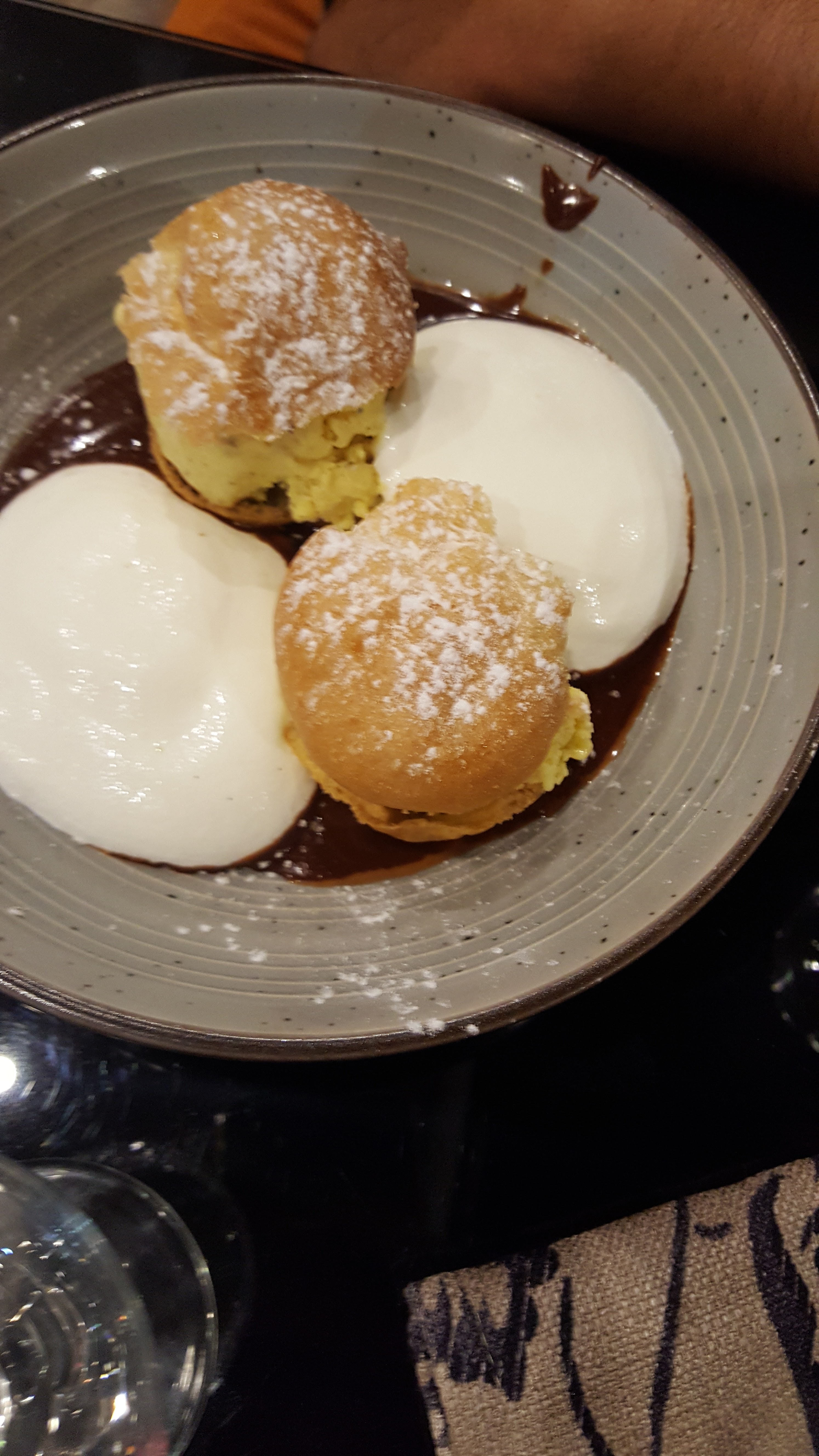 Les desserts étaient bons et les plats bien présentés mais avec un manque de saveur et de quantité. Pas de plat végétarien comme annoncé sur le site. Nous avons eu froid et l'attente trop longue a vraiment gâché les choses, le service n'est vraiment pas pro.