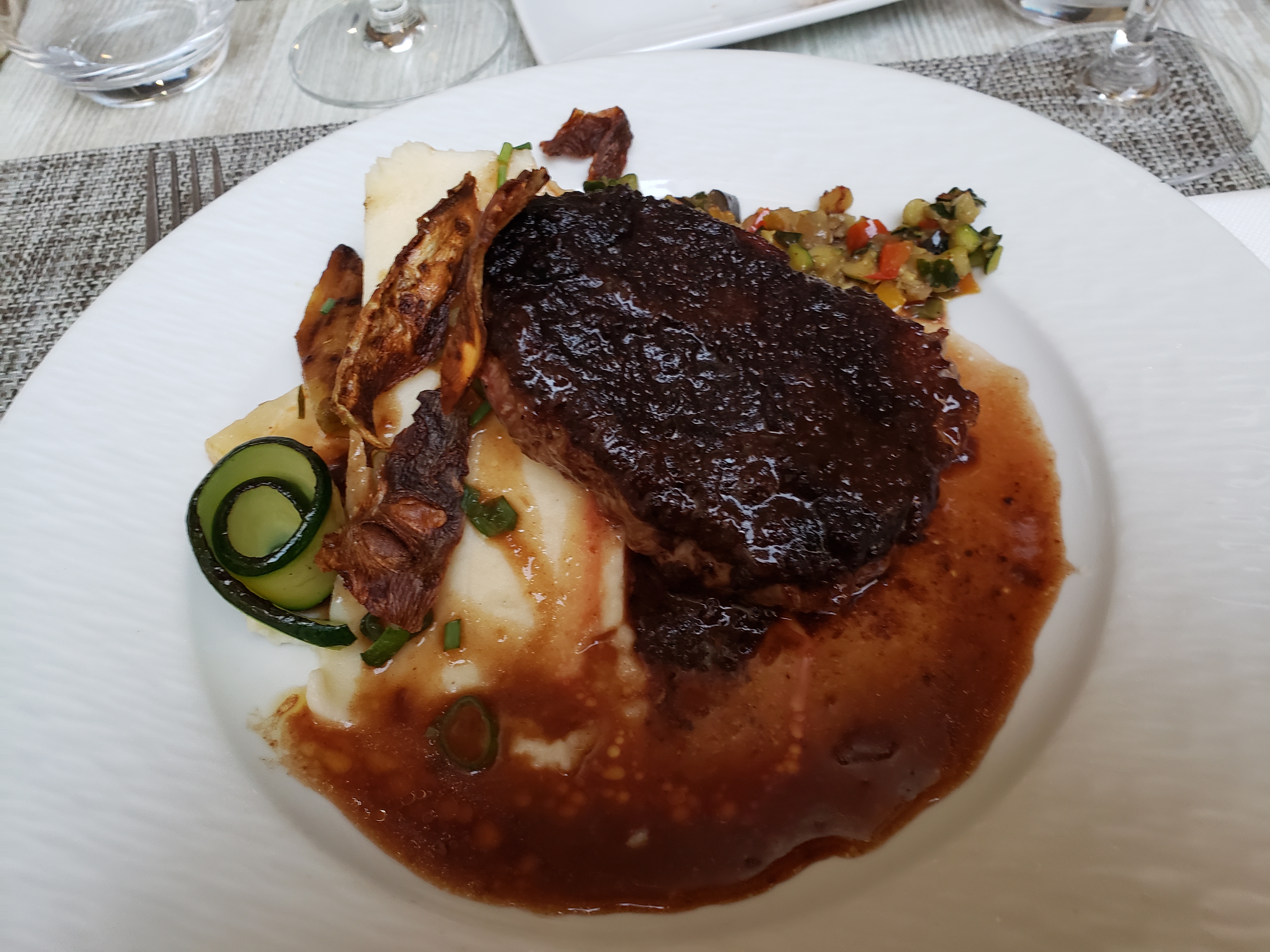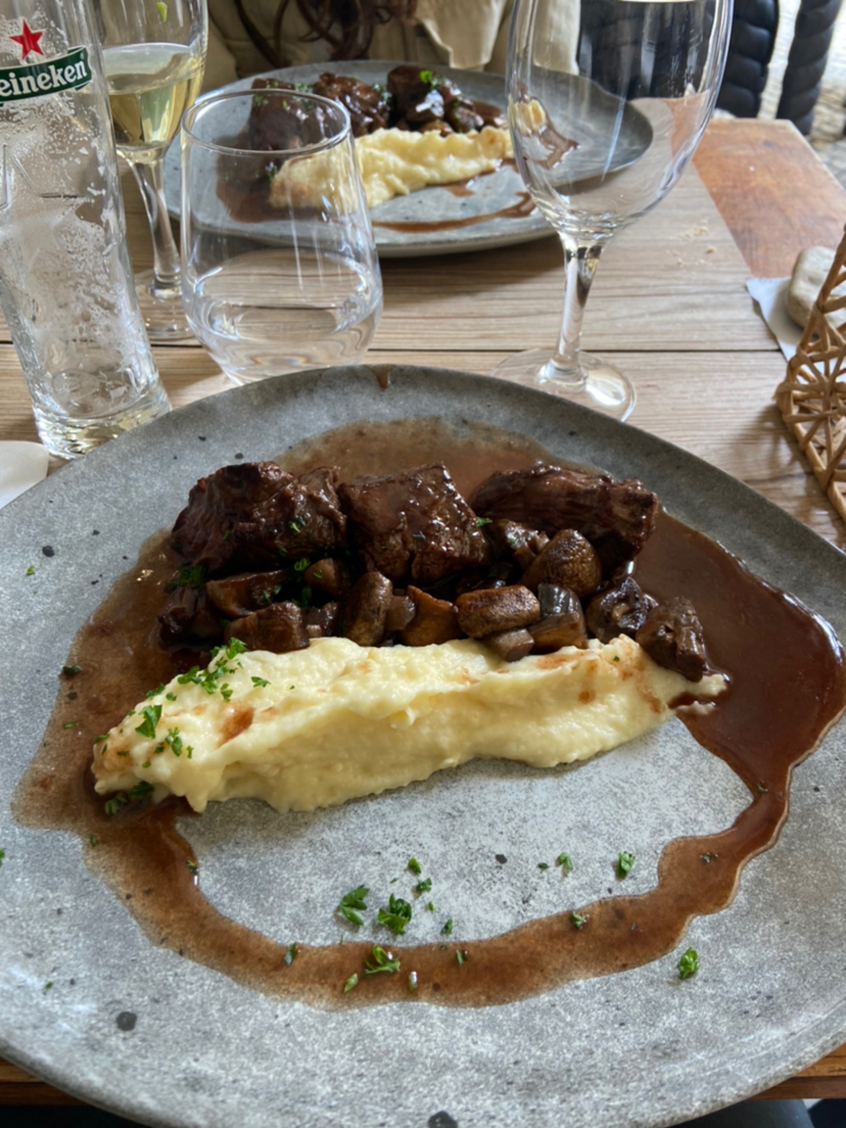 Très bon dans l’ensemble, mais beaucoup trop chère .. 34€ le menu entre plat dessert, j’attend vraiment que ça soit IRRÉPROCHABLE .. seulement deux choix en entrée avec saumon cru ou foie gras (supp. 2€). En plat une viande avec une purée (19€ à la carte ..!!!!) photo ci dessous. C’est dommage car j’en suis sûr, il y a un vrai chef qui sait cuisinier derrière, mais la qualité/prix est à revoir, trop chère, pour une purée.. à souligné quand même que la viande était très bonne.
