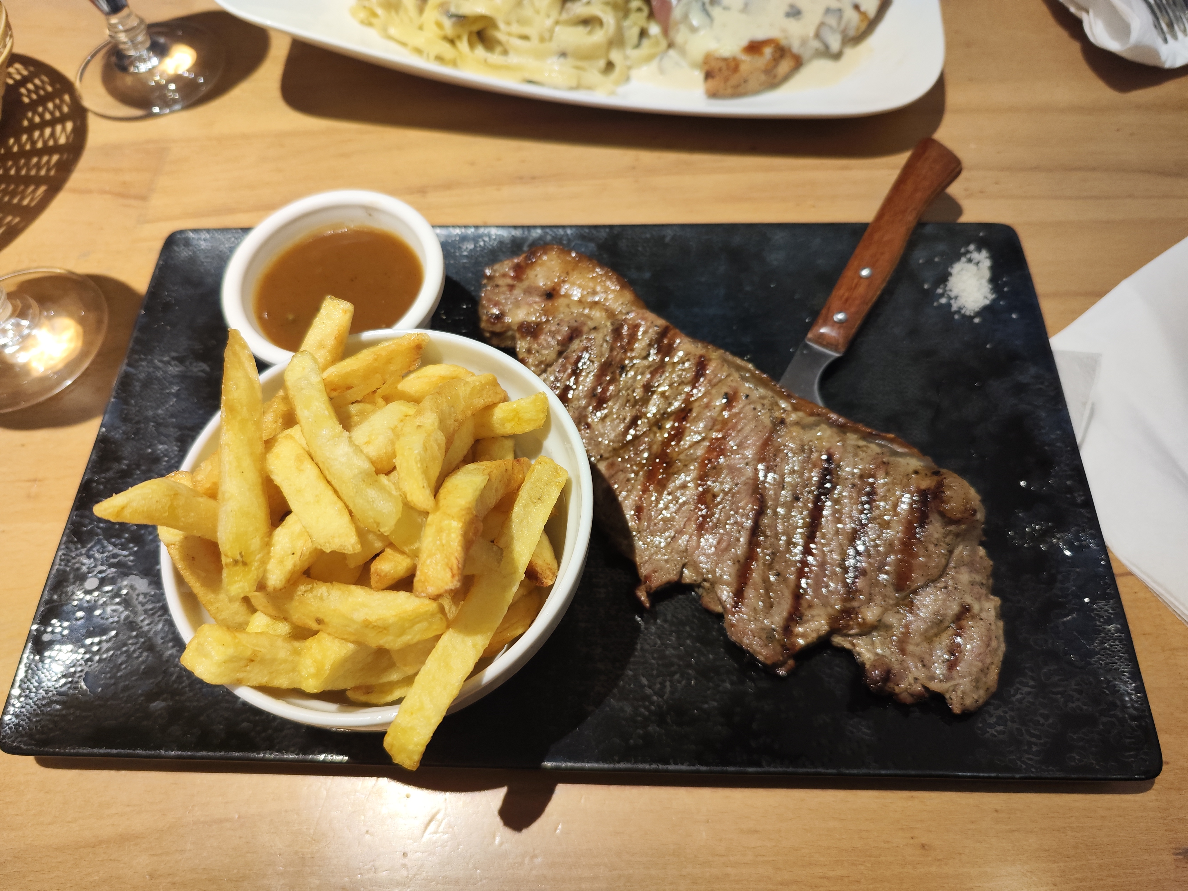 J'ai mangé un super steack frittes maison que je recommande, un délice. À l'exception du tiramisu trés mal réalisé dommage !! Pourtant avec un peu d'effort il sera meilleur niveau goût et présentation ! À revoir !
