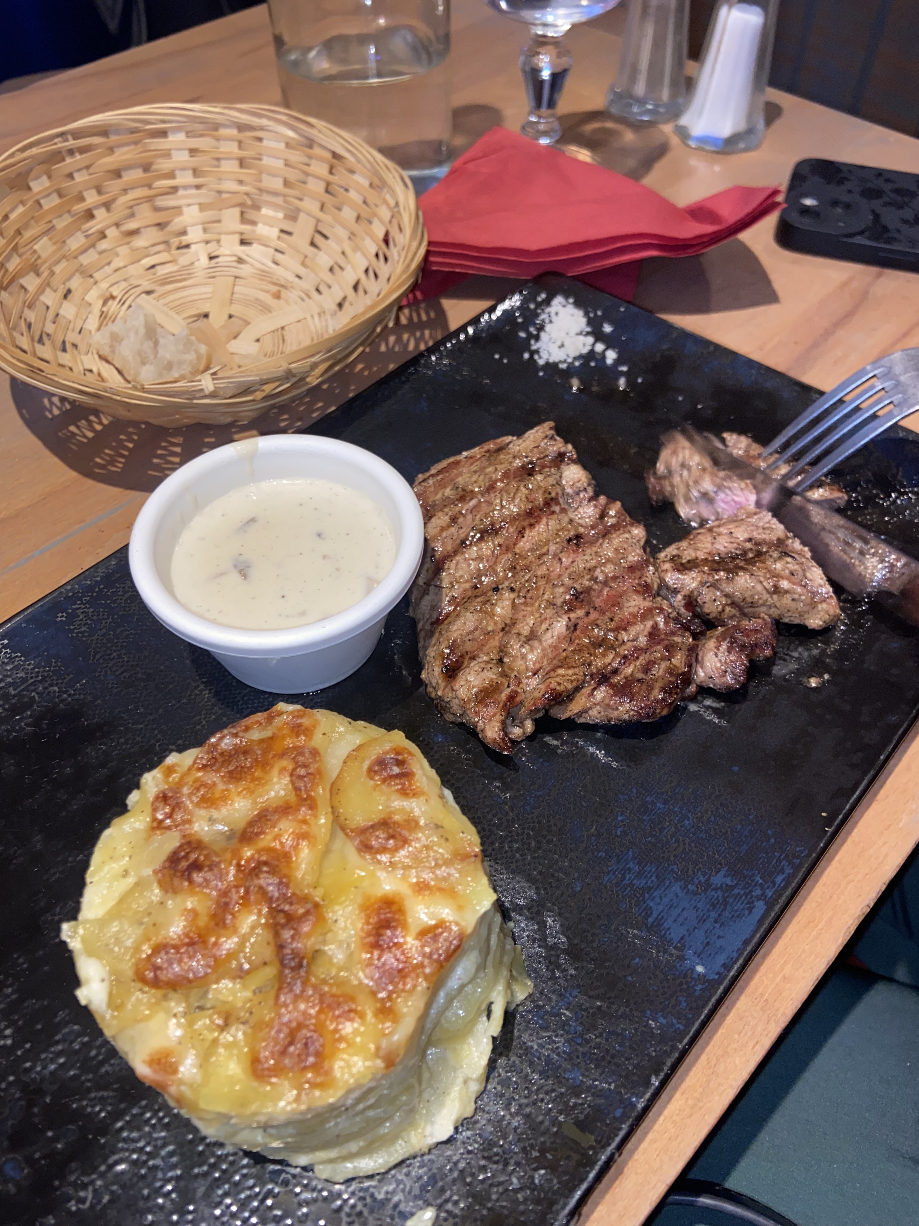 Restaurant très agréable viande bien cuite et leur gratin dauphinois super bon rien n’a rajouter vraiment pas dessus aussi du mojito cerises . Je vous recommande fortement se restaurant