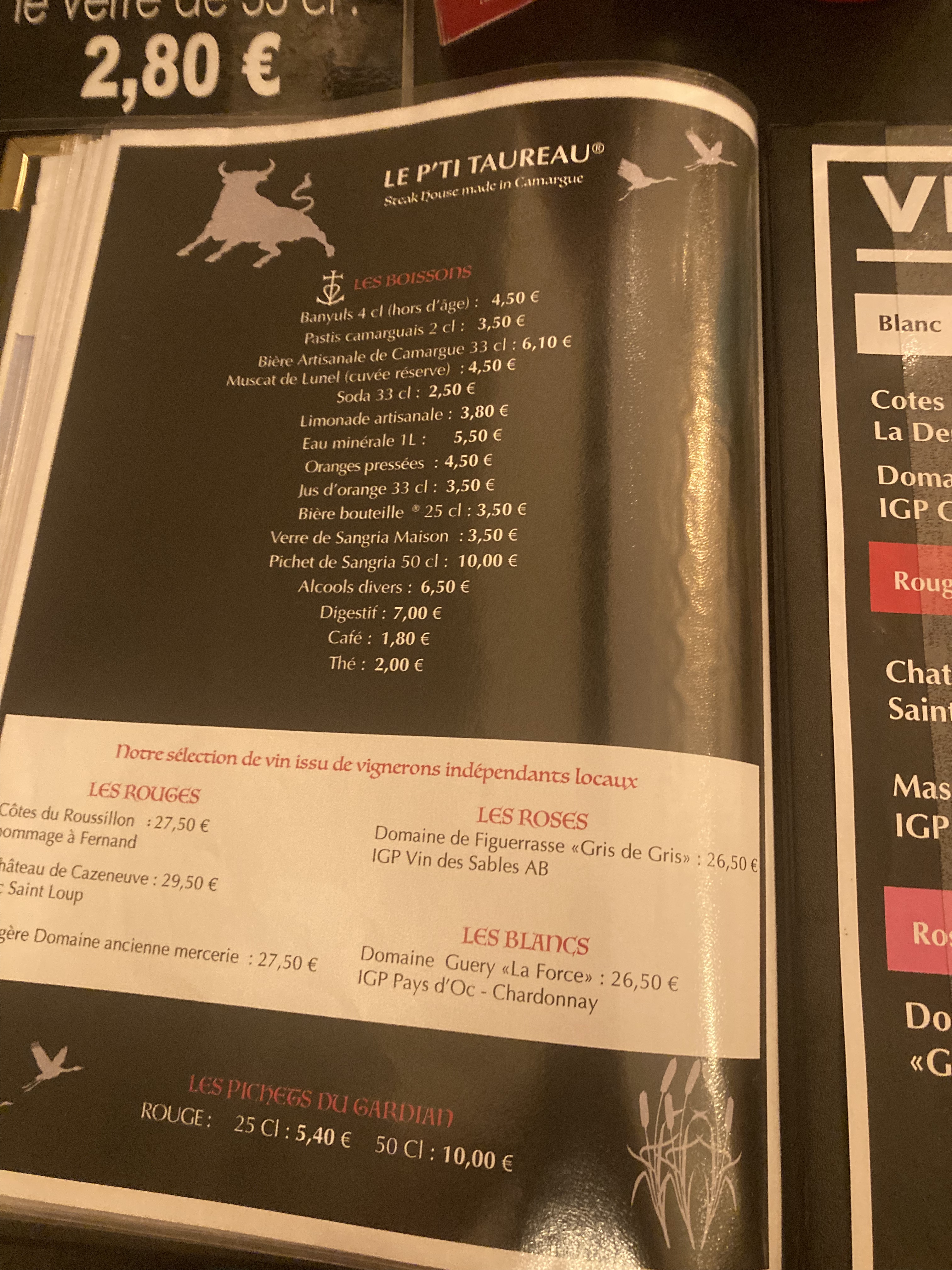 La gardiane de taureau bonne et copieuse.Le dessert aussi et original , il y a de la recherche. Le vin rouge au verre pas extra . Dans un resto je regarde la qualité des mets, les desserts mais aussi le décor. Et là je pense qu'il faut redonner un coup de rajeunissement aux peintures et pitié,pas de toilettes en noir ... Vous avez gardé la couleur noire du taureau mais point trop n'en faut) Bonne continuation !