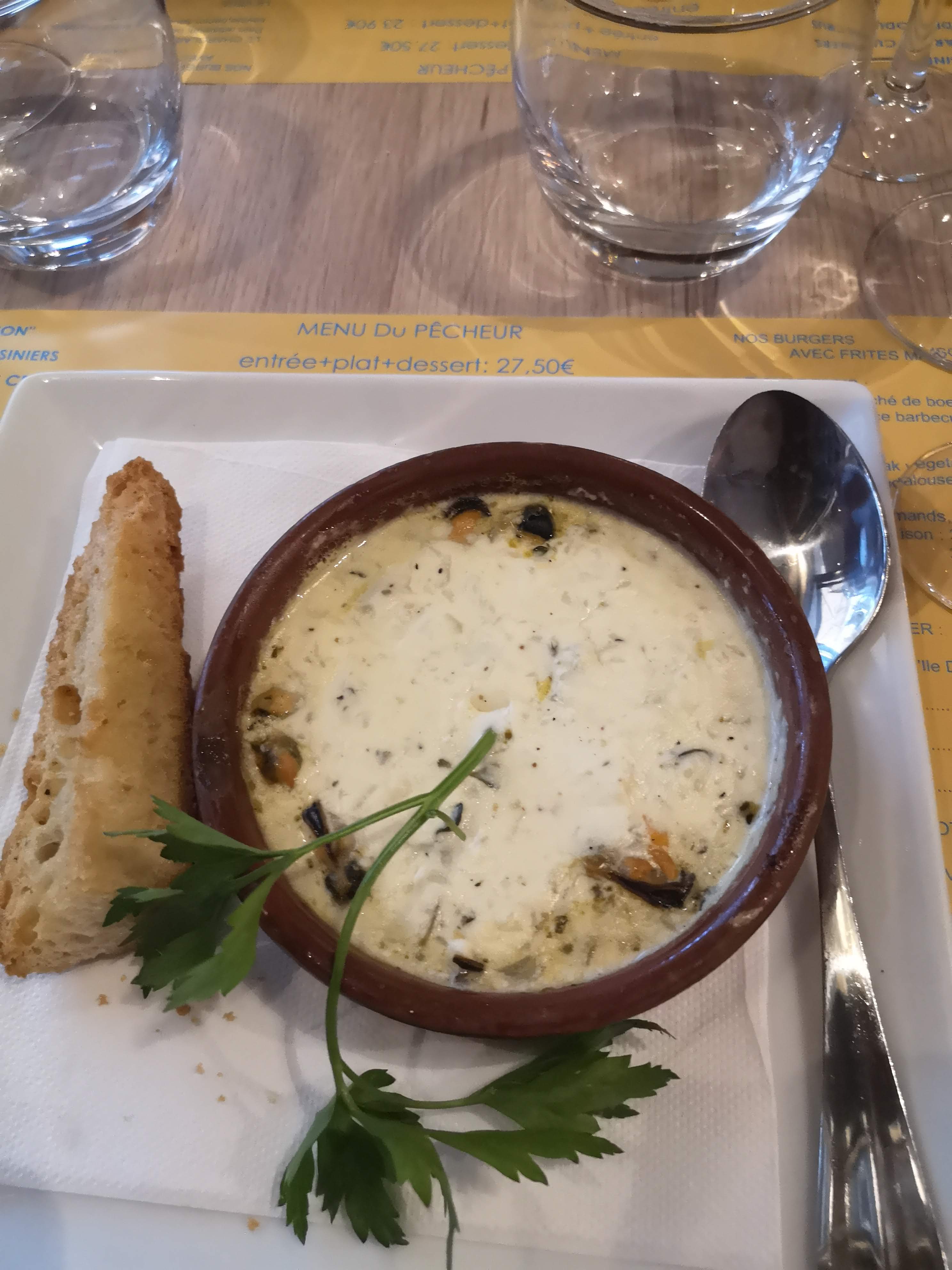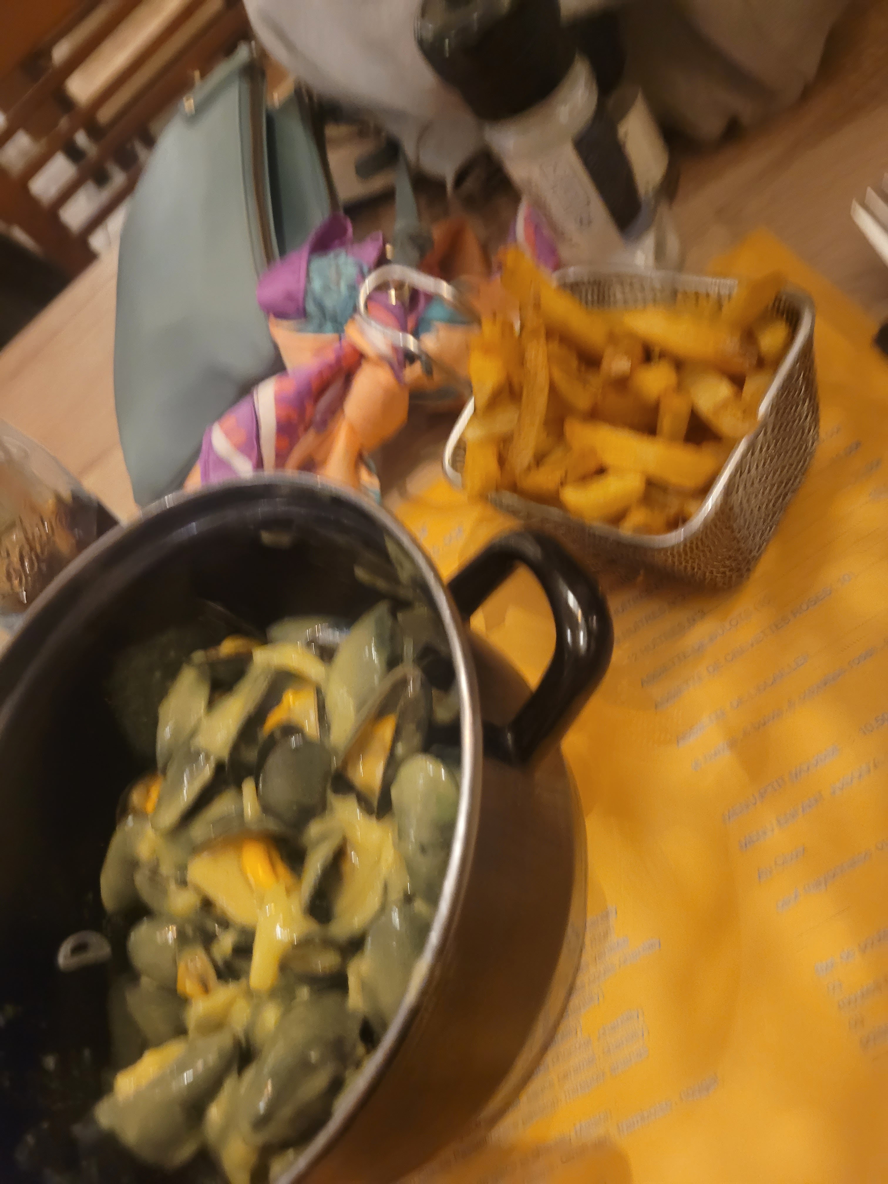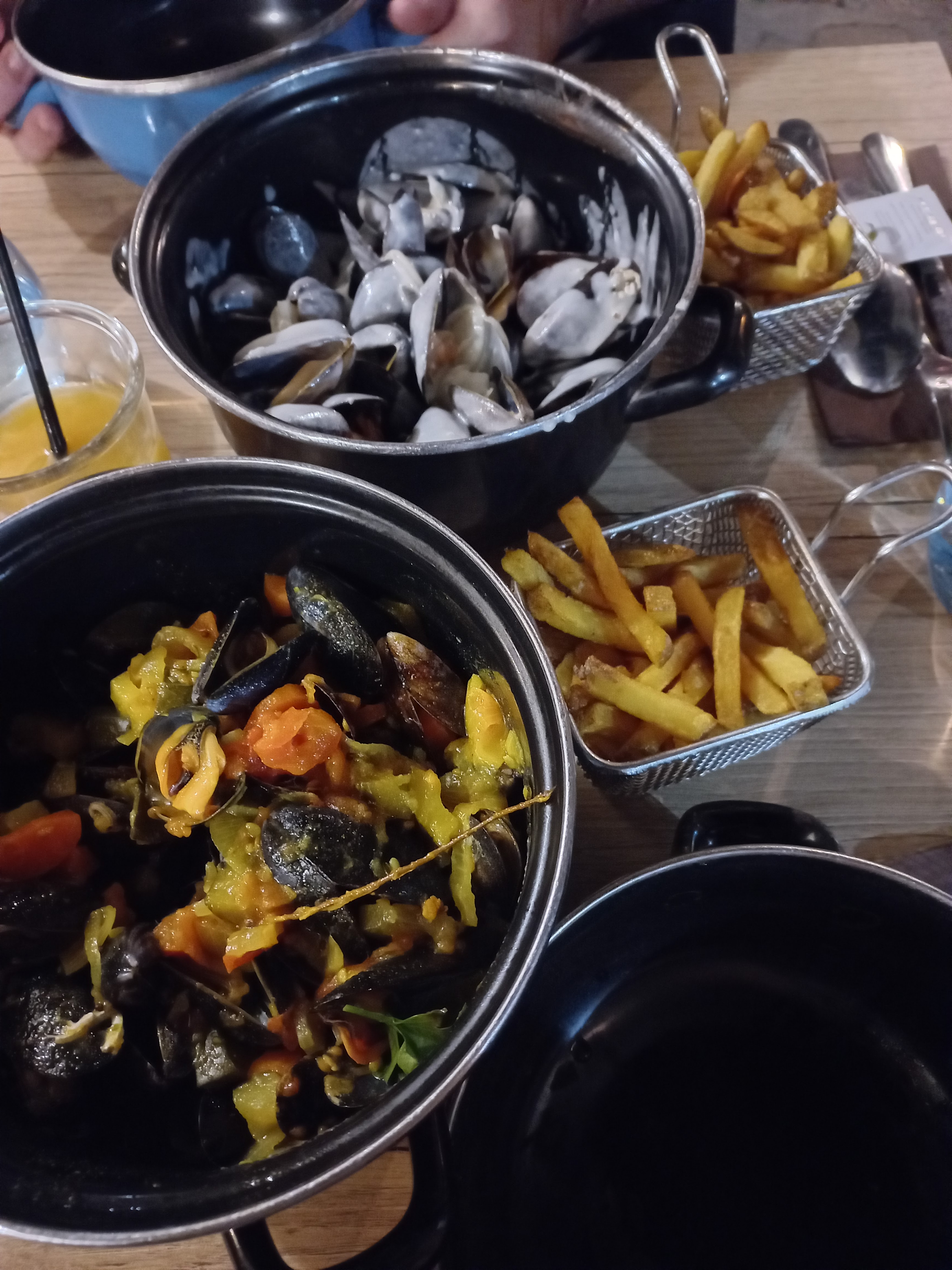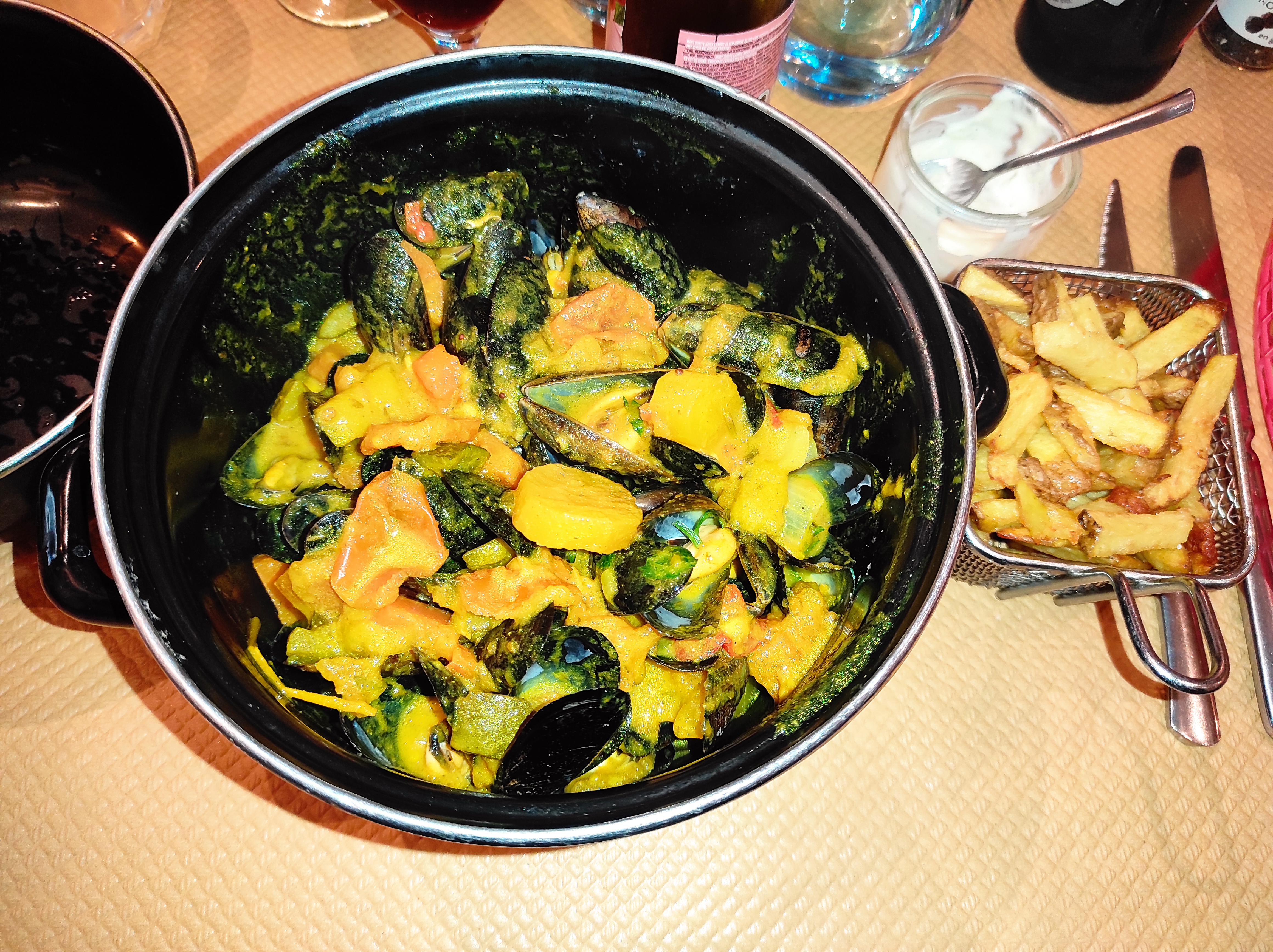 Moule au curyy excellente, bien crémeuse et chargées ! des frites maisons succulentes et un amuse bouche parfait, merci !
