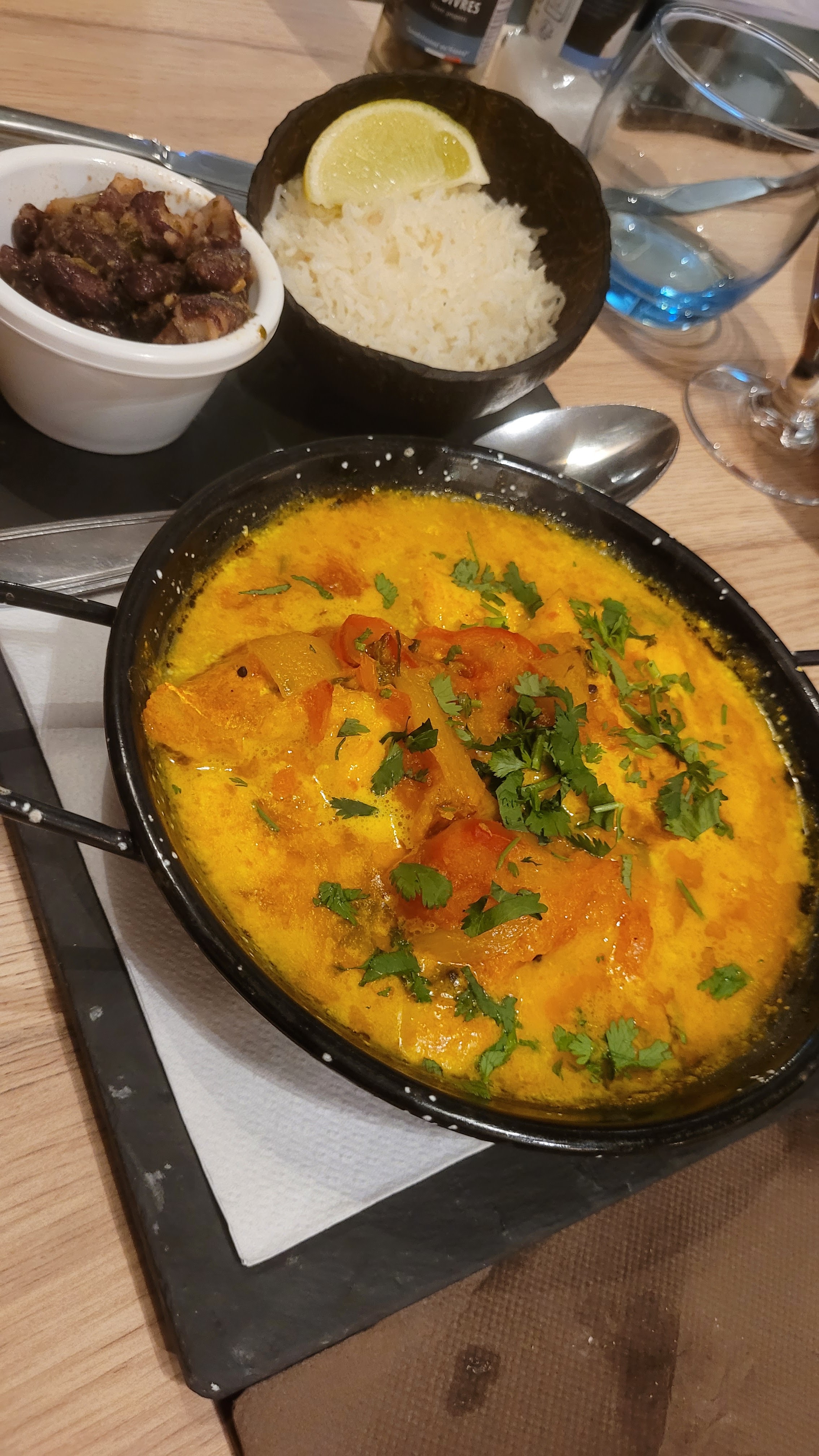 Très bonne adresse ! 😋 Cari de poulet délicieux, les accras et le dessert également. Service agréable et rapide. Menu entrée/plat/dessert moins de 30€.