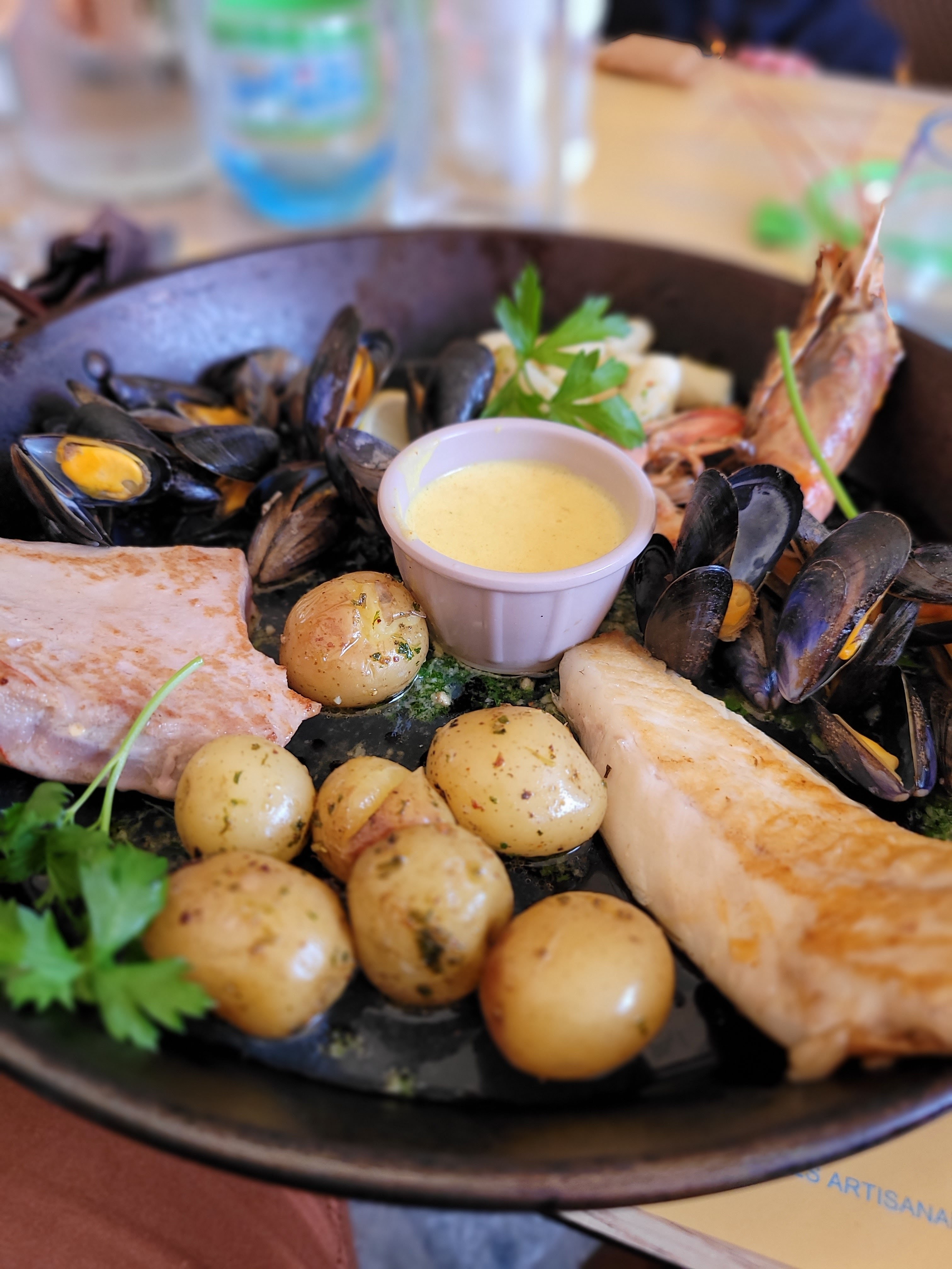 Choisi un peu à la va-vite ce restaurant est très bien décoré et très bien situé. Accueil mitigé des serveurs (agacé). Alors que la patronne a l’air ultra accueillante. Repas correct (Burger au bœuf) Menu enfant pas très rechercher, pas simple pour que les enfants mangent, j’en conviens. Je pense que le poisson est leur spécialité et que sur cette partie, je ne peux pas juger de la qualité, je pense qu’il maîtrise leur sujet sans y avoir pour autant goûter.