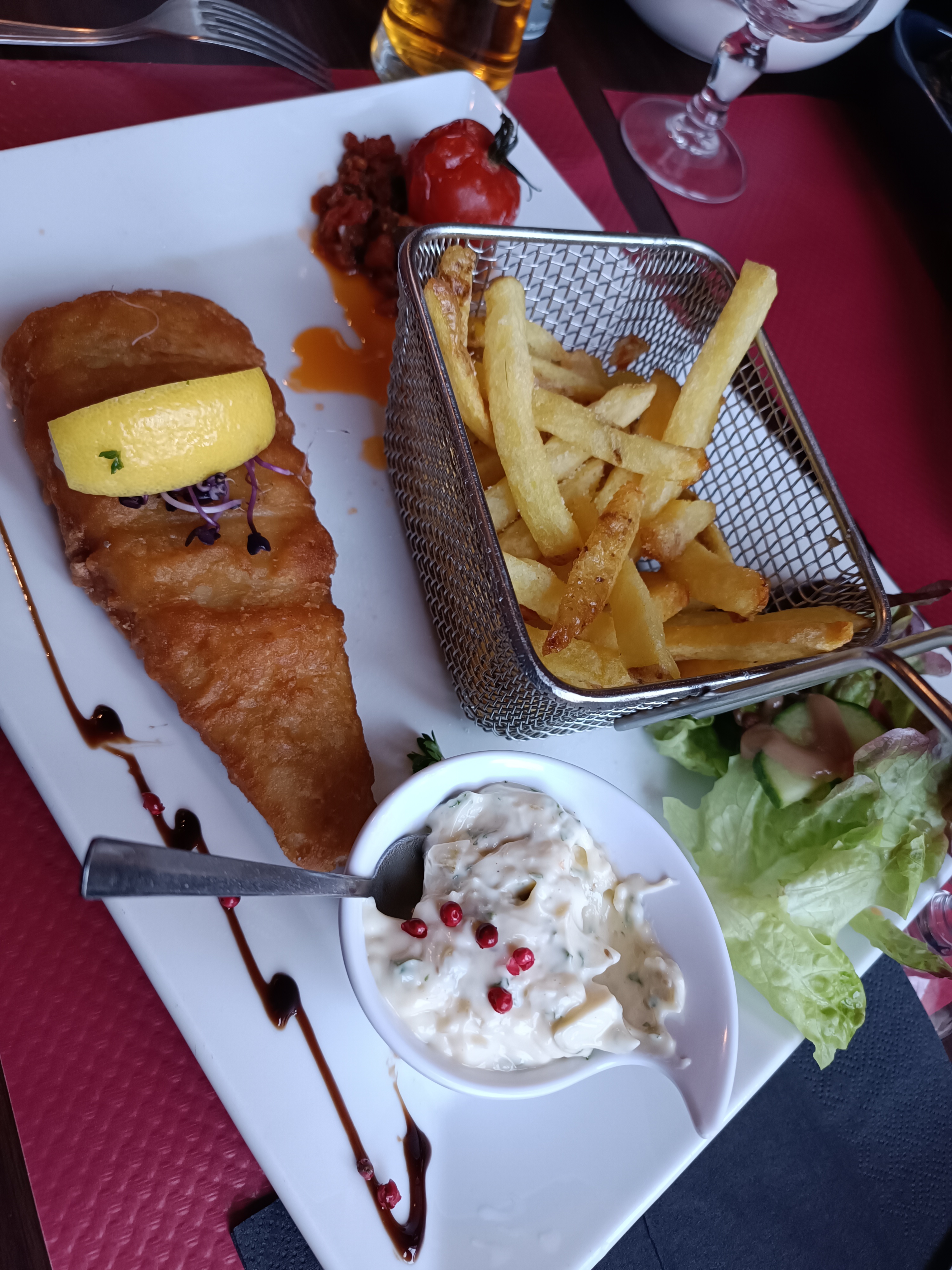 Très bon accueil, sympathique. Belles et bonnes assiettes, une sauce tartare, acras de morue....maison. Expérience en famille à 6. Puis en duo 7 jours plus tard. On y retournera.