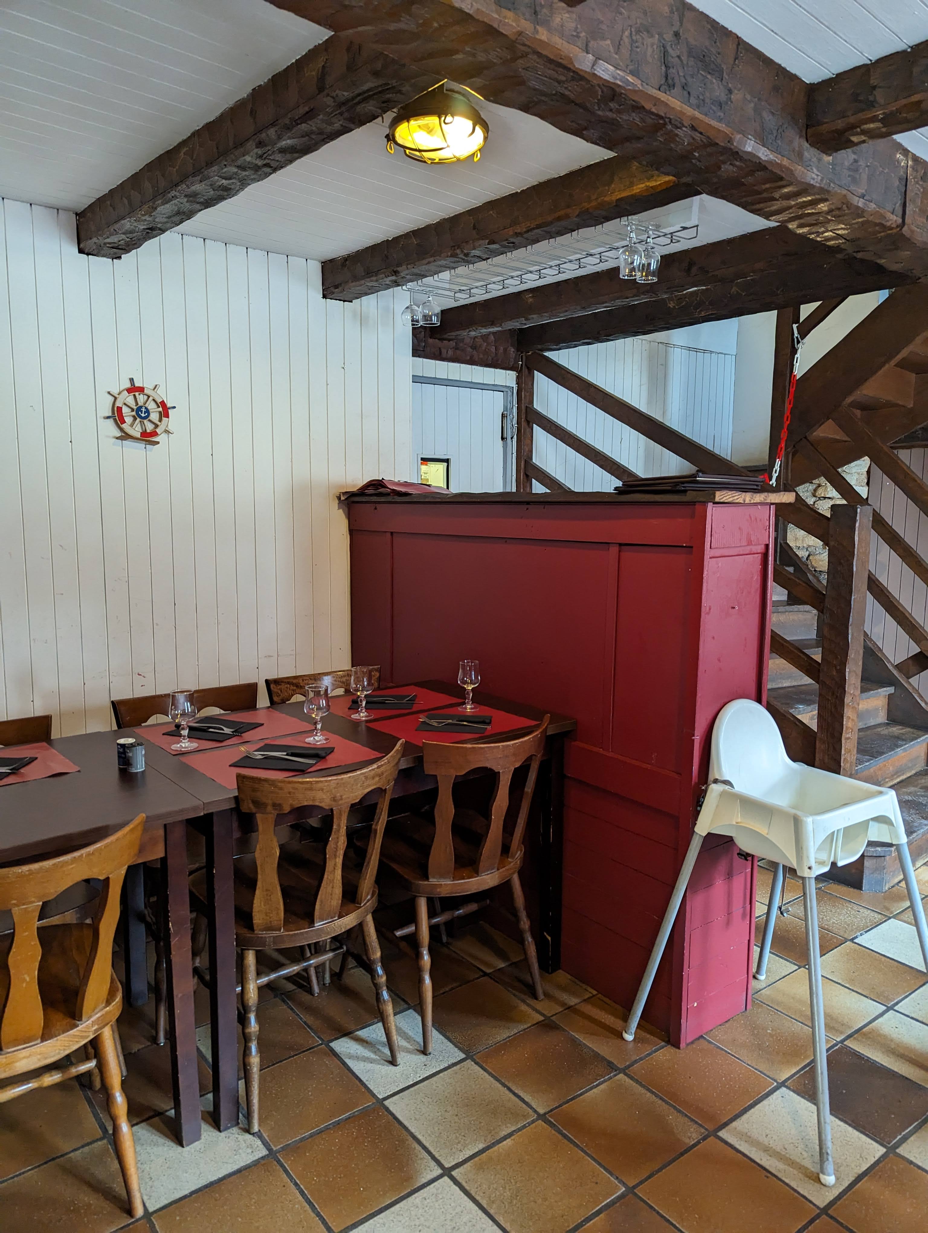 Accueil chaleureux et convivial. Personnel aimable et joviale. Les chiens sont admis et on même une gamelle d'eau à disposition. On y mange très bien. Les produits de la mer sont frais. Espace calme et décalé de la rue principale. Pratique avec les chiens. Une petite salle au rez-de-chaussée et la terrasse dans la rue. On recommande sans hésiter. Merci beaucoup.