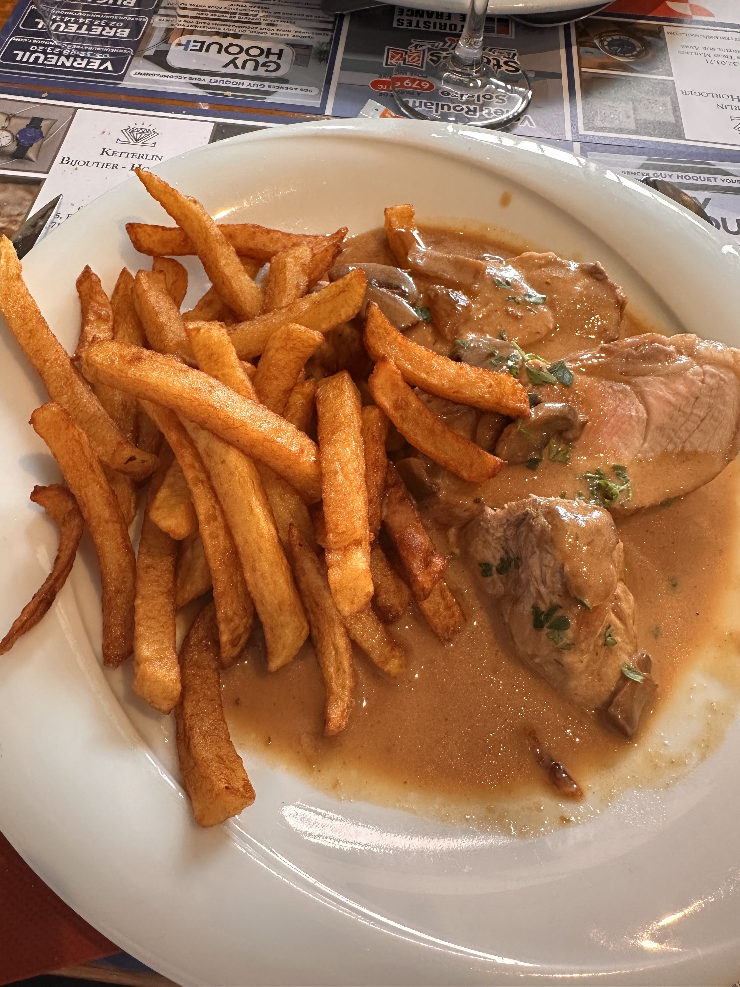 Pti resto vraiment sympa familial d habitués ...plats du jour variés à la carte... frites maison à souligner...et sauce échalotes avec des vraies échalotes...service rapide efficace et attentionné... Prix raisonnable... plusieurs formules au choix... Je dirai allez y les yeux fermés