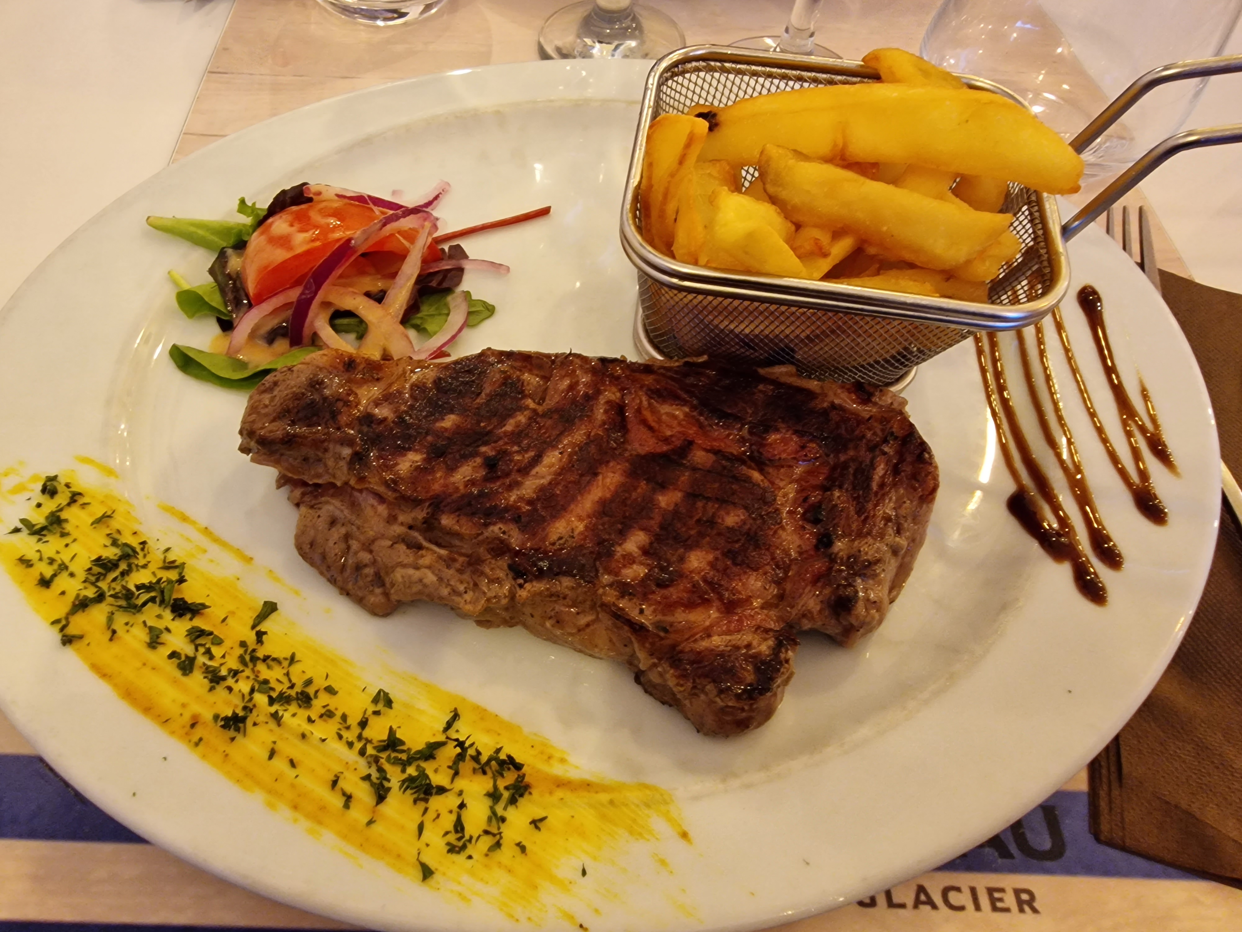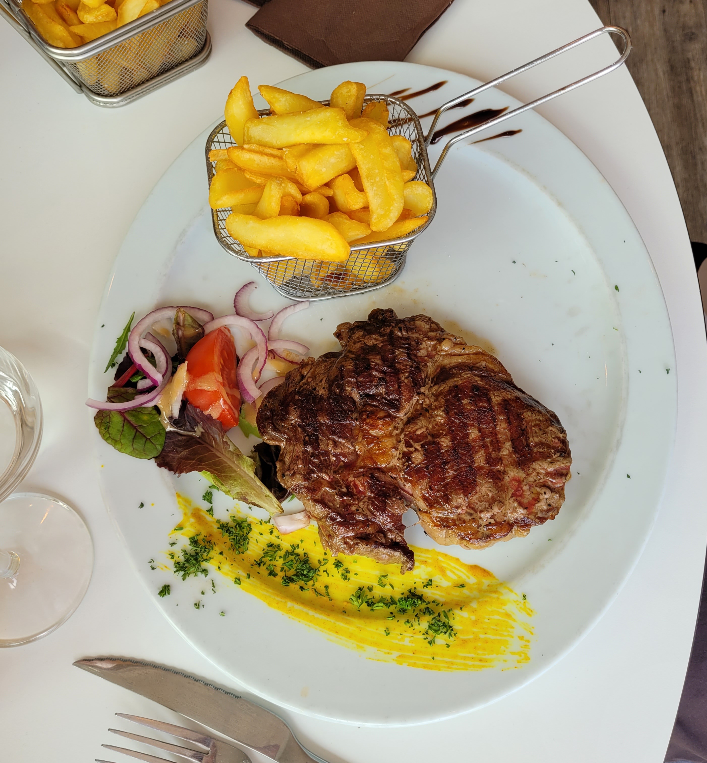 Nous sortons de ce restaurant où nous avons commande une entrecôte maturee de 300 grammes comme la présente la grande pancarte sur la deventure du restaurant Le plat servi correspond à la taille d un tournedos de plus elle vient d argentine et ça c est pas placardé sur la deventure !et quand on ose le dire au serveur il nous rétorque que c est parcequ elle est trop cuite !!! Nous sommes habitués des restaurants et amateurs de bonne viande pour cette raison nous avons payé l addition et laisse le plat sur la table A tous les amateurs de bonne viande comme nous fuyez cet endroit