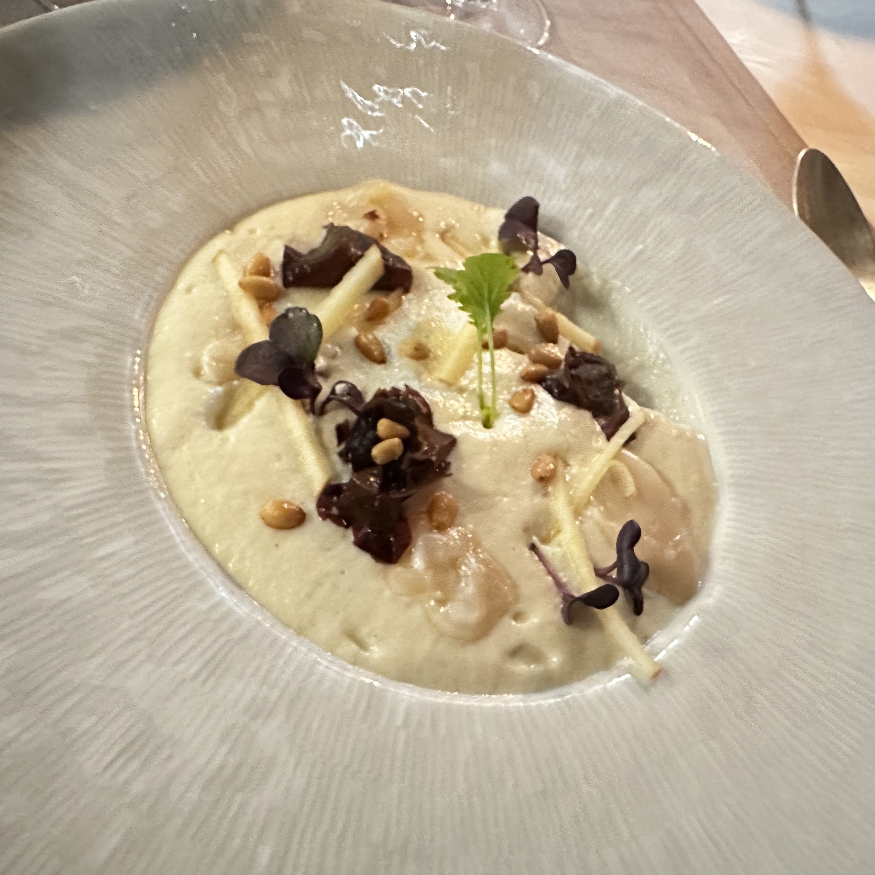 Quelle belle découverte. Tout etait bon et beau. Nous sommes rentrés enchantés de notre repas : très bonne qualité des produits, très bien cuisinės, très belle présentation. Le cadre est beau, le personnel accueillant. Merci au chef pour ces surprises culinaires, pour sa créativité. Maria
