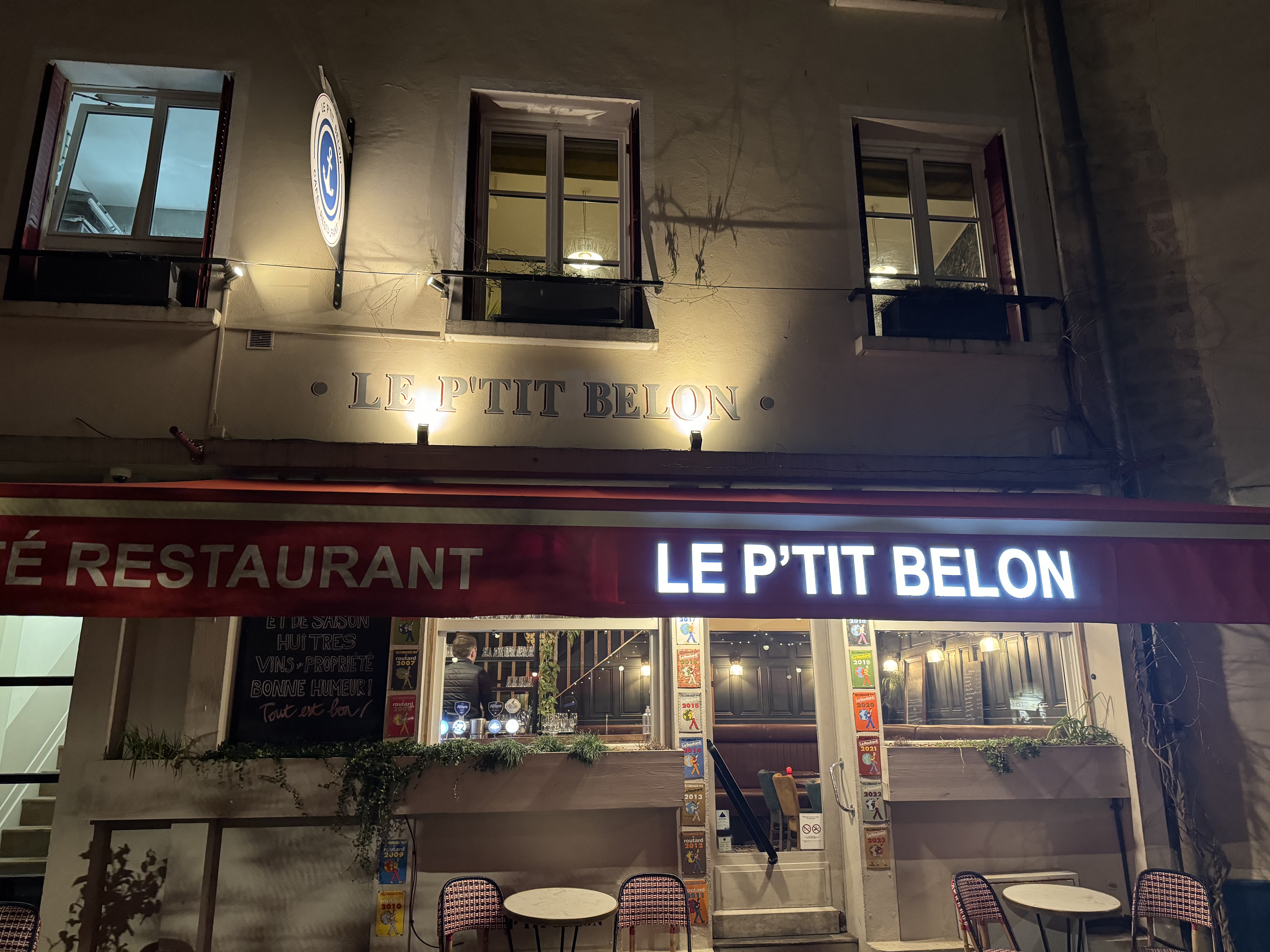 Superbe endroit j’adore vraiment typique de cette belle région le service super agréable et souriant ! La décoration vraiment super jolie avec juste en face le Hallé aux poissons pour le marché avec des produits de qualité !! Et le prix vraiment top N’hésitez surtout pas c’est vraiment top !! Je suis vraiment content de cette endroit 😀 Le p’tit belon porte vraiment bien le nom !!!!! 😀