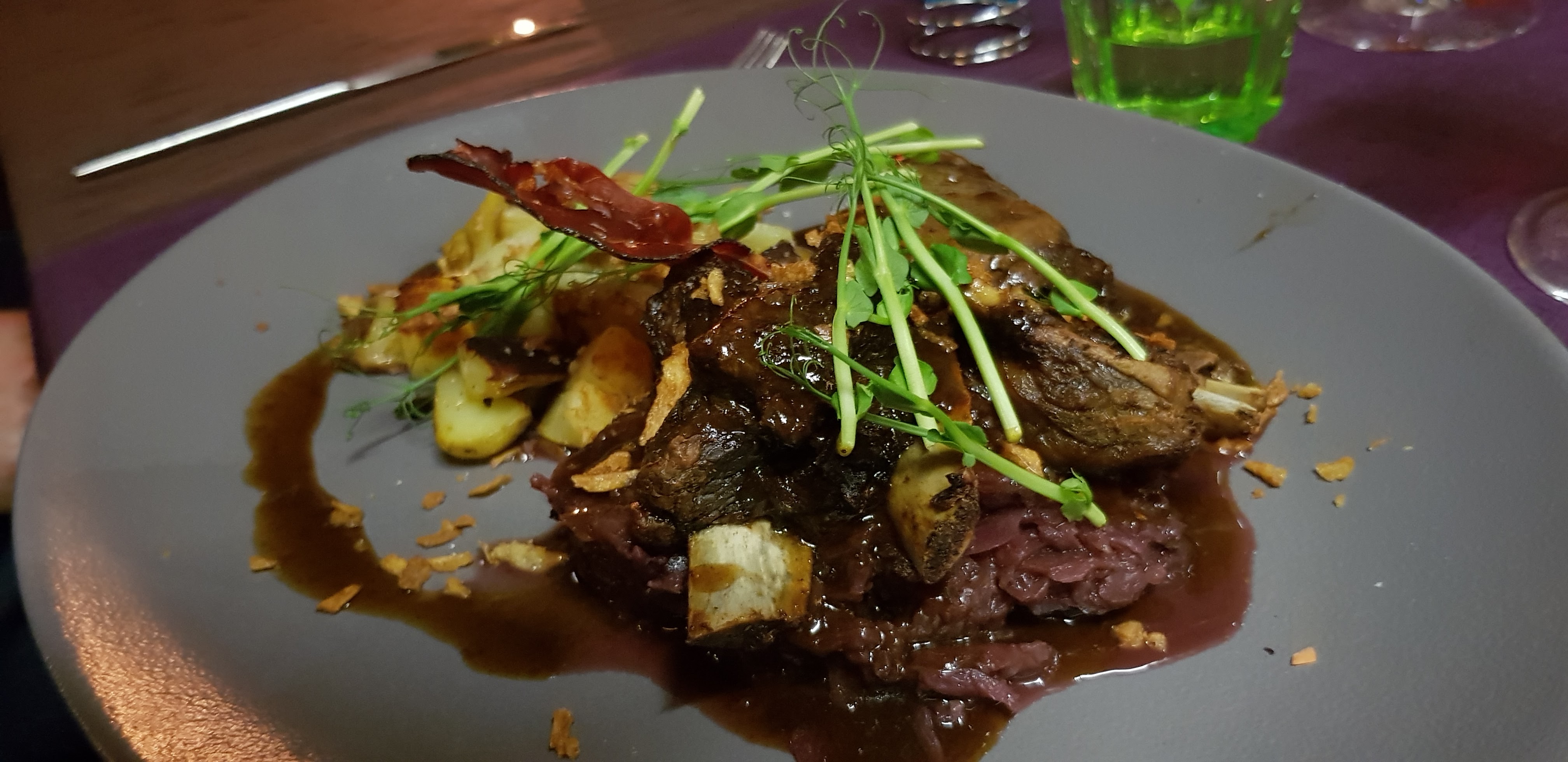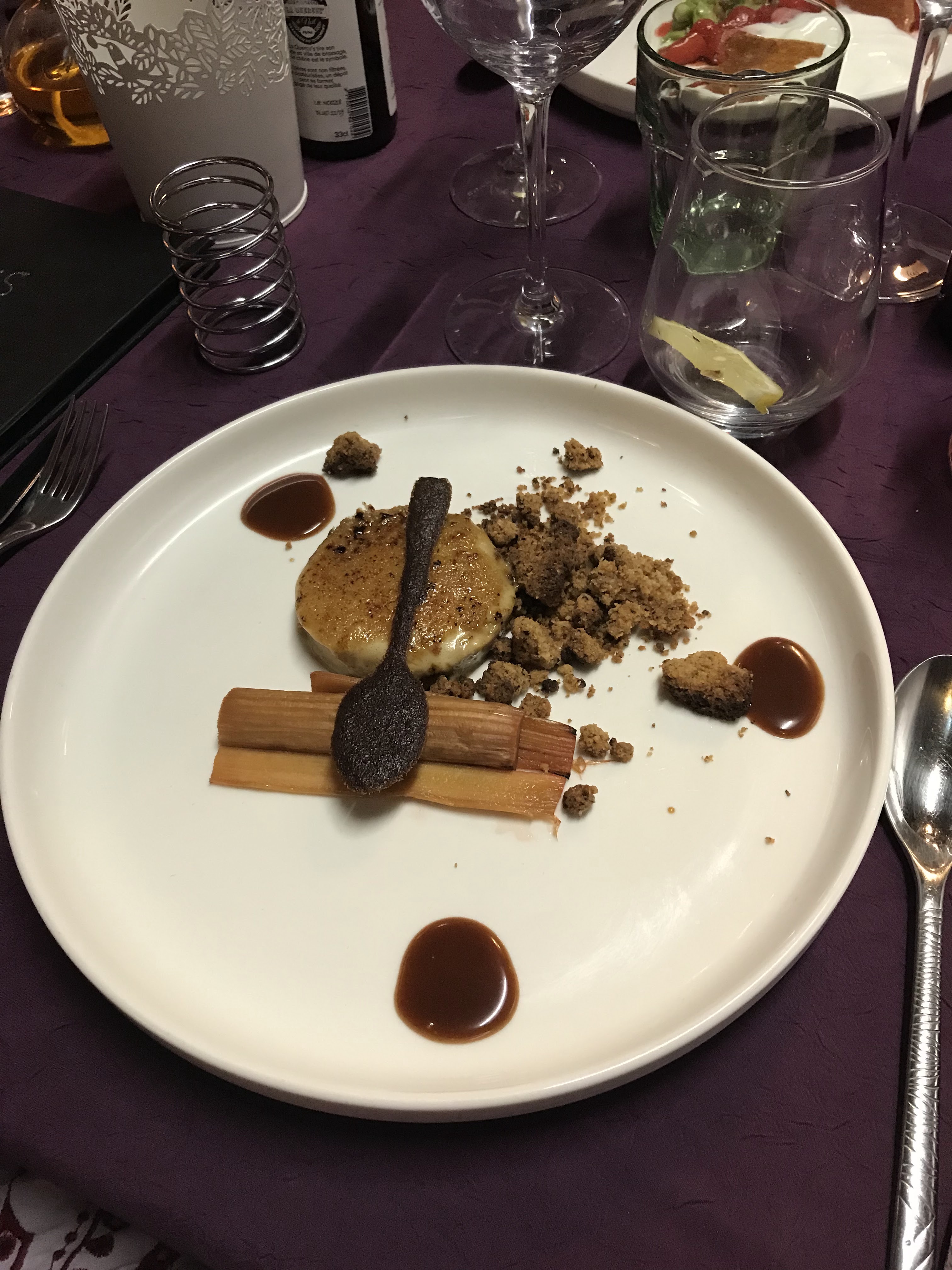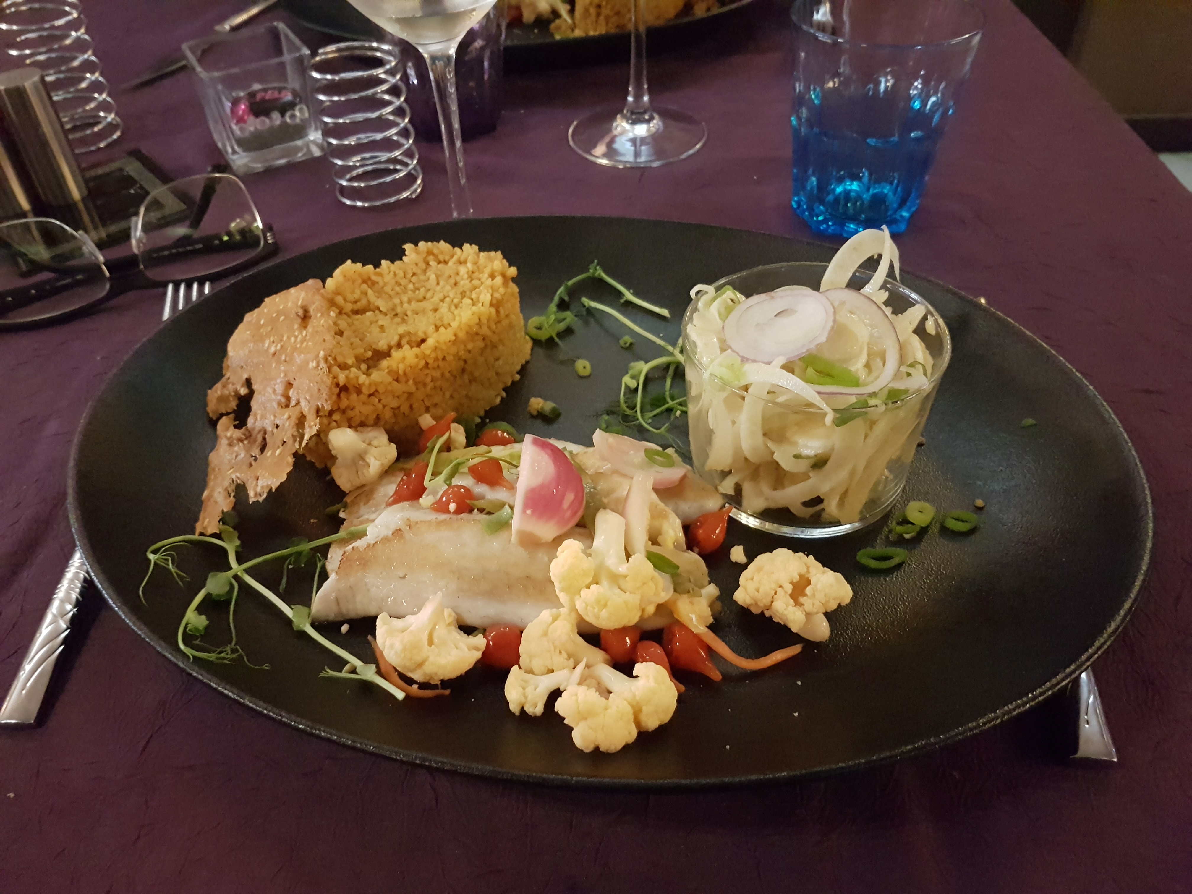 Superbe soirée, le dîner été divinement bon, en plus à la vitesse de l'éclair. Après un rapide apéritif, nous sommes passés au plat pour moi un Charolais saignant et fondant et Madame un cabillaud en croûte sublime. Le dessert surprenant de goût et saveur, Madame une papillote d'abricot aux herbes et pignons de pin, palet de spéculoos et sorbet abricot, pour moi un bâton glacé citron vert, carpaccio de melon effluve menthe. Franchement rien à y redire 10 sur 10.