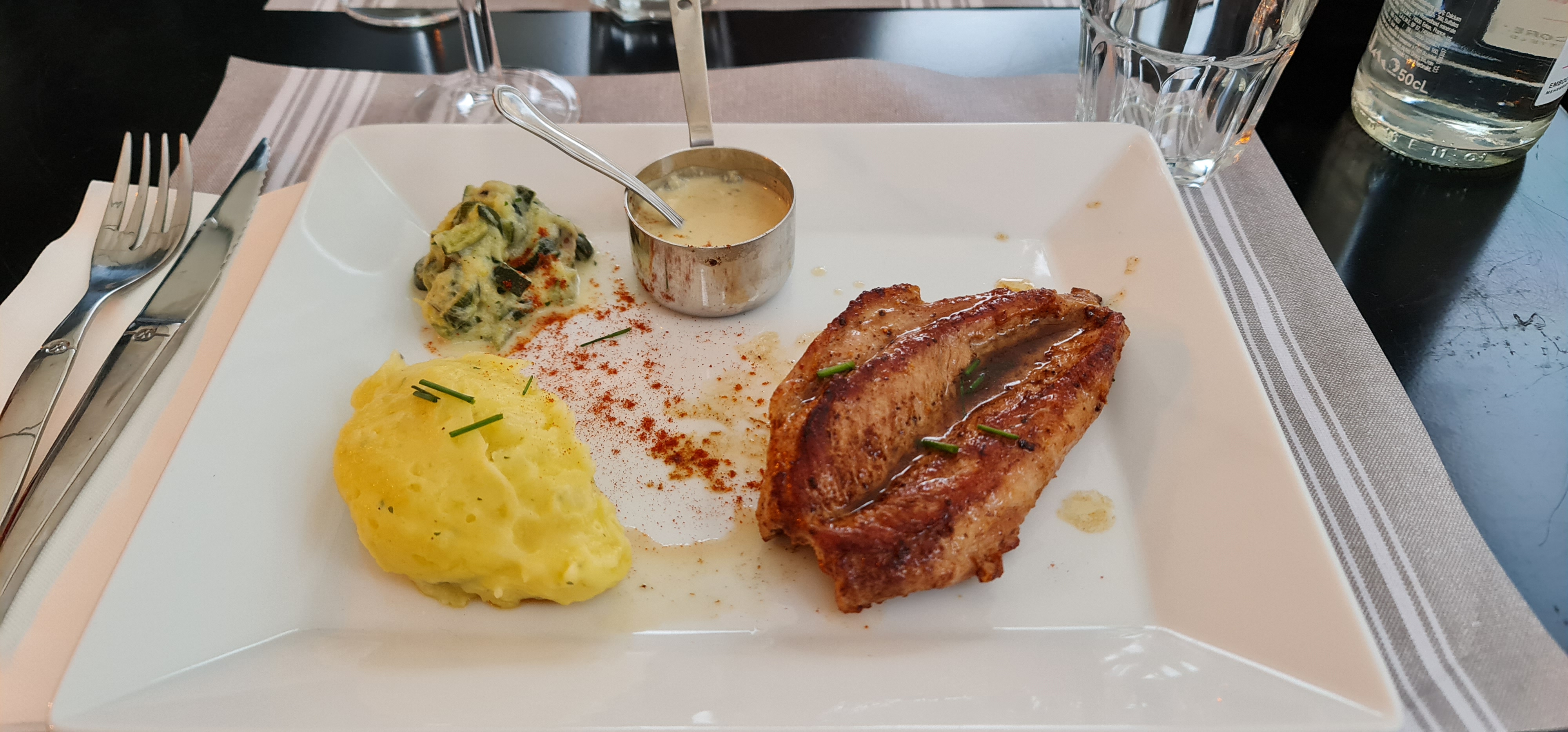 Accueil plutôt sympathique. Quasi de veau cuit à la perfection, juste rosé comme je l'aime. Rapport qualité/prix intéressant. Si comme moi vous passez par là par hasard, n'hésitez pas, arrêtez vous, vous ne devriez pas le regretter. Désolé, pas de photos, j'étais trop concentré sur ce que l'on me servait. Juste un petit bémol. Le dessert au chocolat manquait de Pep's.