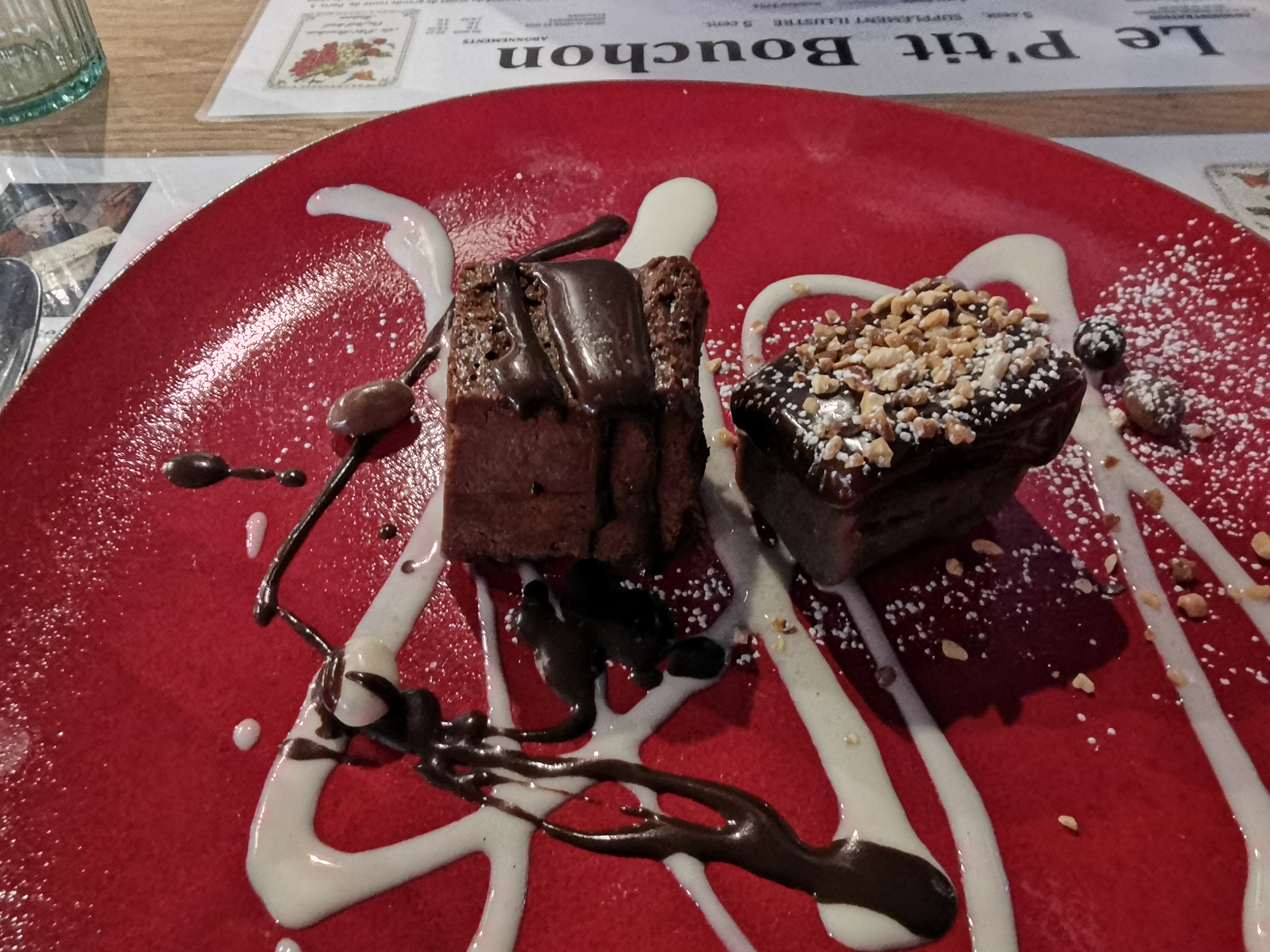 Il y a longtemps que je voulais tester ce resto, il y a toujours du monde, bon accueil, des formules simple à prix abordable chacun y trouve son compte, en guise de bien venu, un guacamol revisité, avec de la crème fraîche, c est un délice, même ma fille qui n aime pas l avocat, à aime, c est dire, que ce soit le feuilleté de crevettes saumon, le tartare petite Pdt grenailles fondante s servis dans un petit plats, tout est excellents, bien proportionnés, la sauce, moi qui suis pas sauce du tout, j ai étais séduite, saumur excellent, moelleux au chocolat, et crème anglaise et chantilly bien pas trop sucre, hâte de faire goûter à mes amis, Y a pleins de choses à goûter, merci à la Chef de, pour cet instant de bonheur gastronomique, , j ai mangé dans des resto étoile, leur étoile leur à monte à la tête, j ai beaucoup mieux mange, aux petits bouchons, perso, chef de, vous mérite votre 1er étoiles