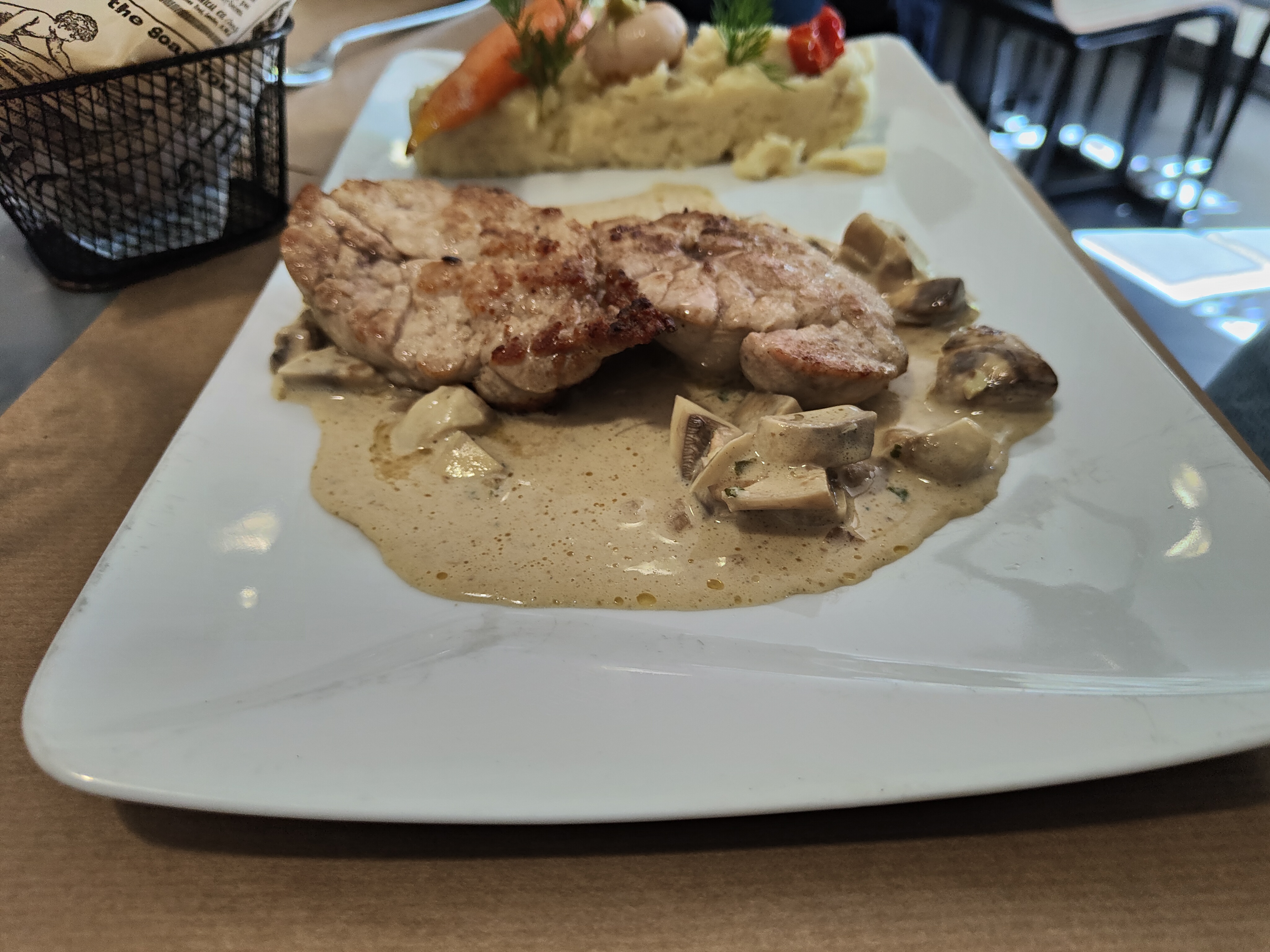 Très bon repas, néanmoins le fait de ne proposer aucun plat sans viande lui coûte une étoile. Le faible choix de dessert et d'entrée coûte également une autre étoile. Tout de meme, je souligne un service rapide et agréable, je recommande sans hésiter ce restaurant.